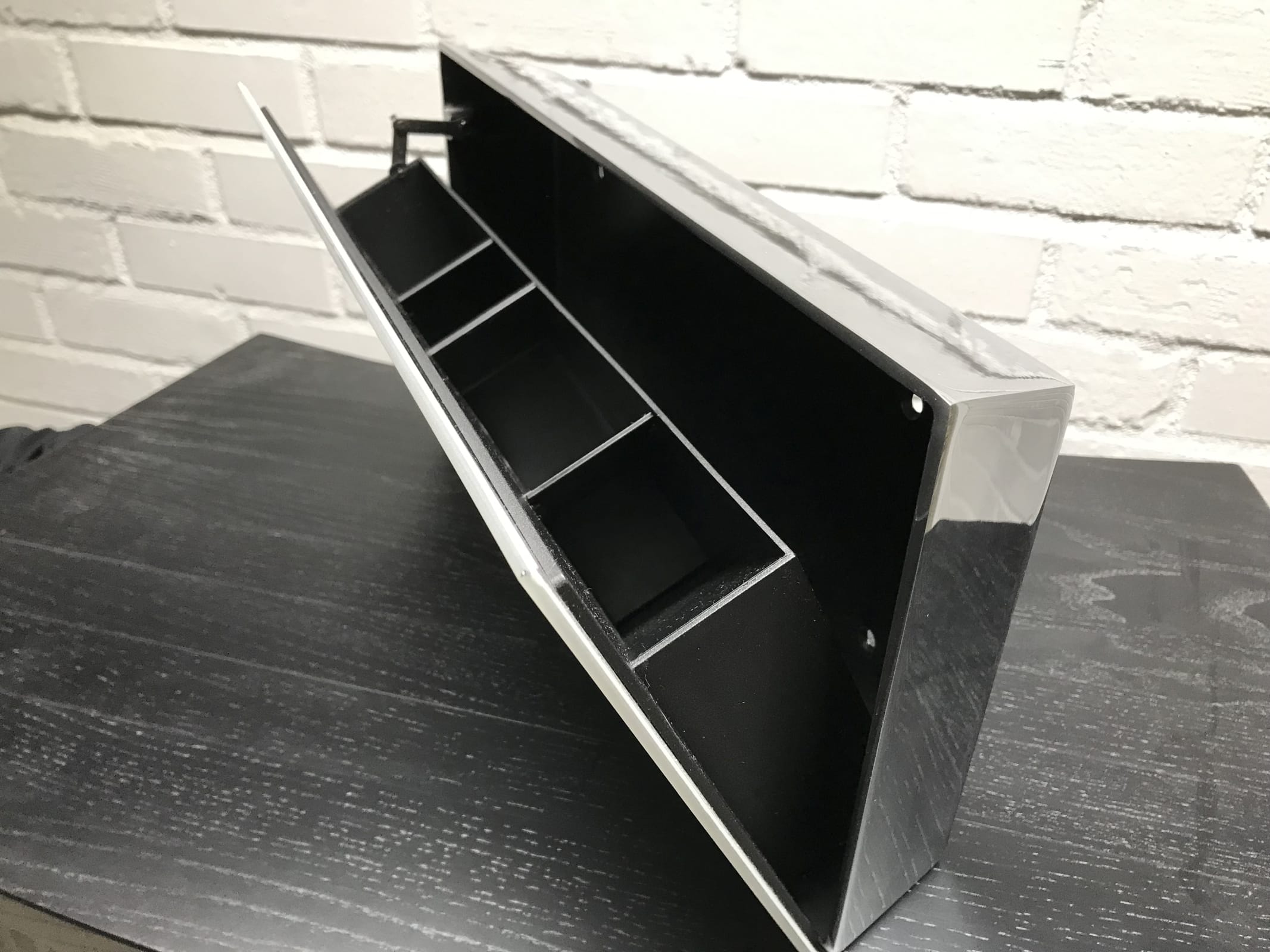 Aluminium, opalglas och svart.