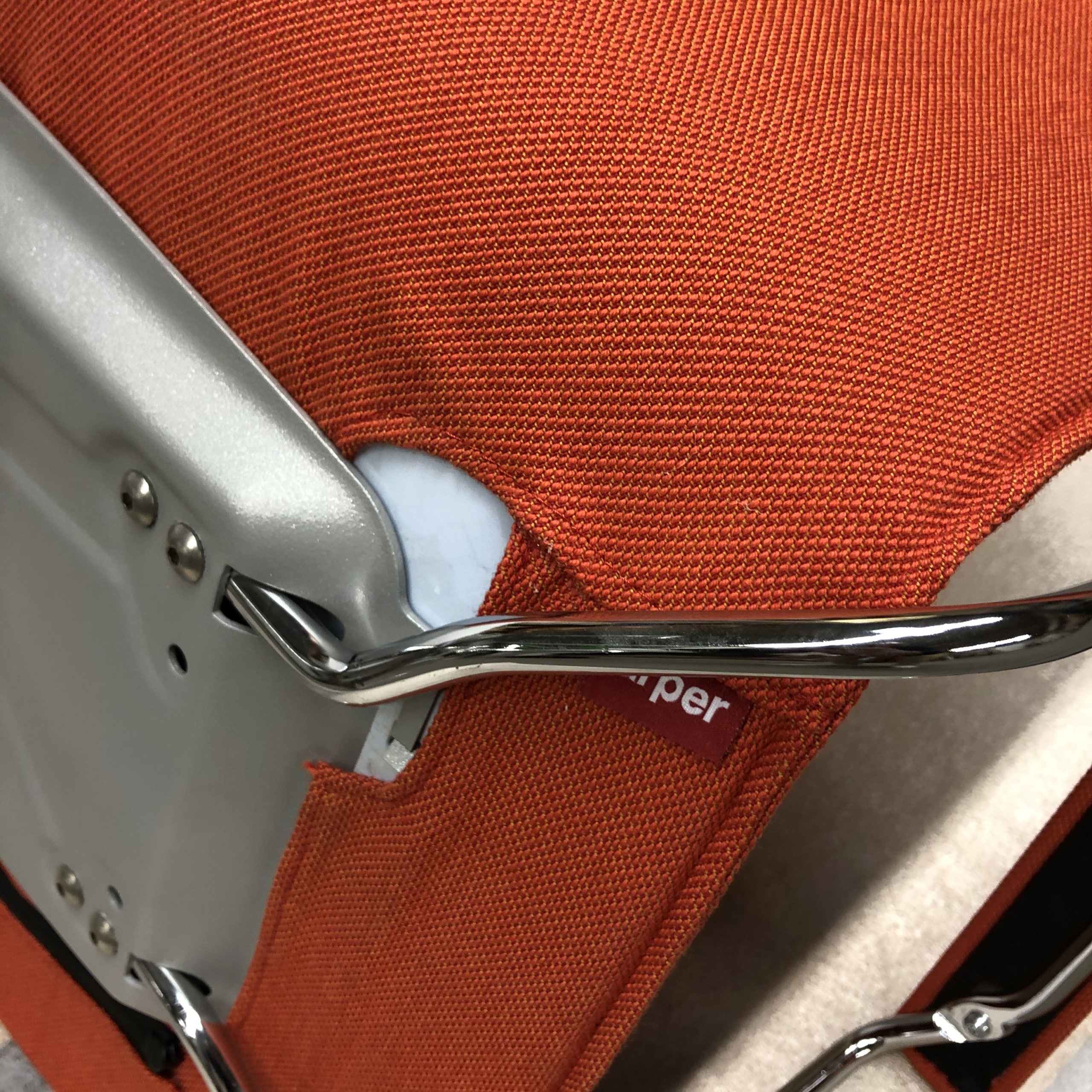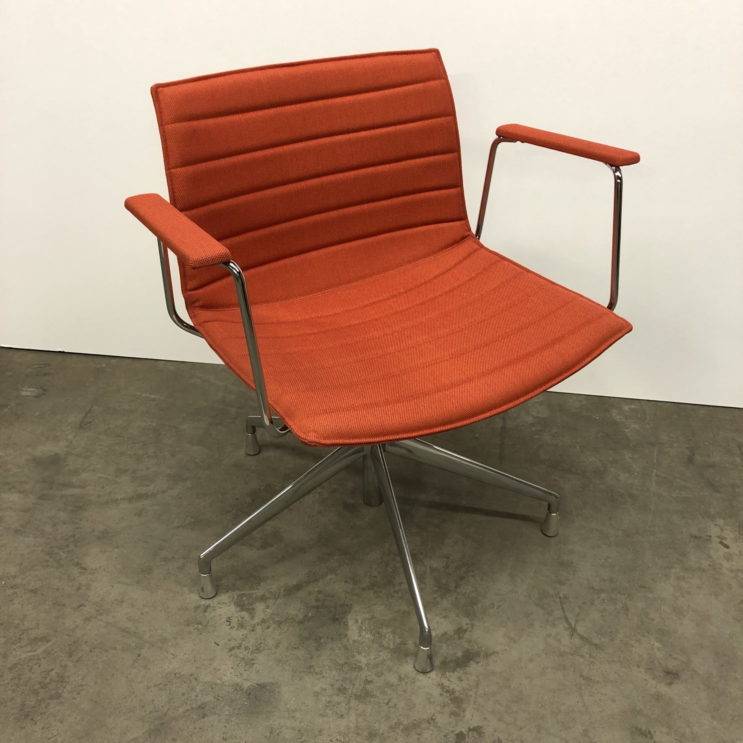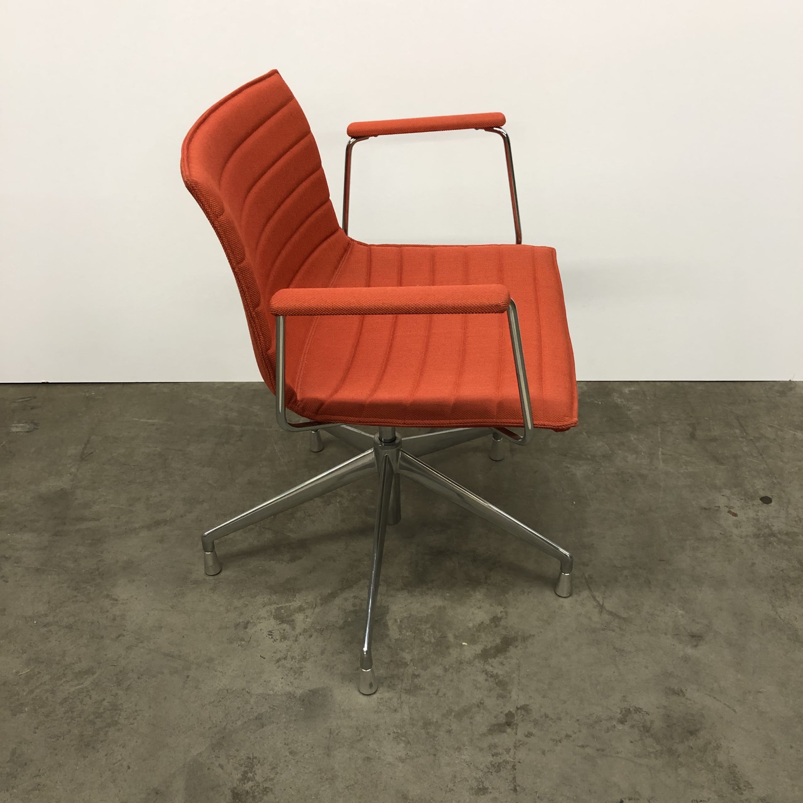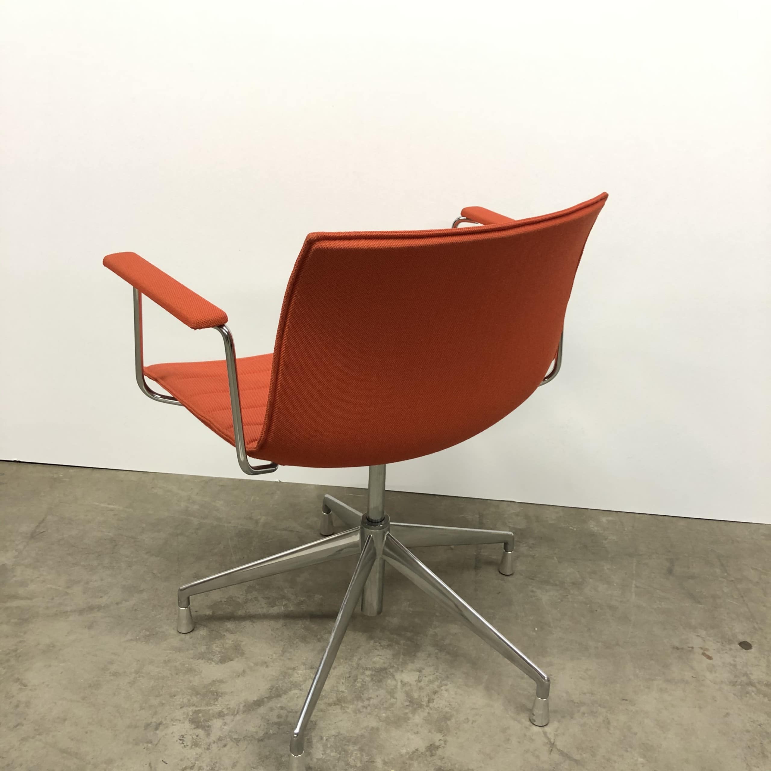 Seat and backrest in fabric (orange). Star base in metal (aluminium).