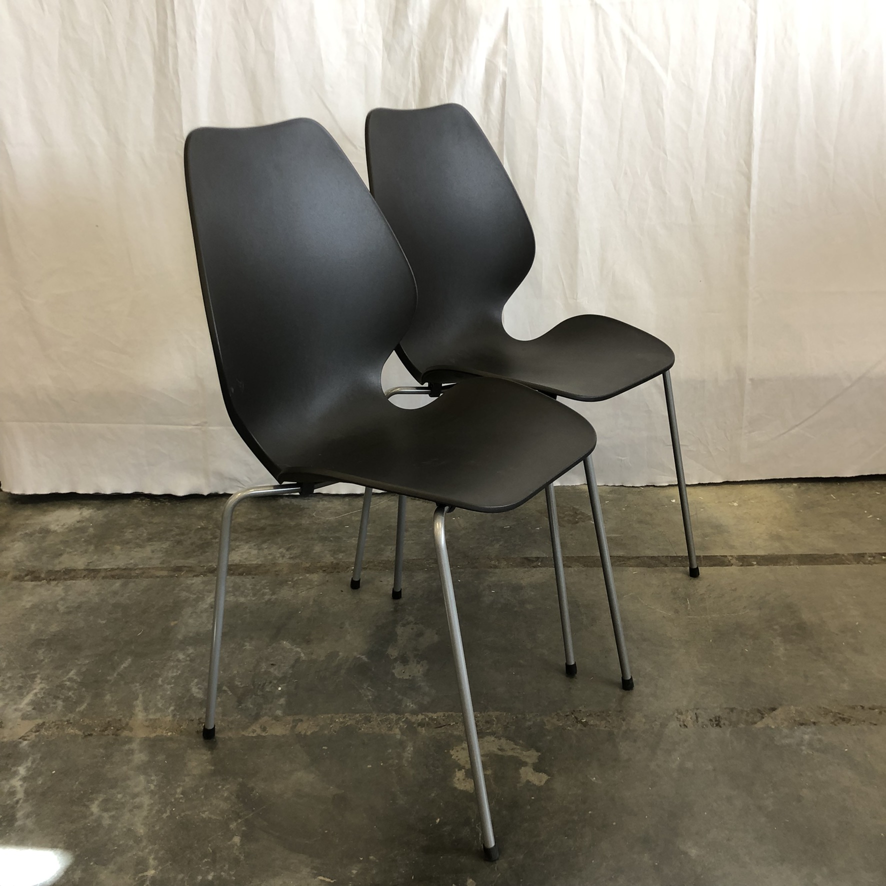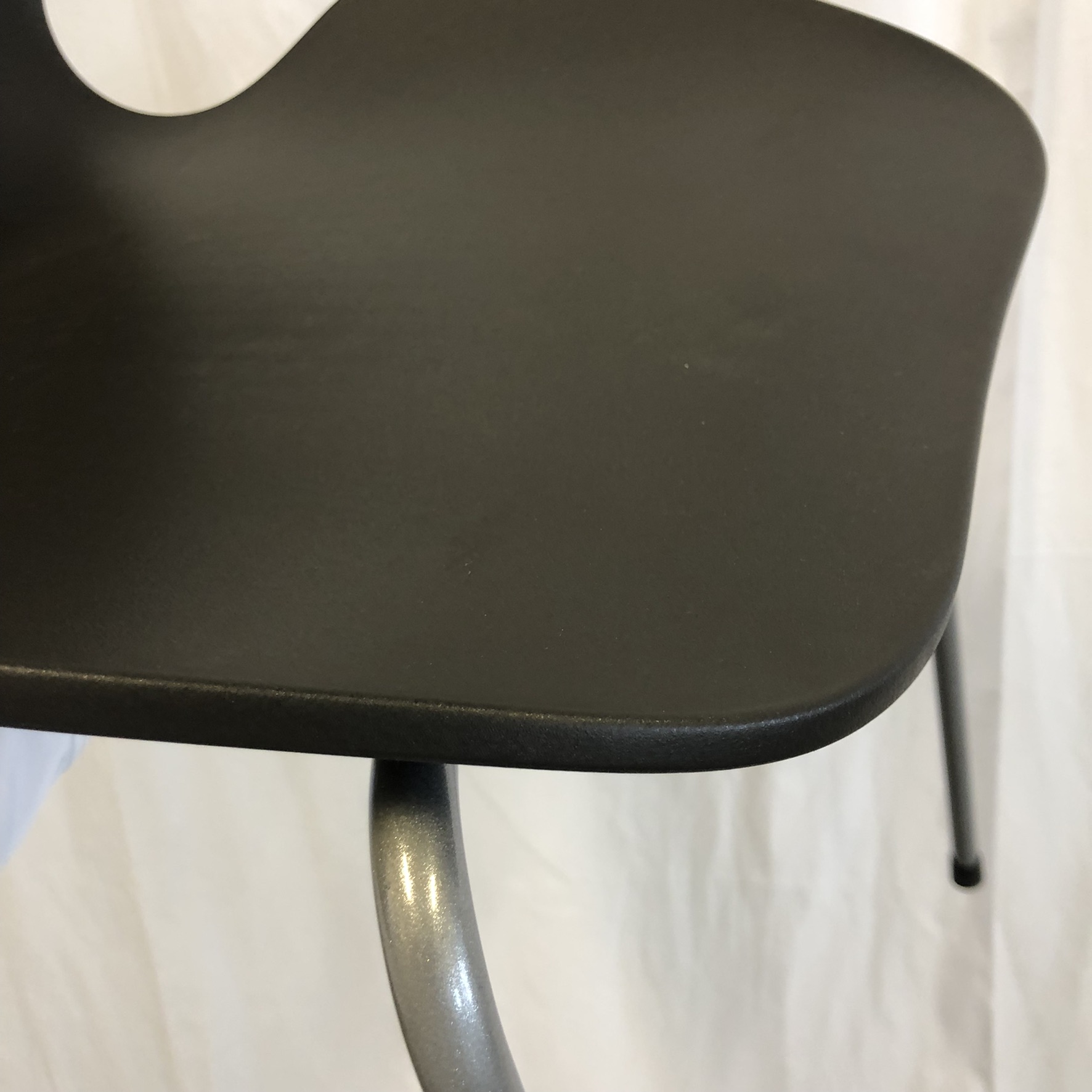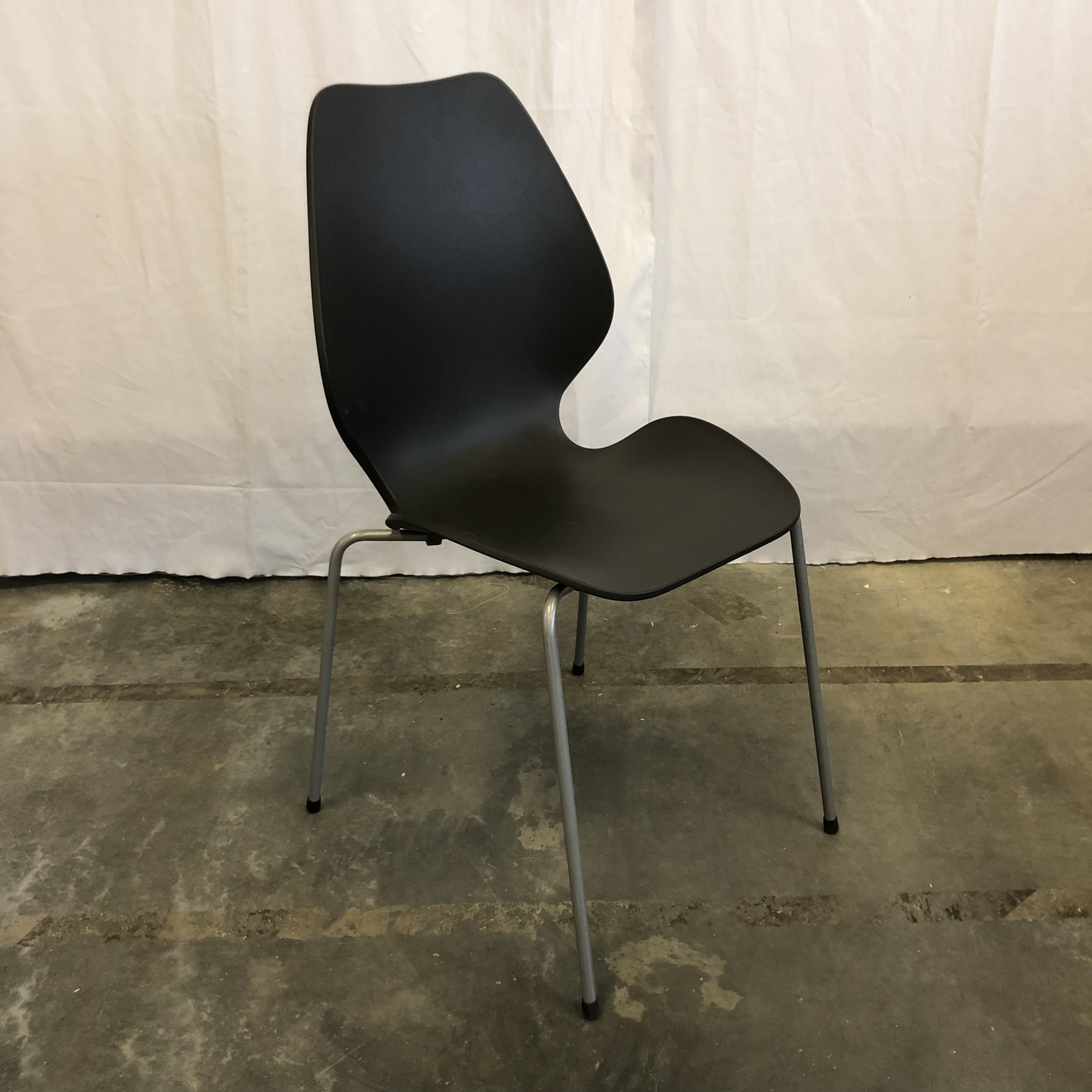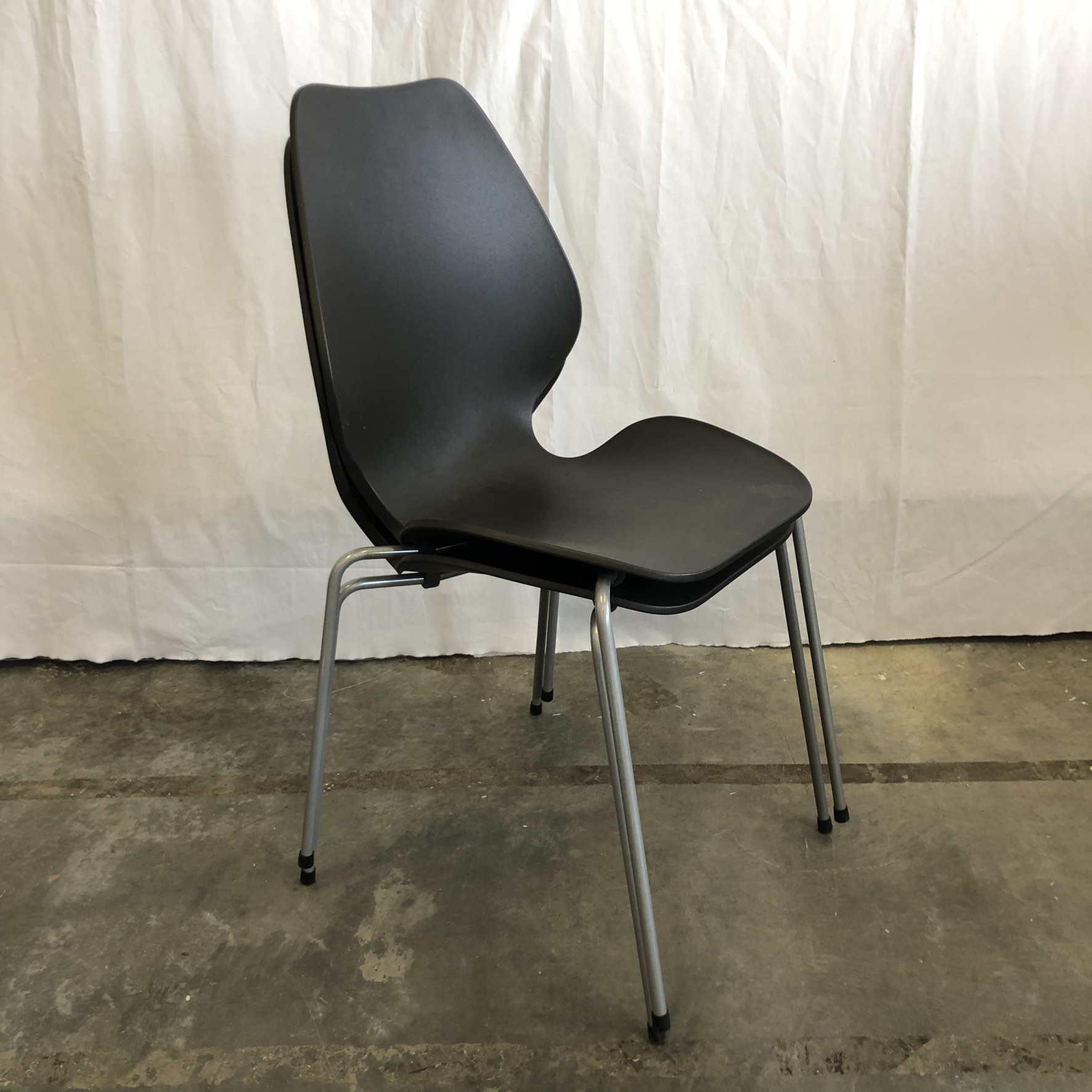 Seat and backrest in plastic (black). Legs in metal (grey).