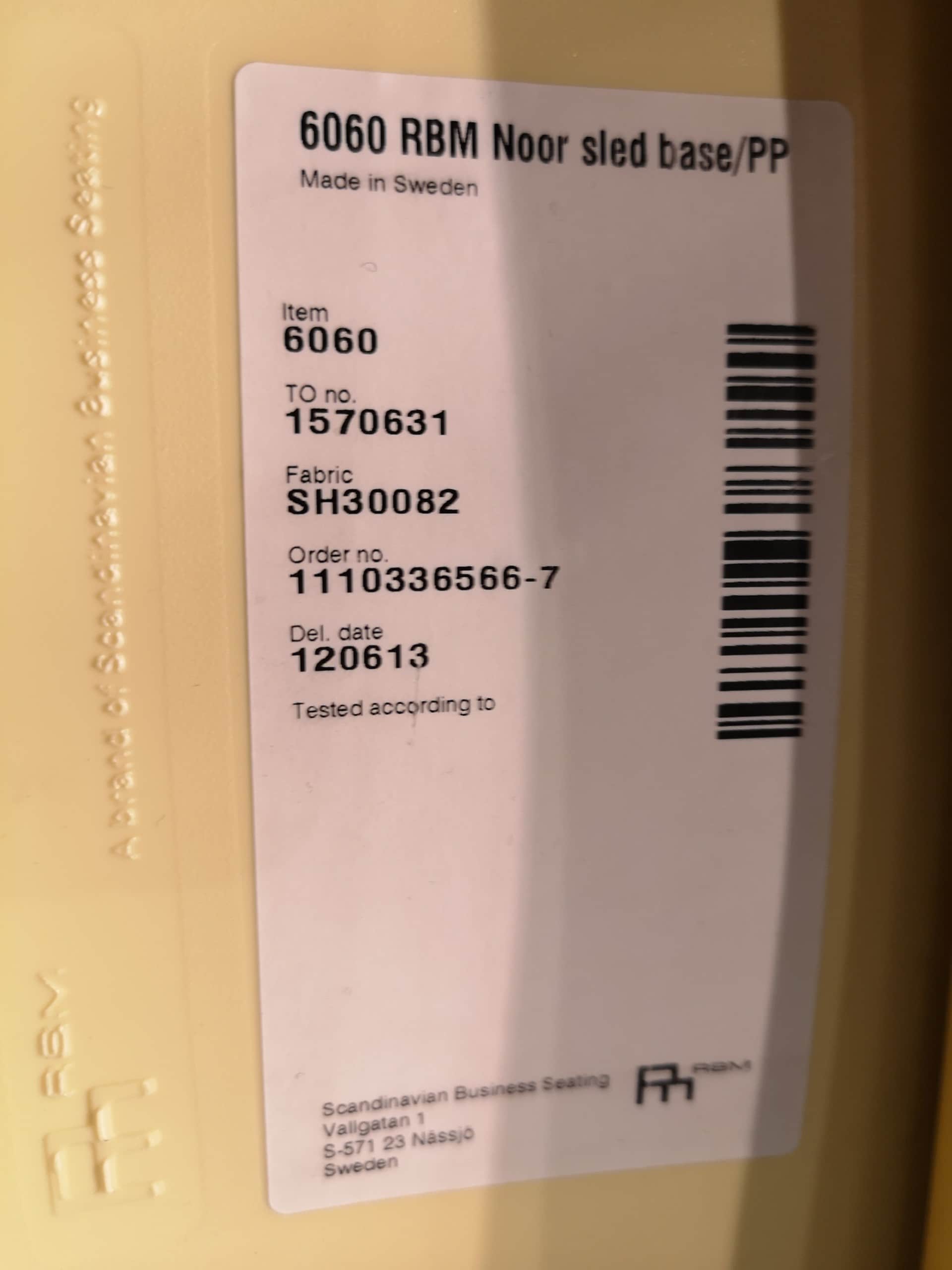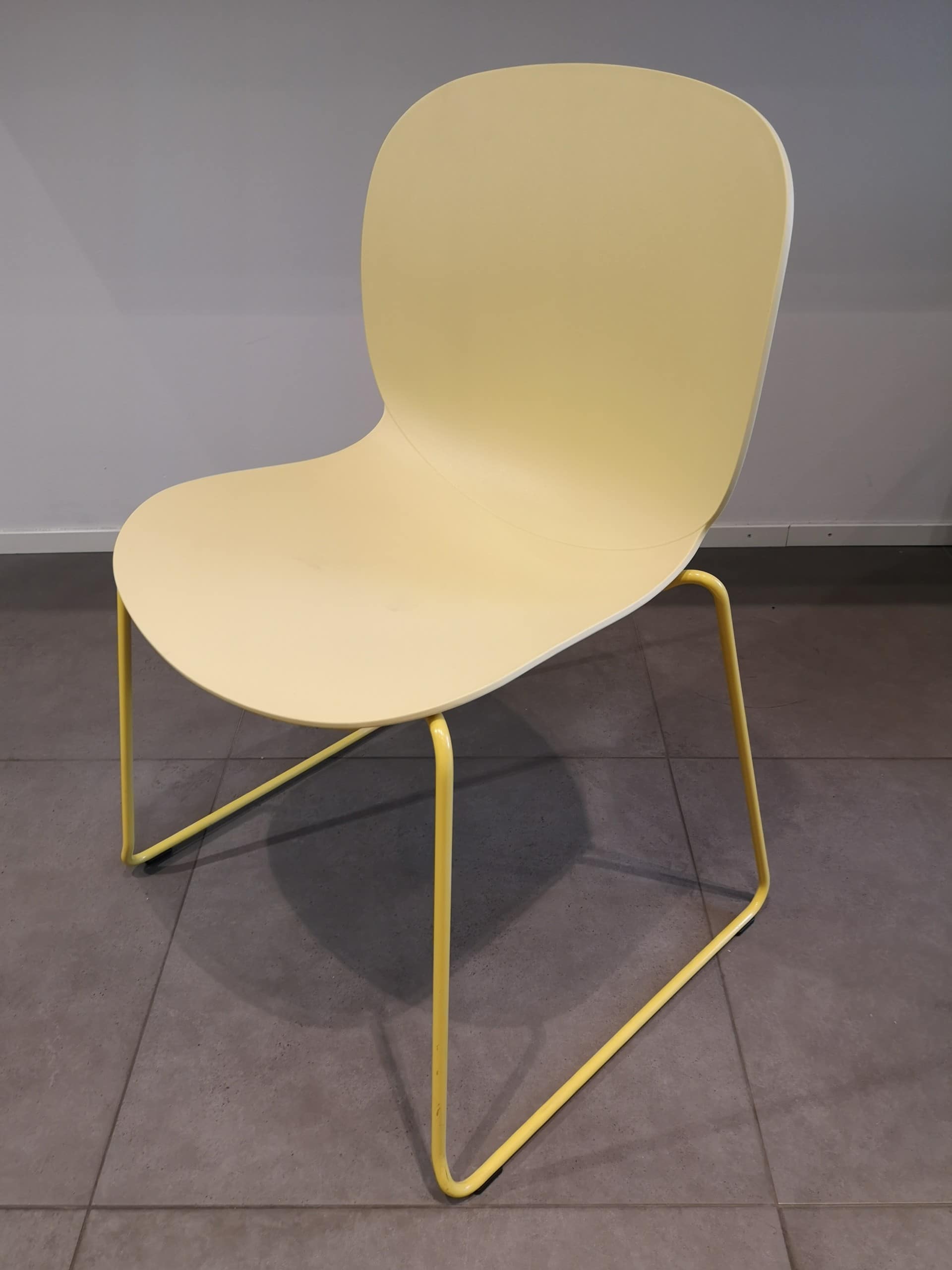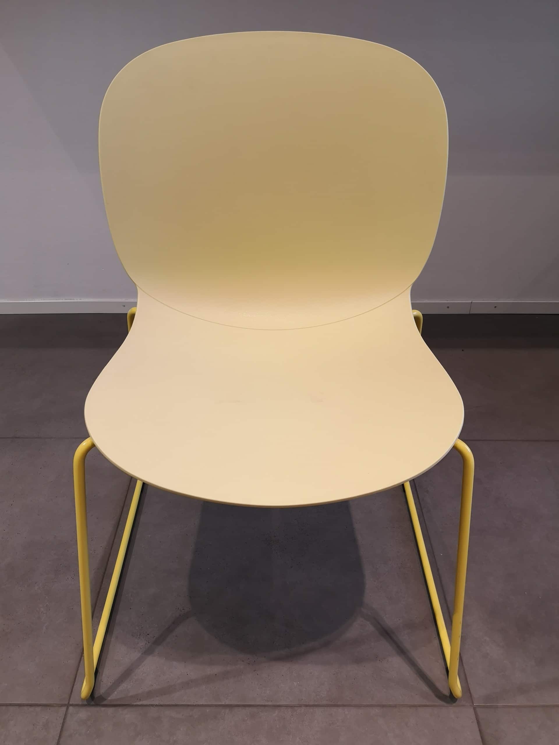 Seat and backrest in plastic (yellow). Sledgebase in metal (yellow).