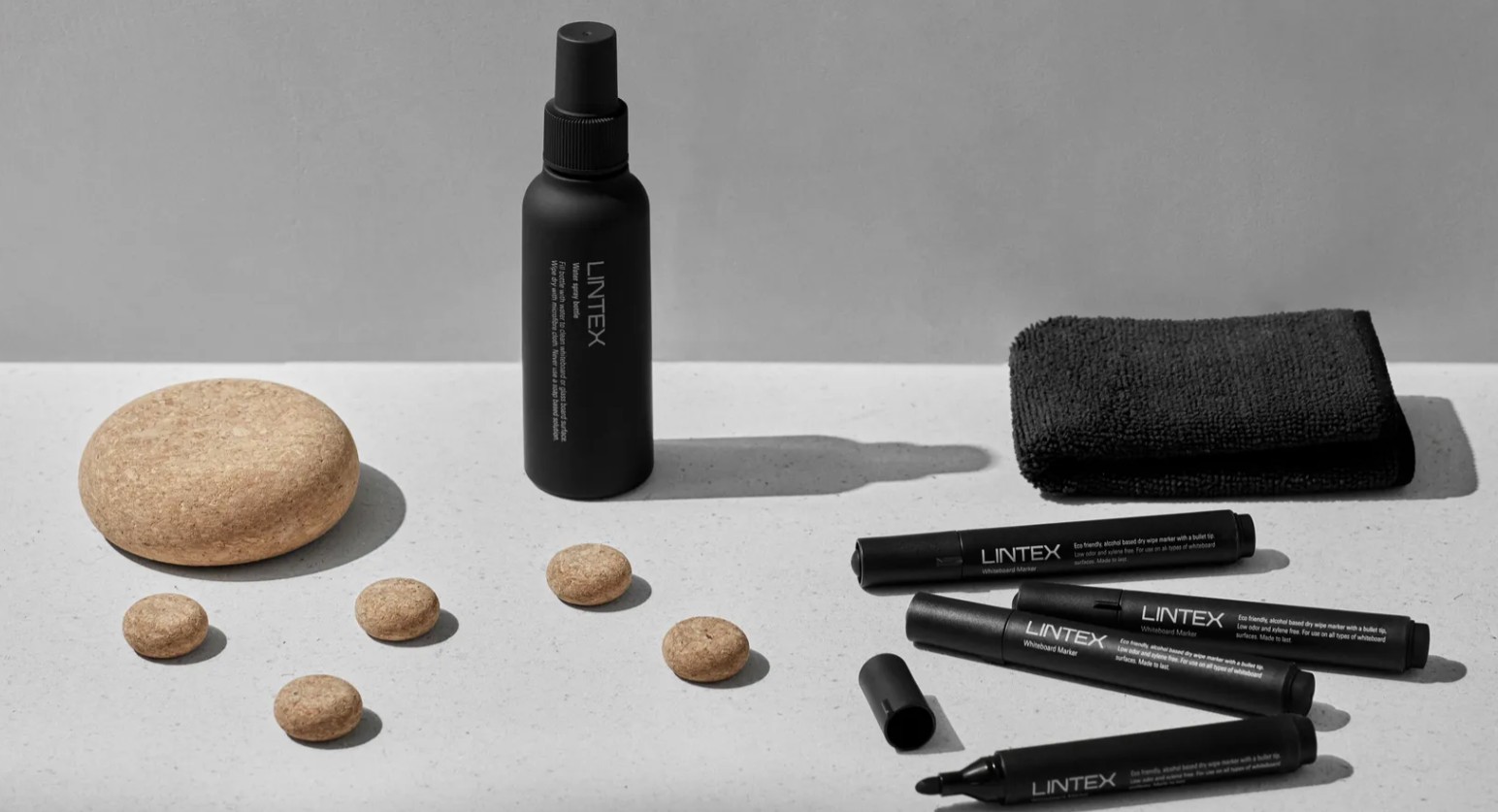 Contains 1 eraser, 5 strong magnets, 4 pens and an erasing spray