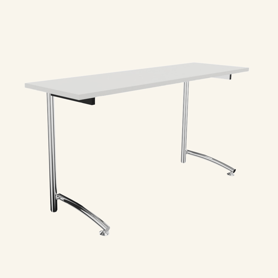Table top in laminat (white). Base in metal (chrome).