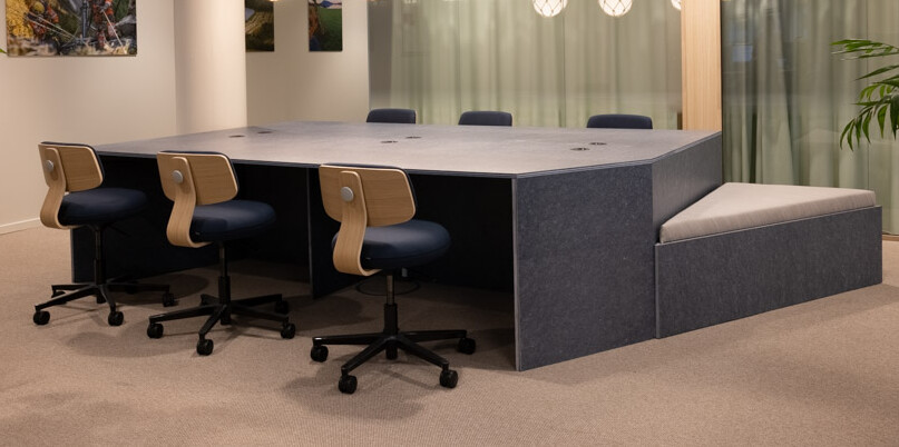 Table top and base in composite material (blue).