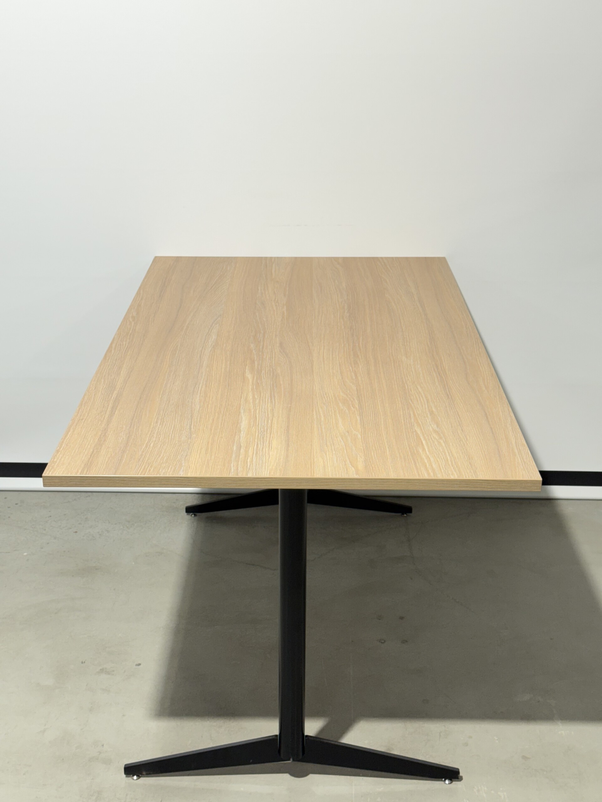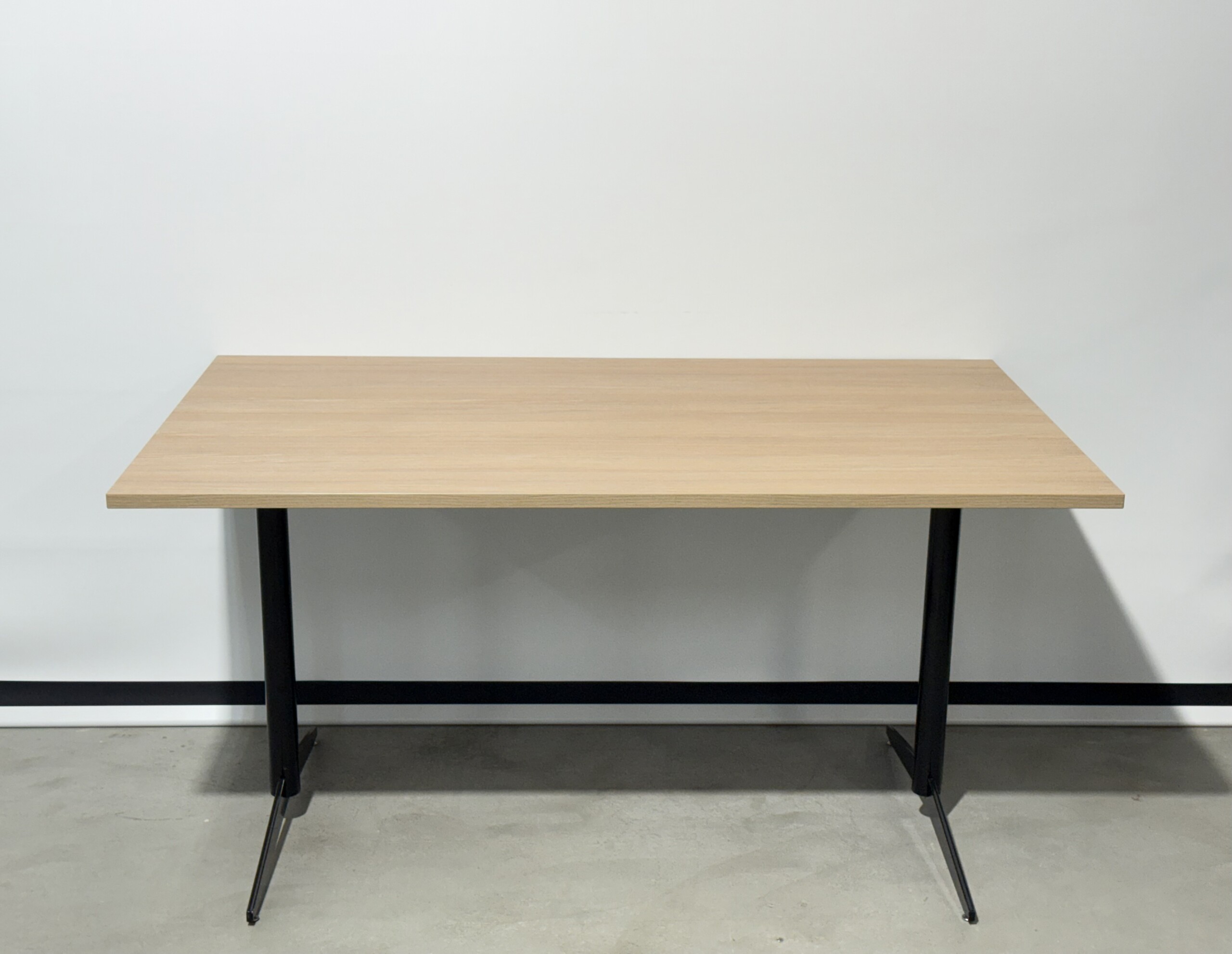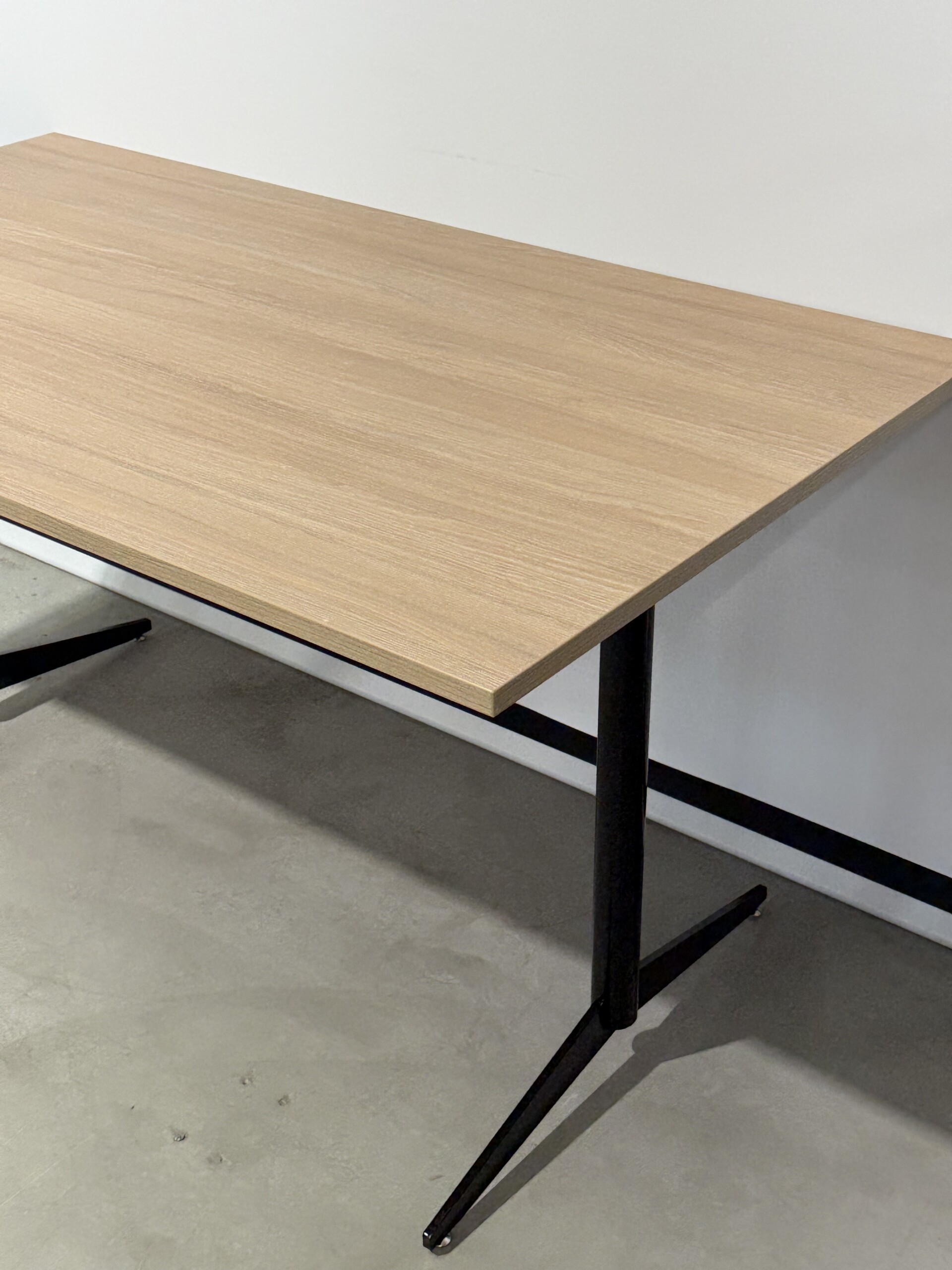 Table top in laminat (ash). Base in metal (black).