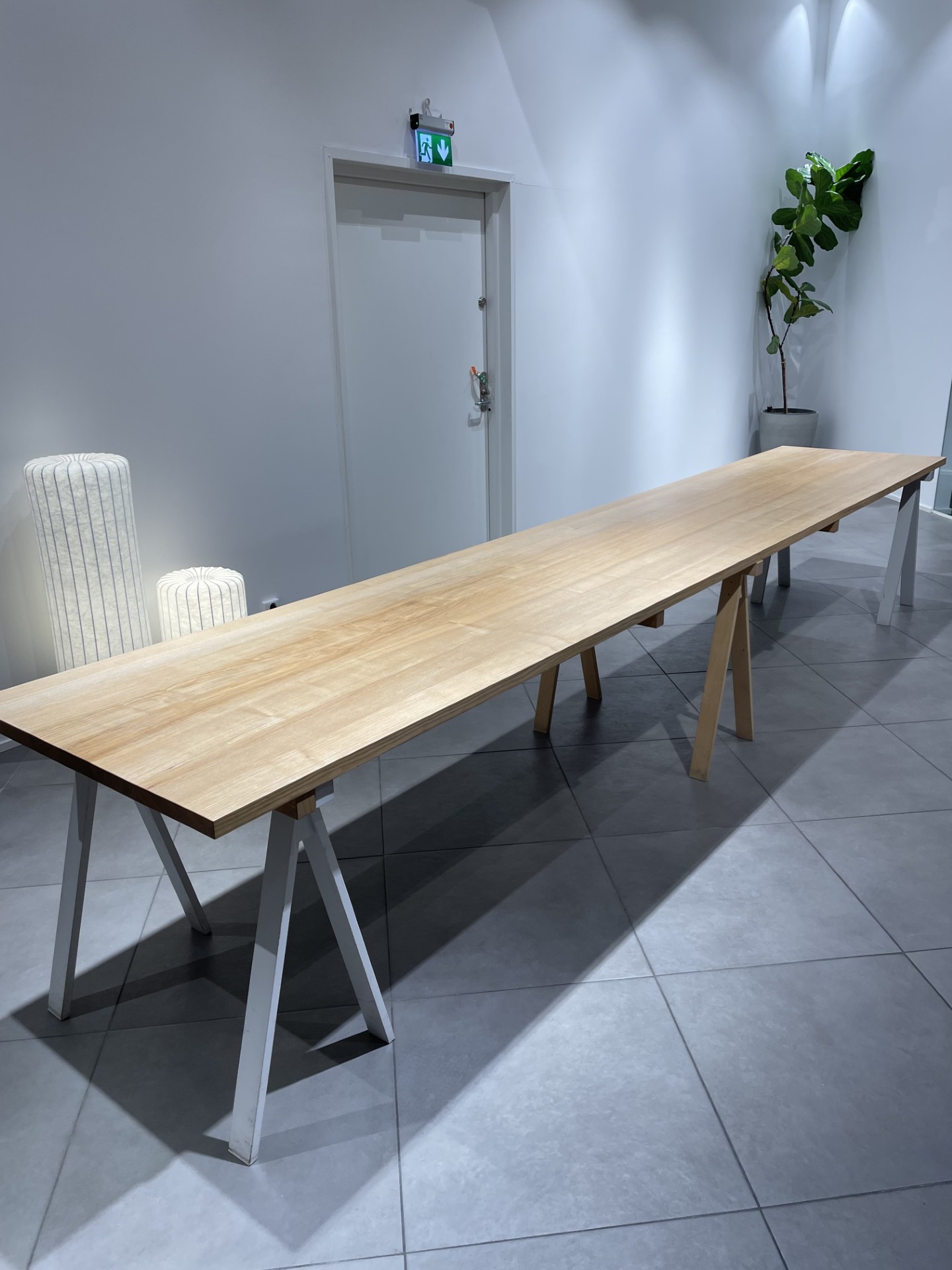 Table top in wood (birch). Base in wood.
