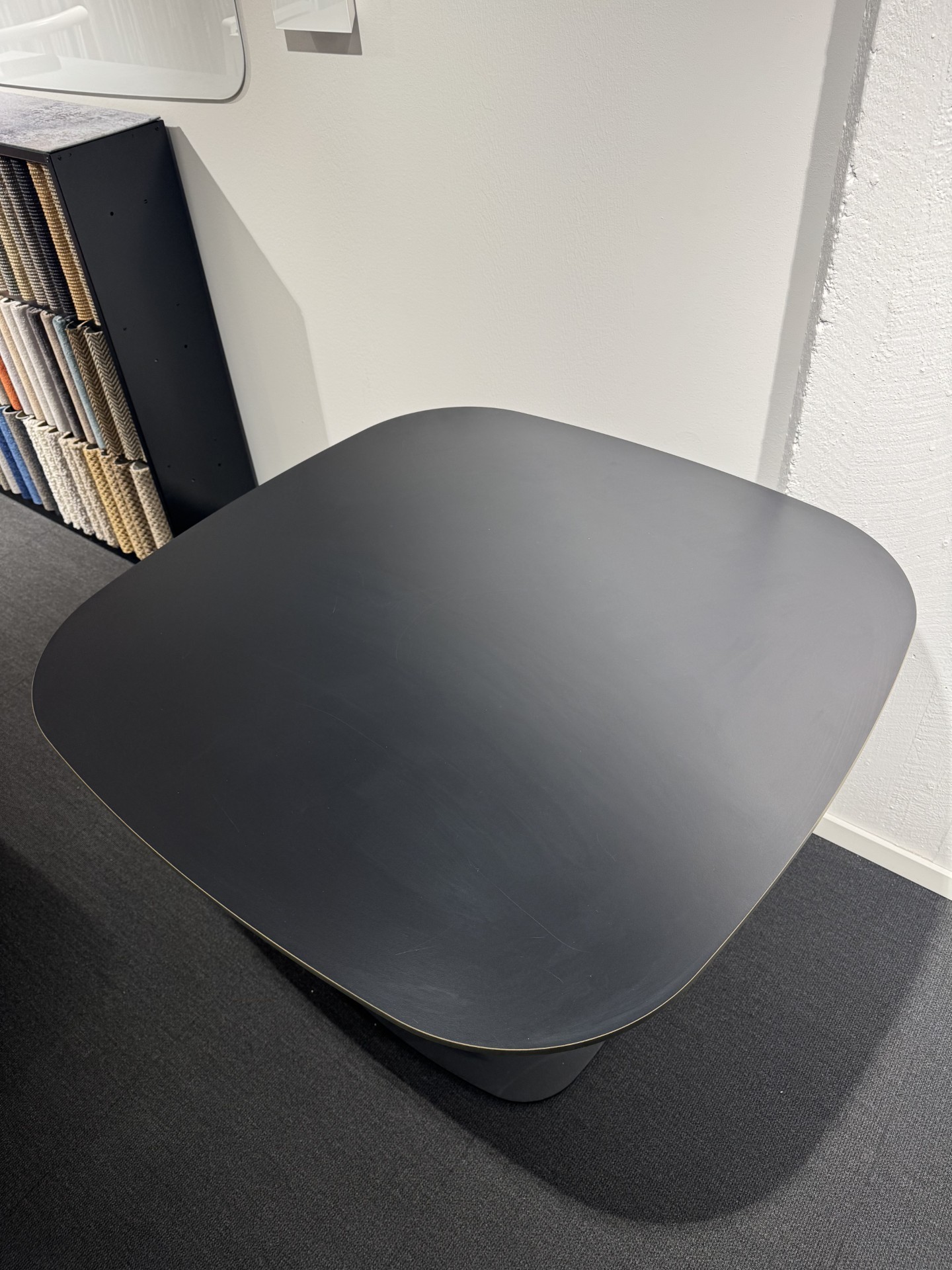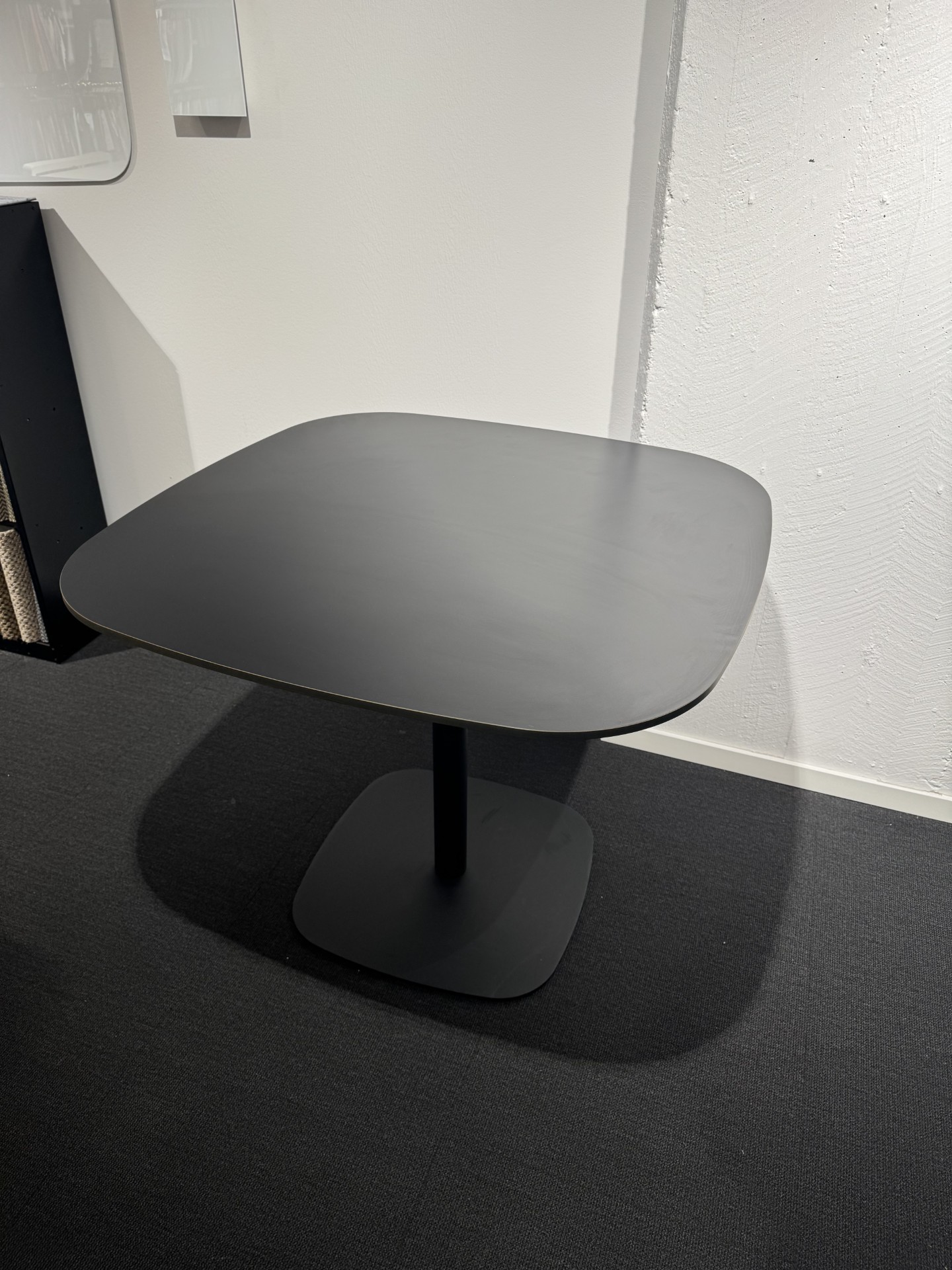 Table top in laminat (black). Base in metal (black).