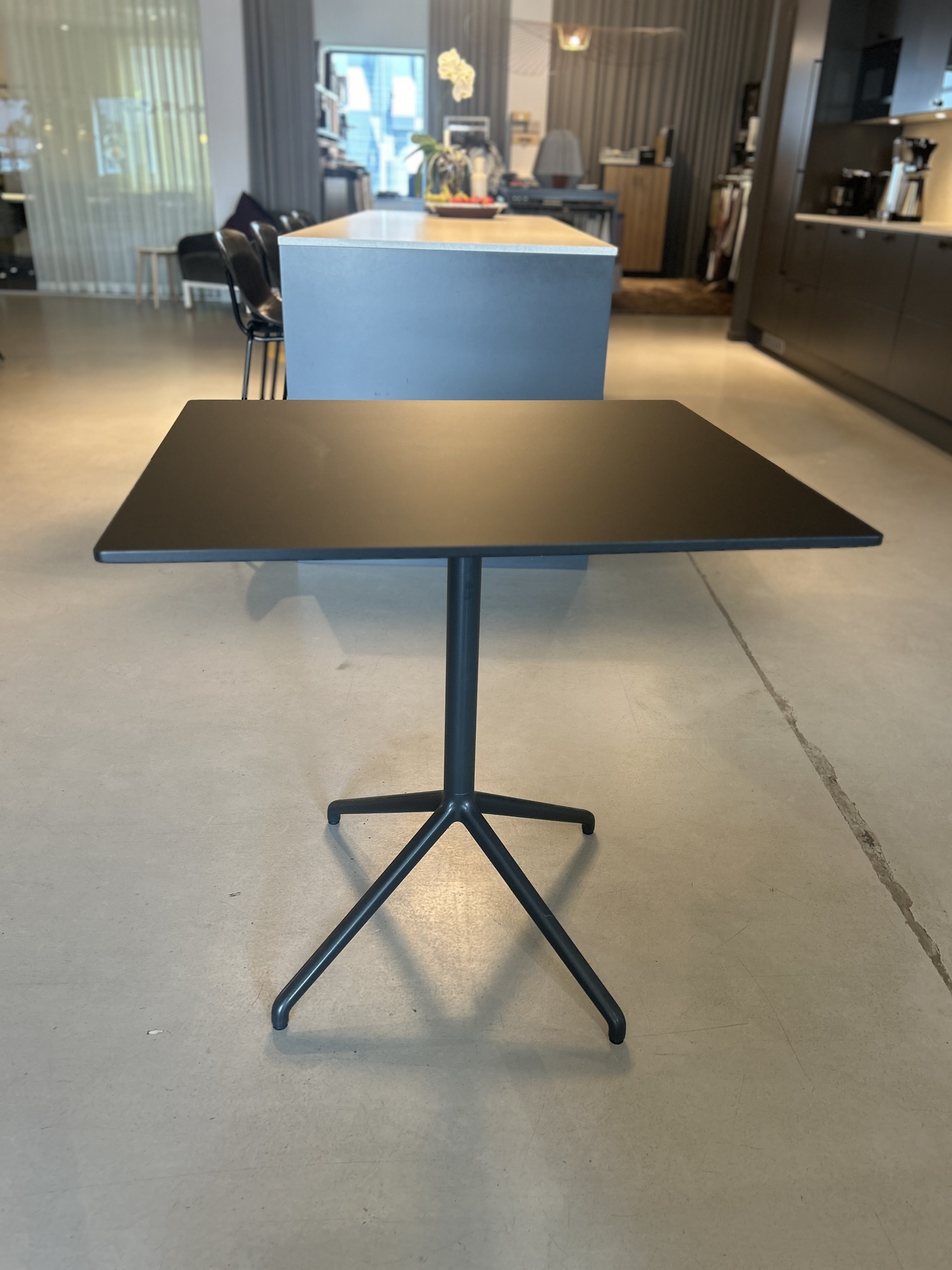 Table top in laminat (black). Base in metal (black).