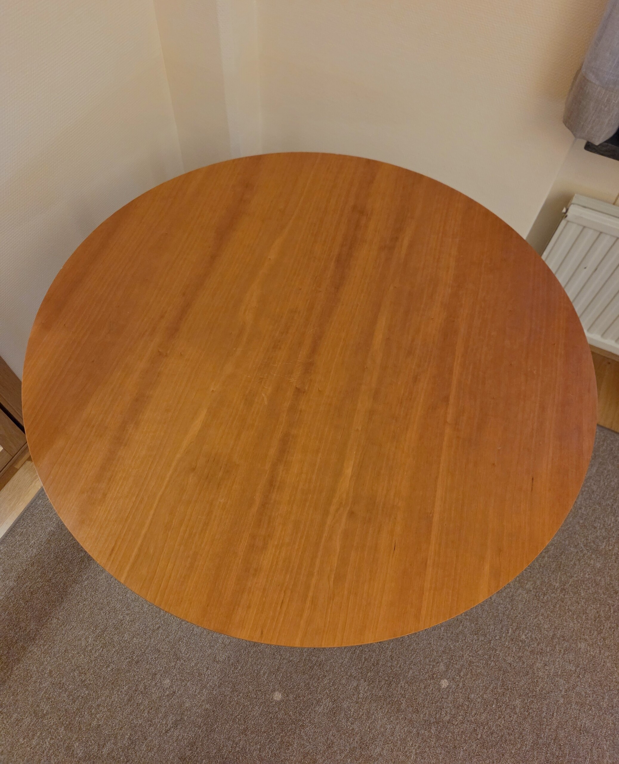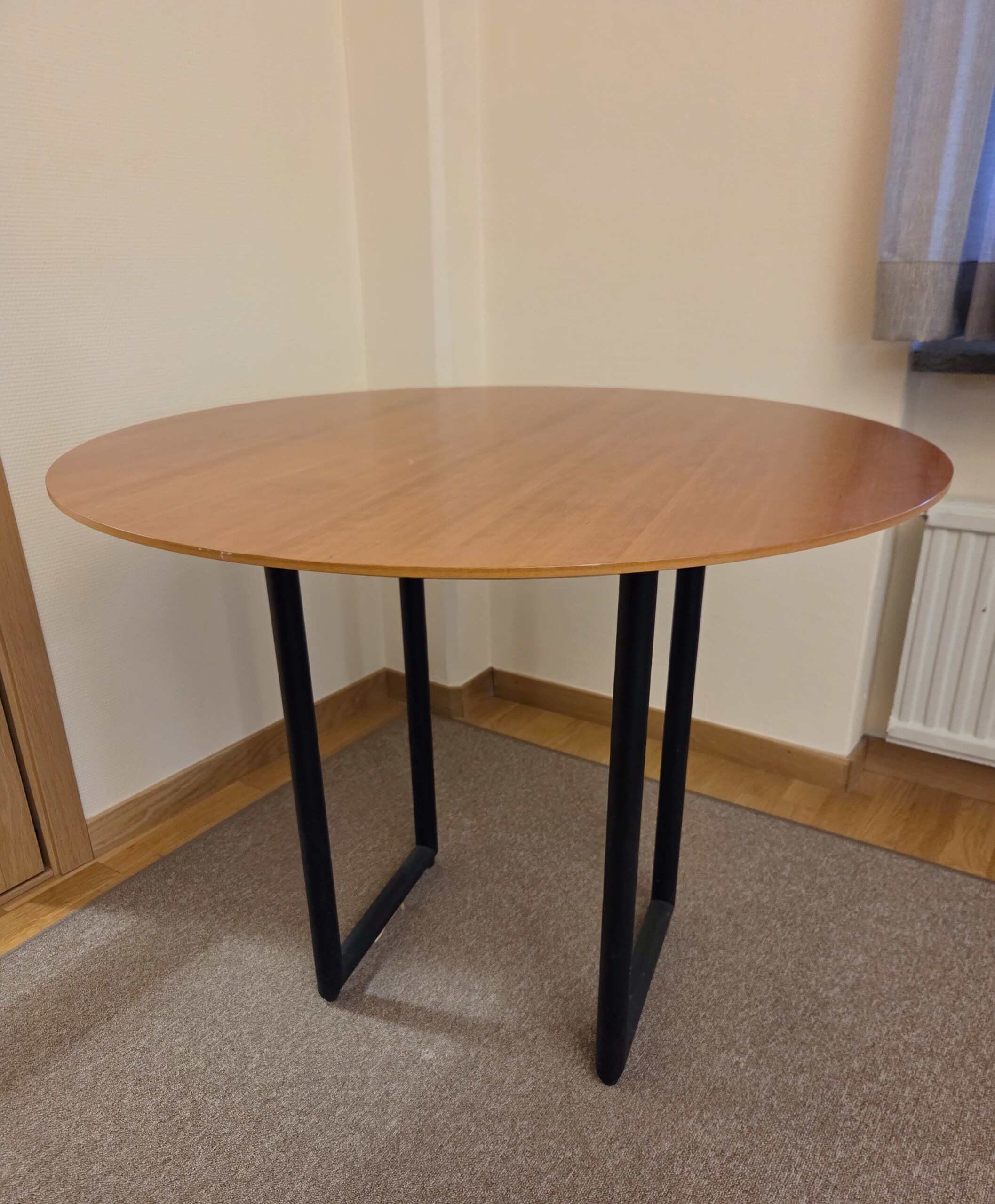 Table top in laminat. Base in metal (black).