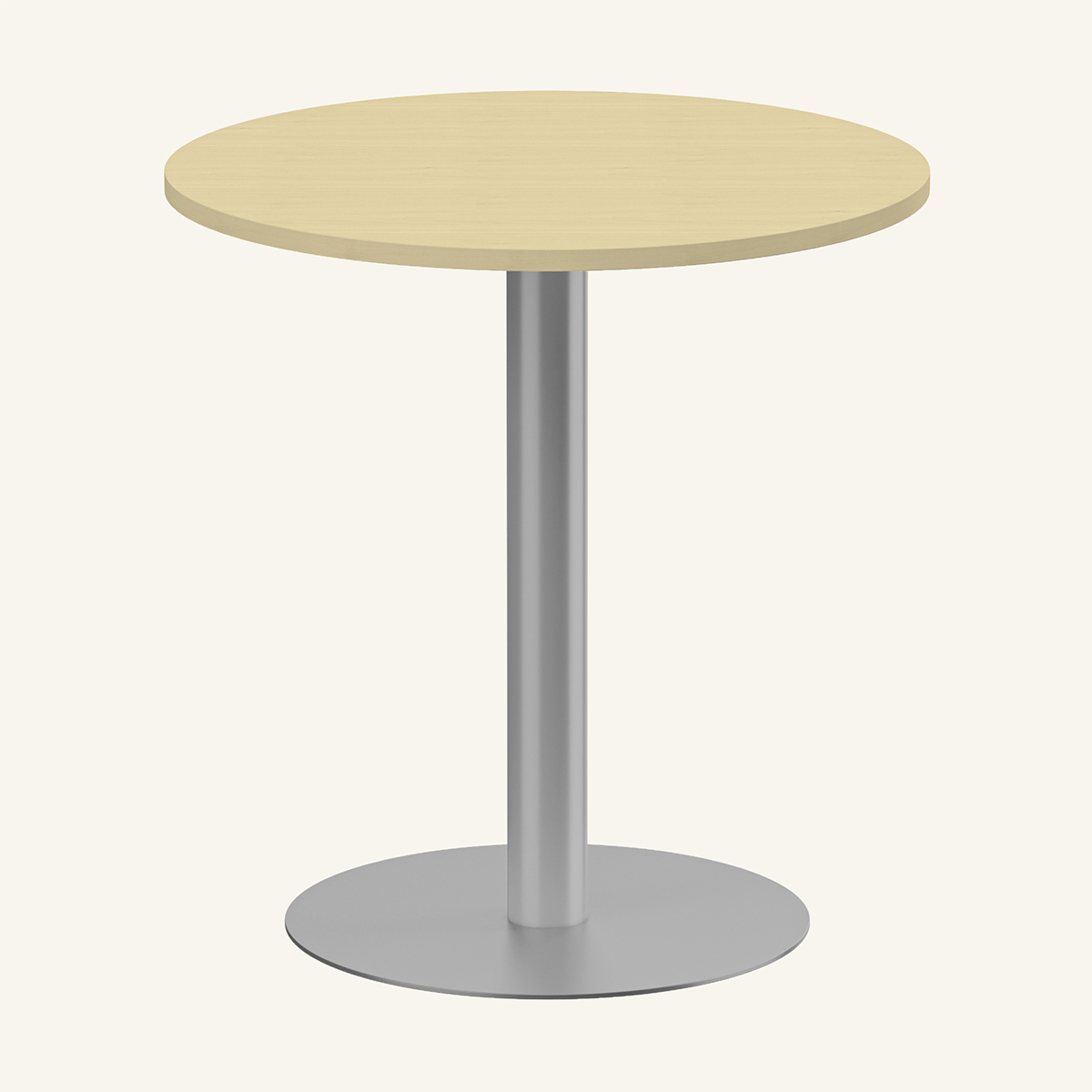 Table top in wood (birch). Base in metal (silver).
