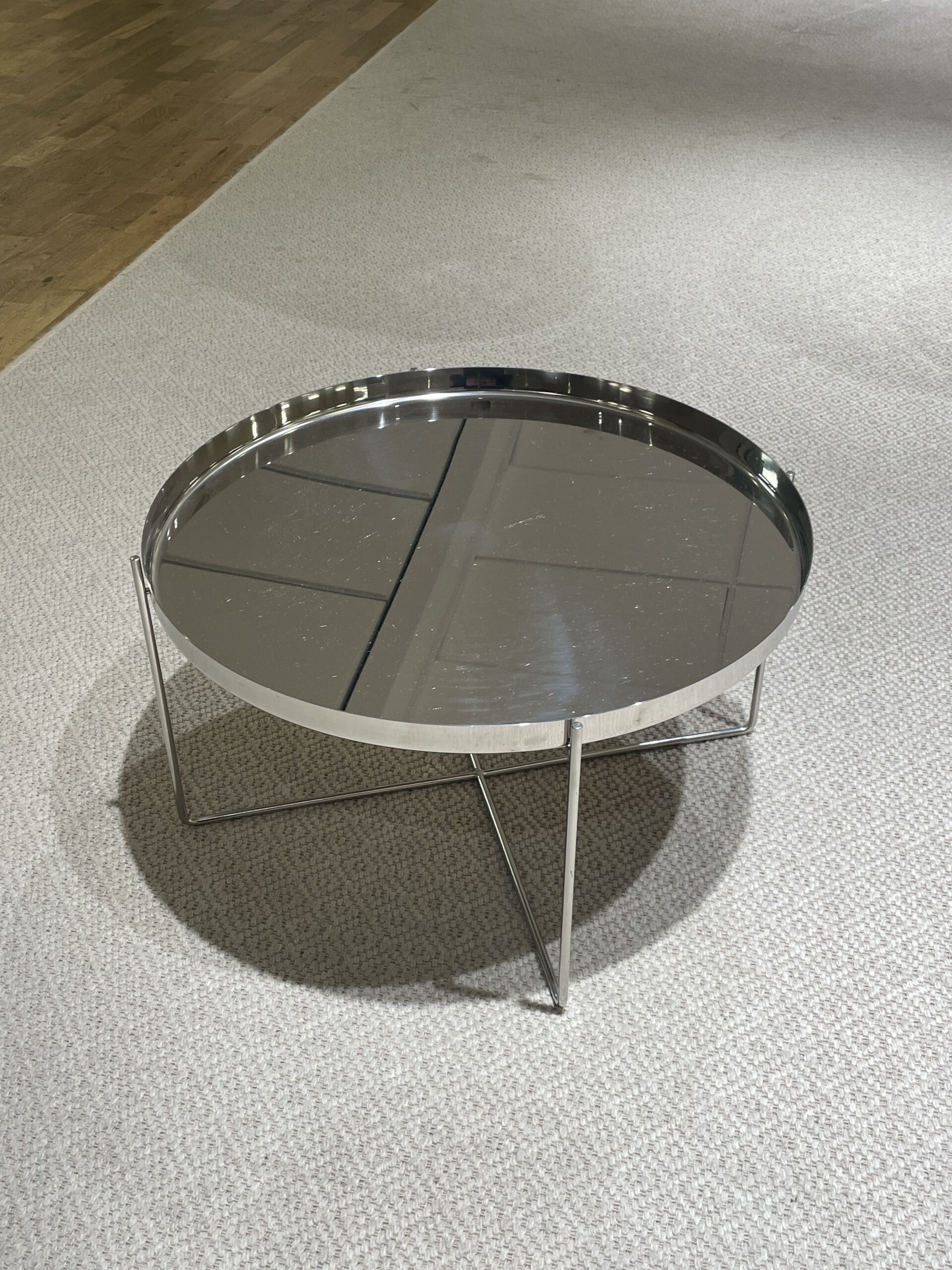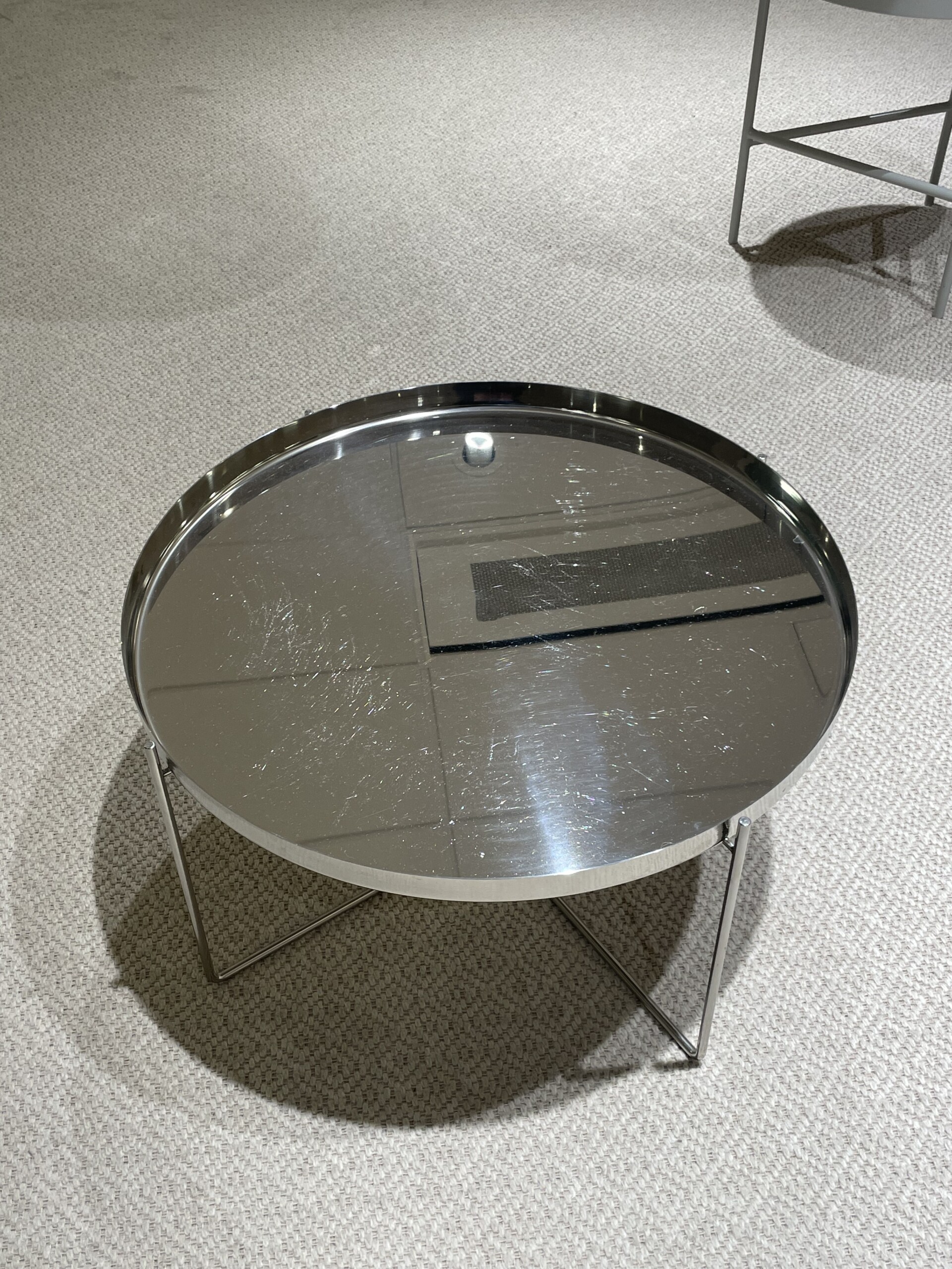 Table top and base in metal (silver).