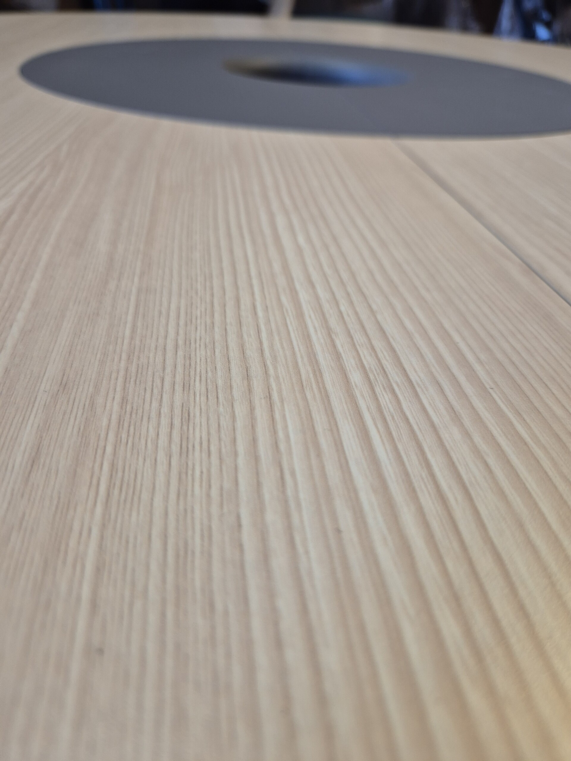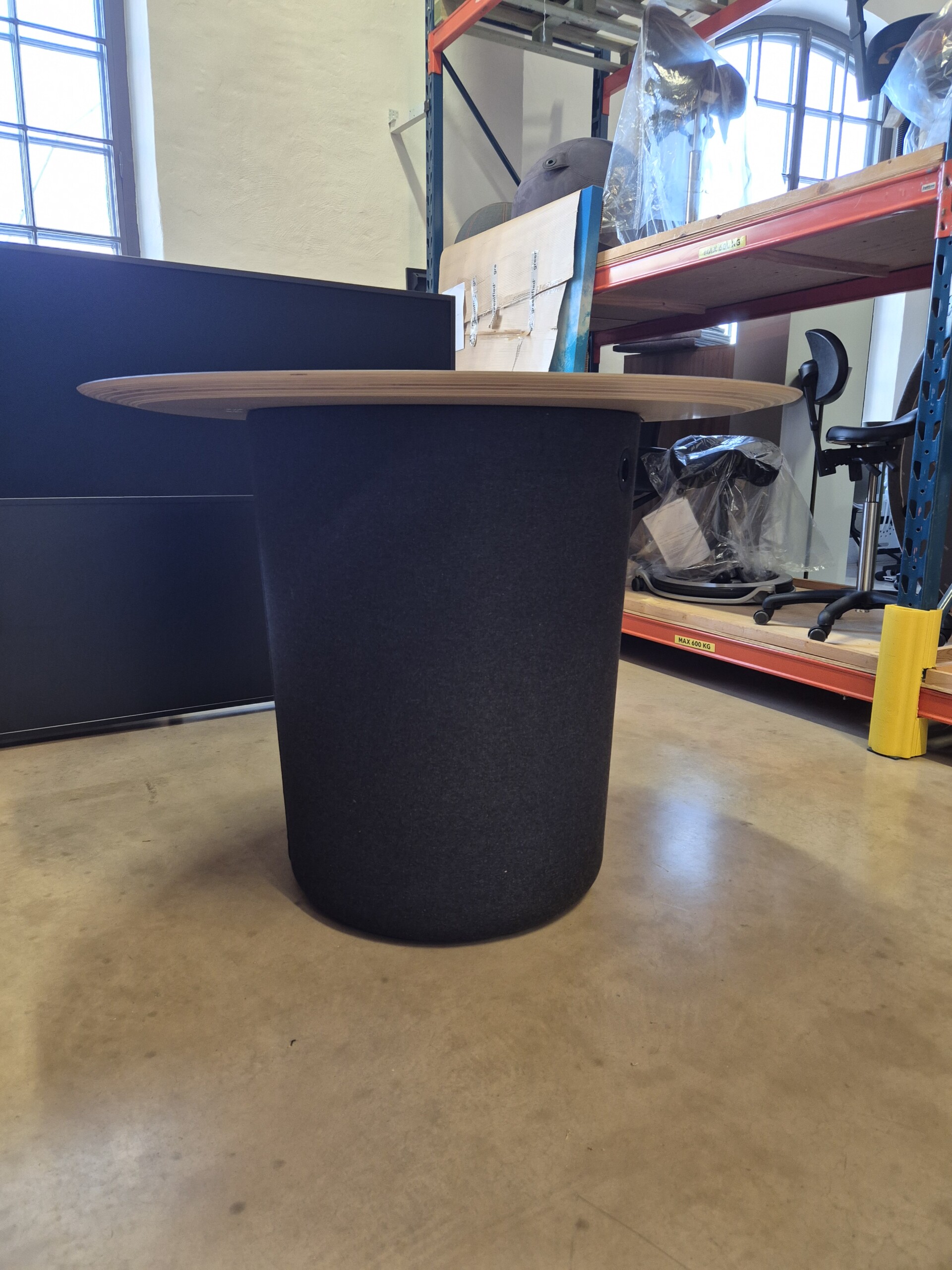 Table top in wood (ash). Base in fabric (grey).