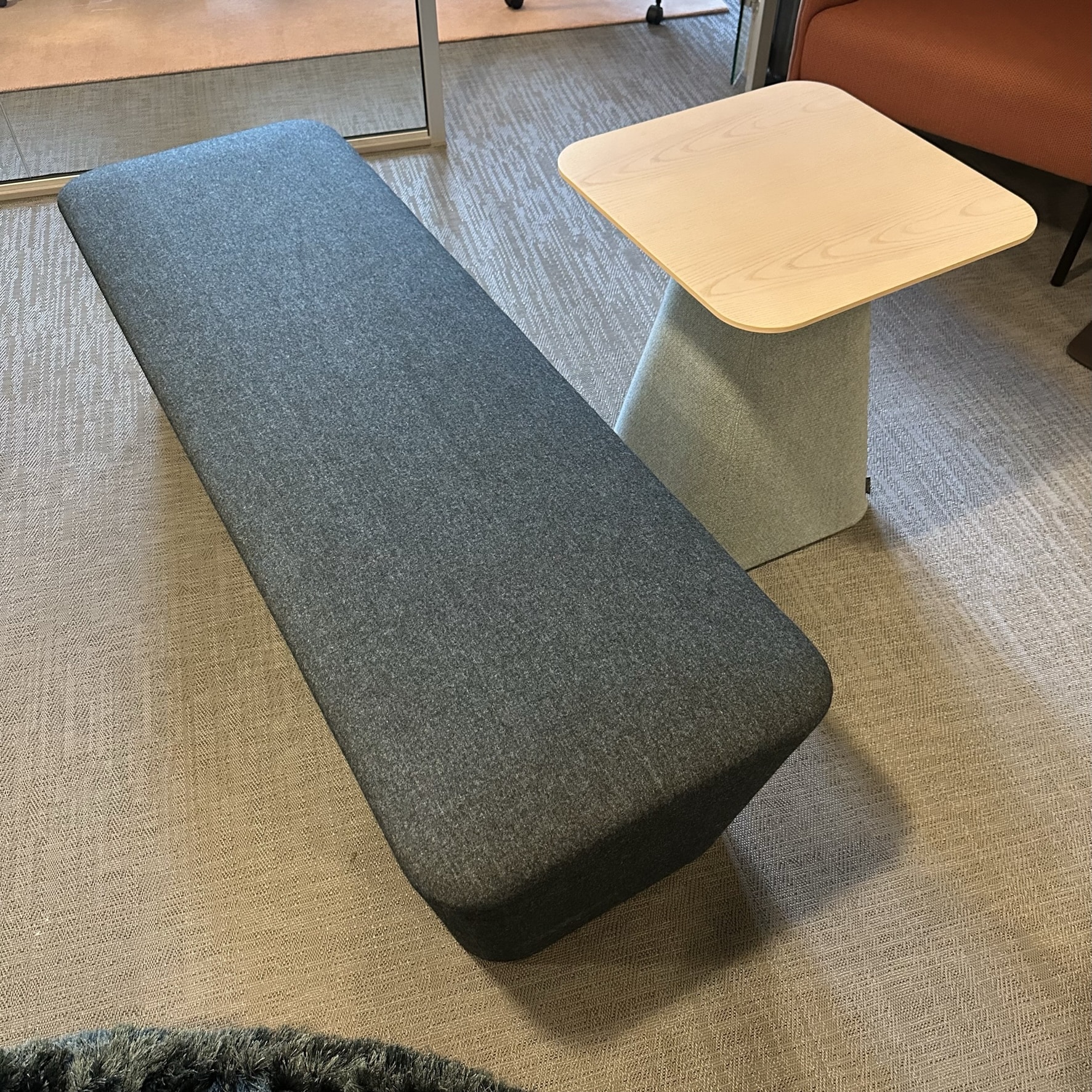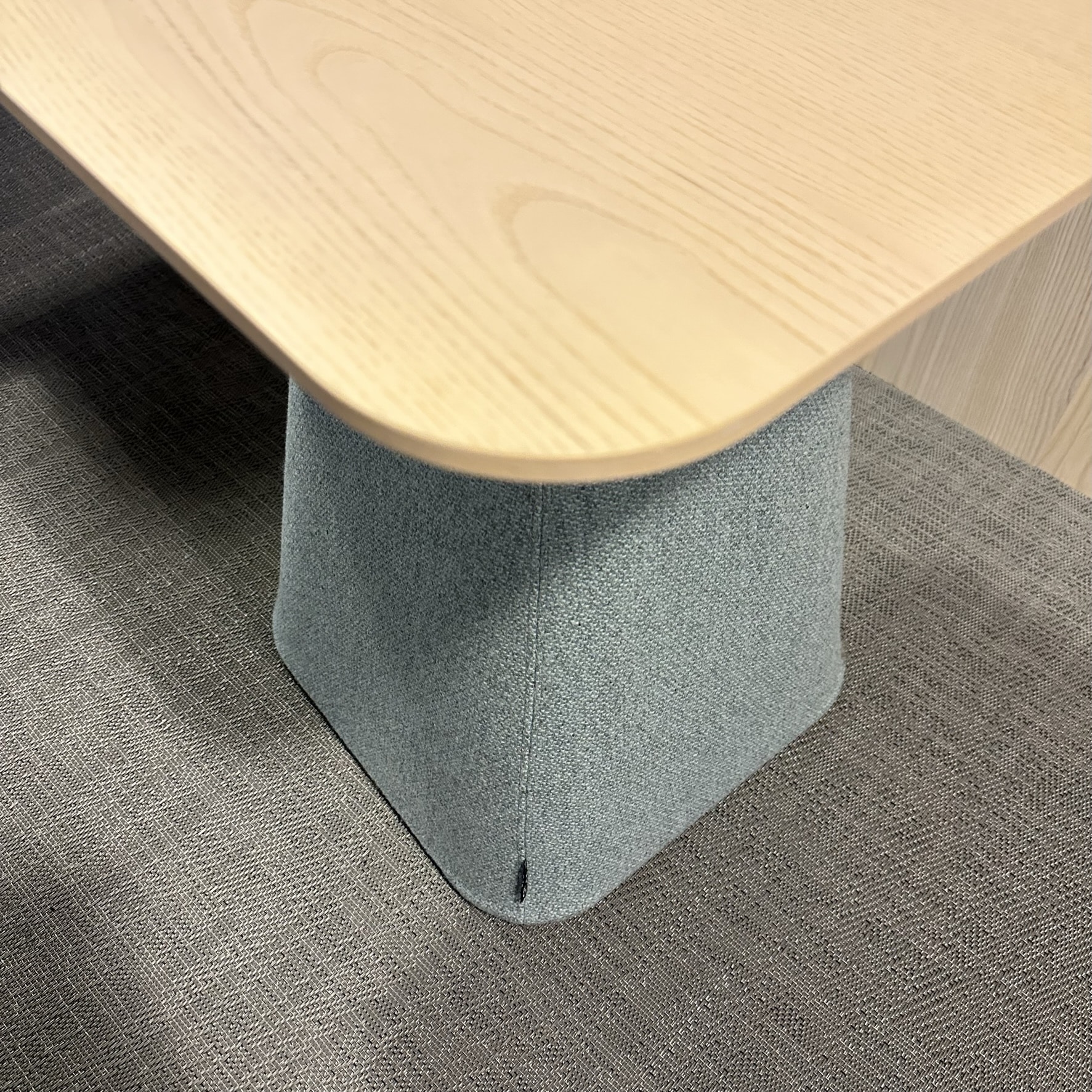 Table top in wood (ash). Base in fabric.
