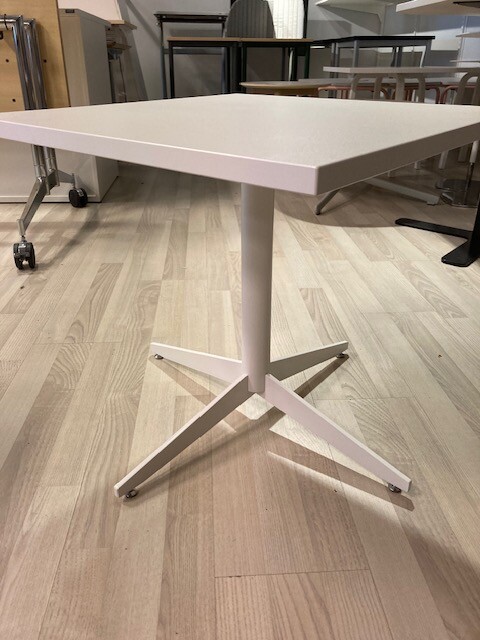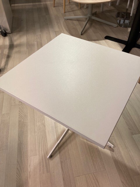Table top in laminat (white). Base in metal (white).