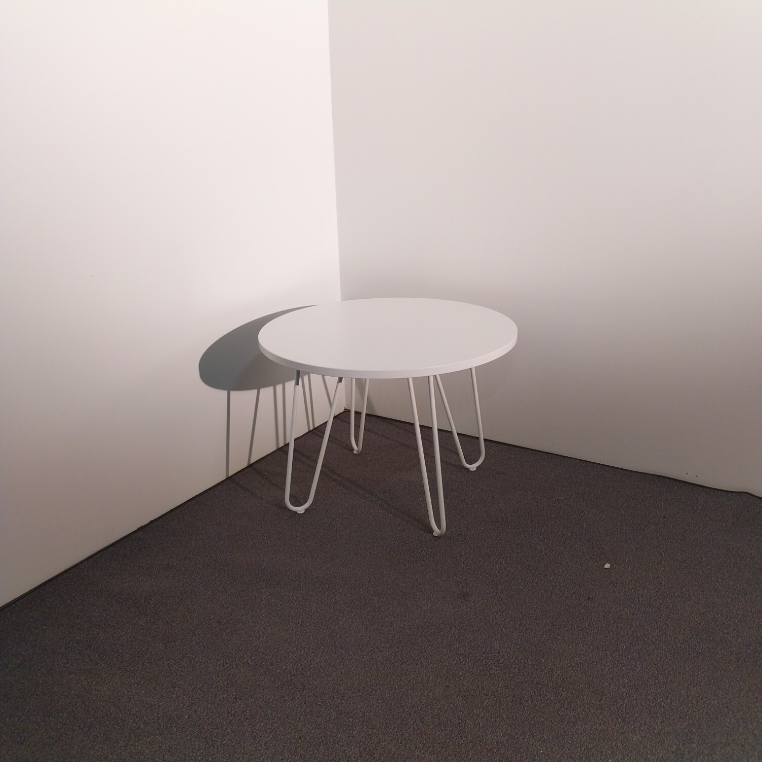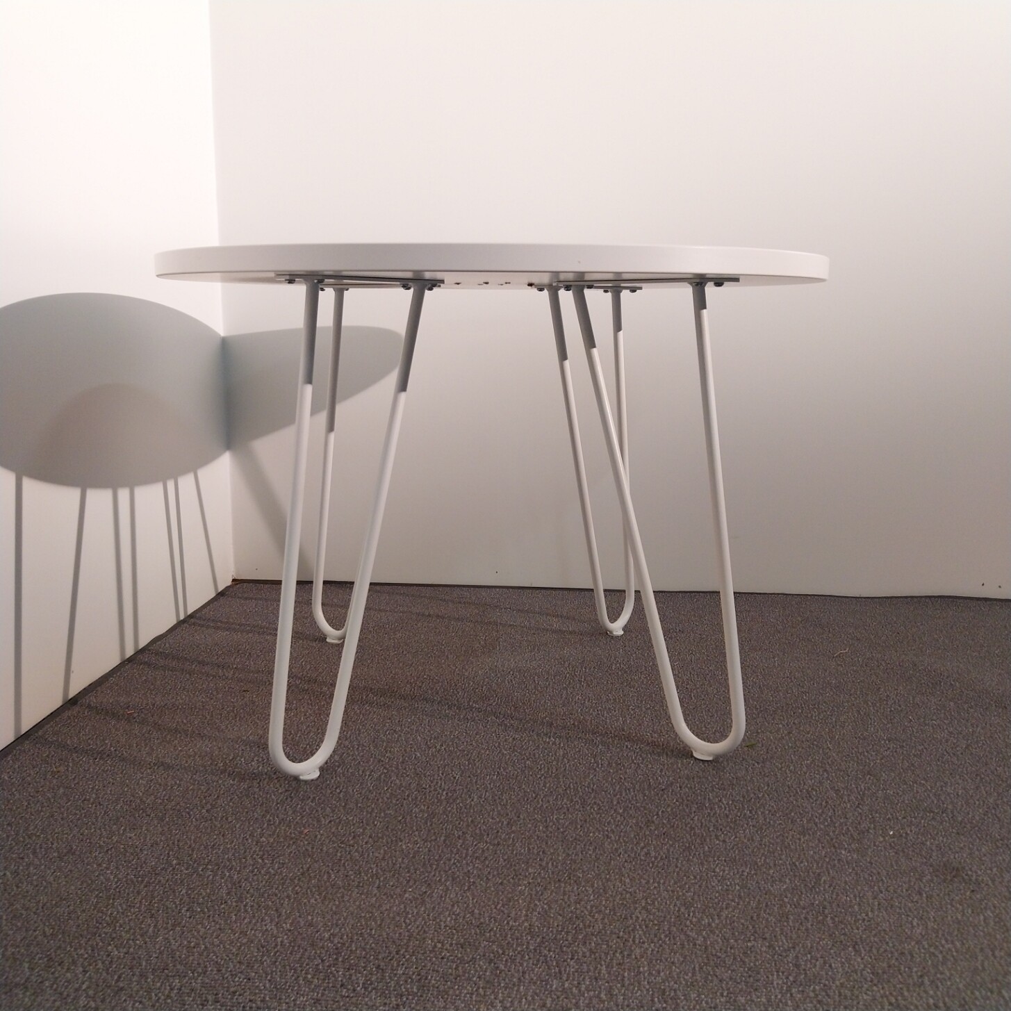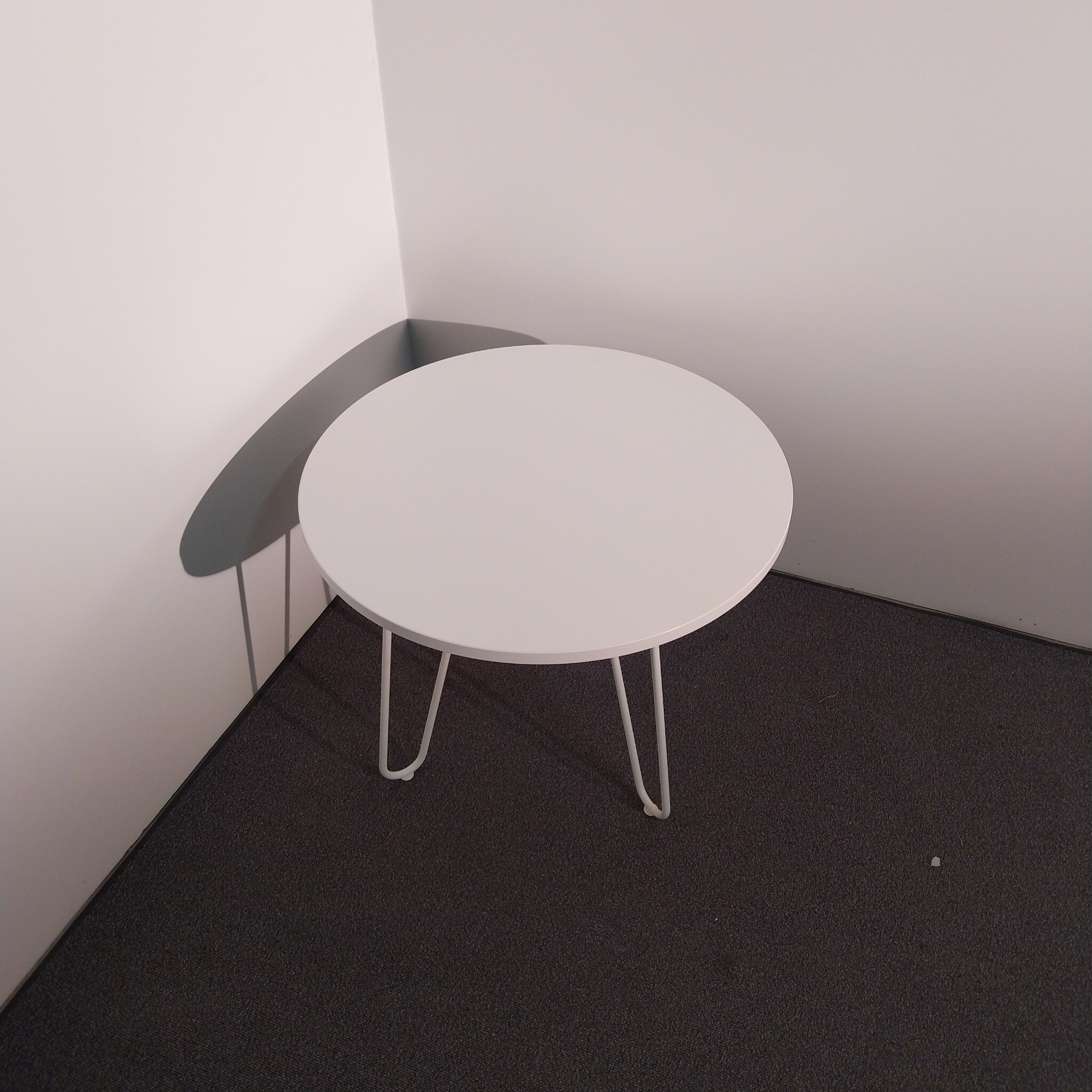 Table top in laminat (white). Base in metal (white).