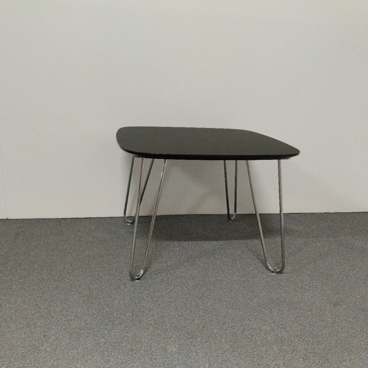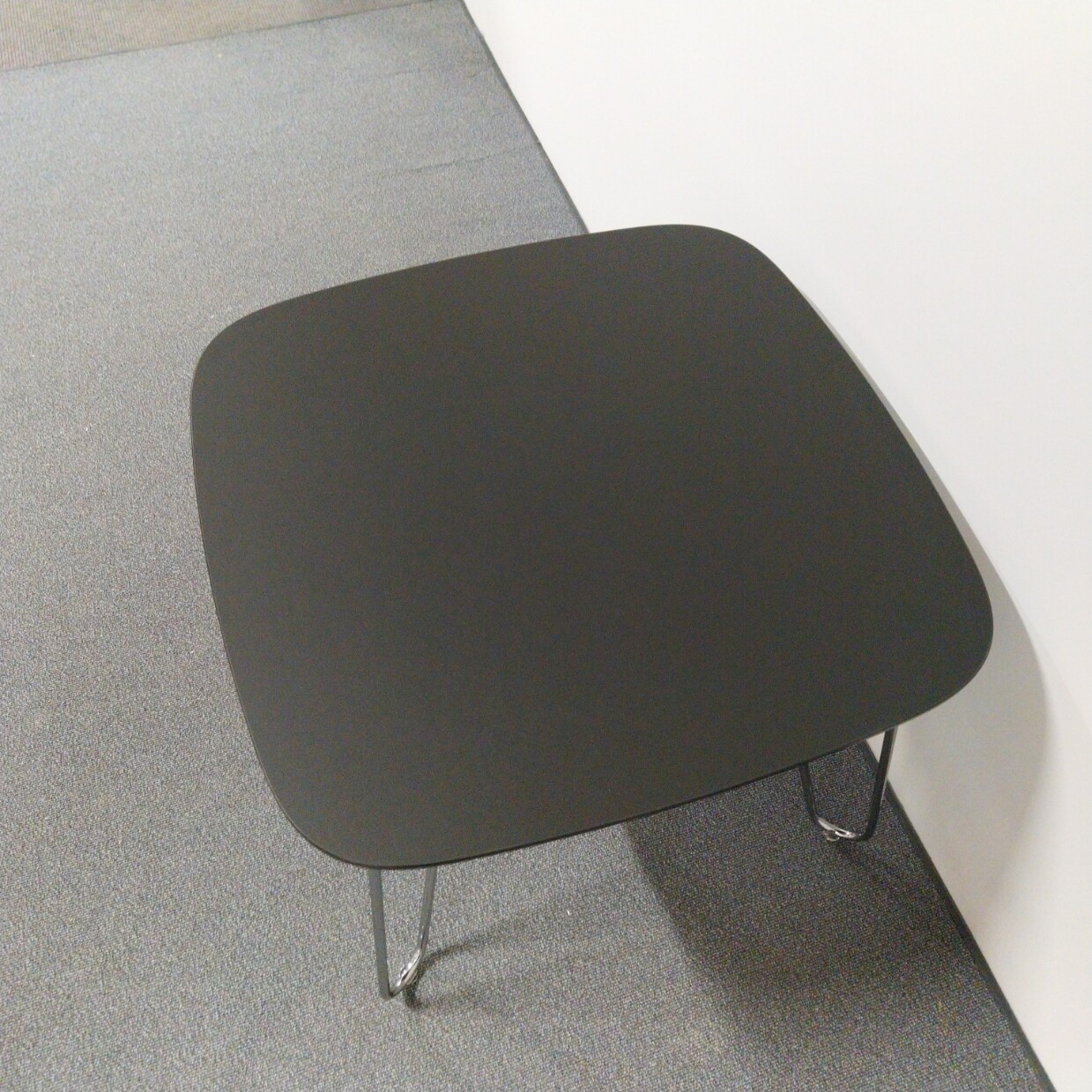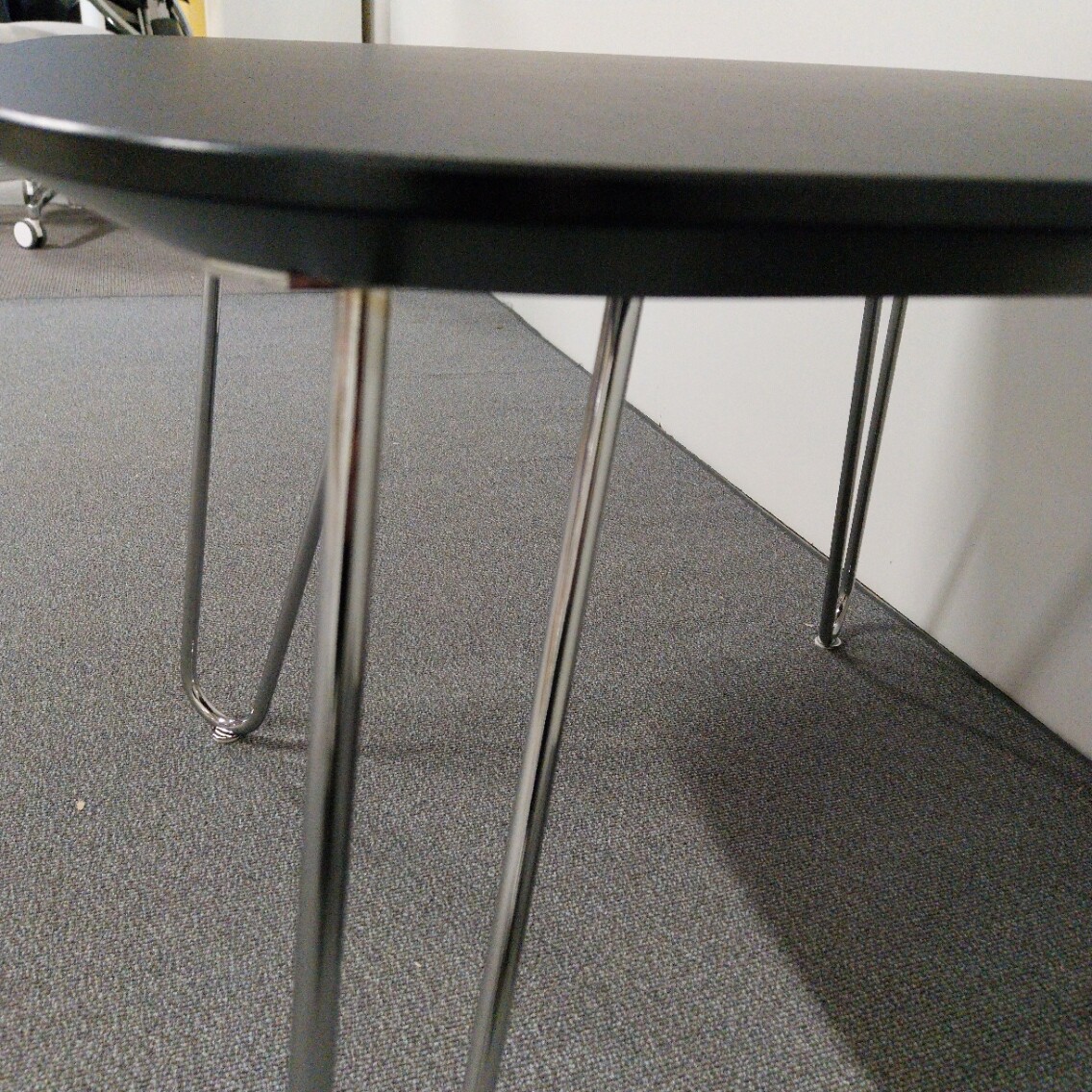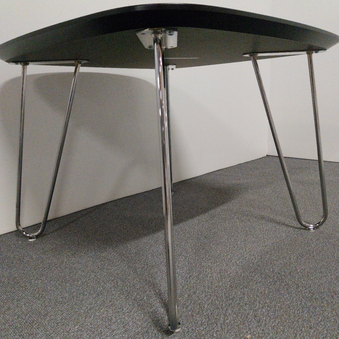 Table top in linoleum (black). Base in metal (chrome).