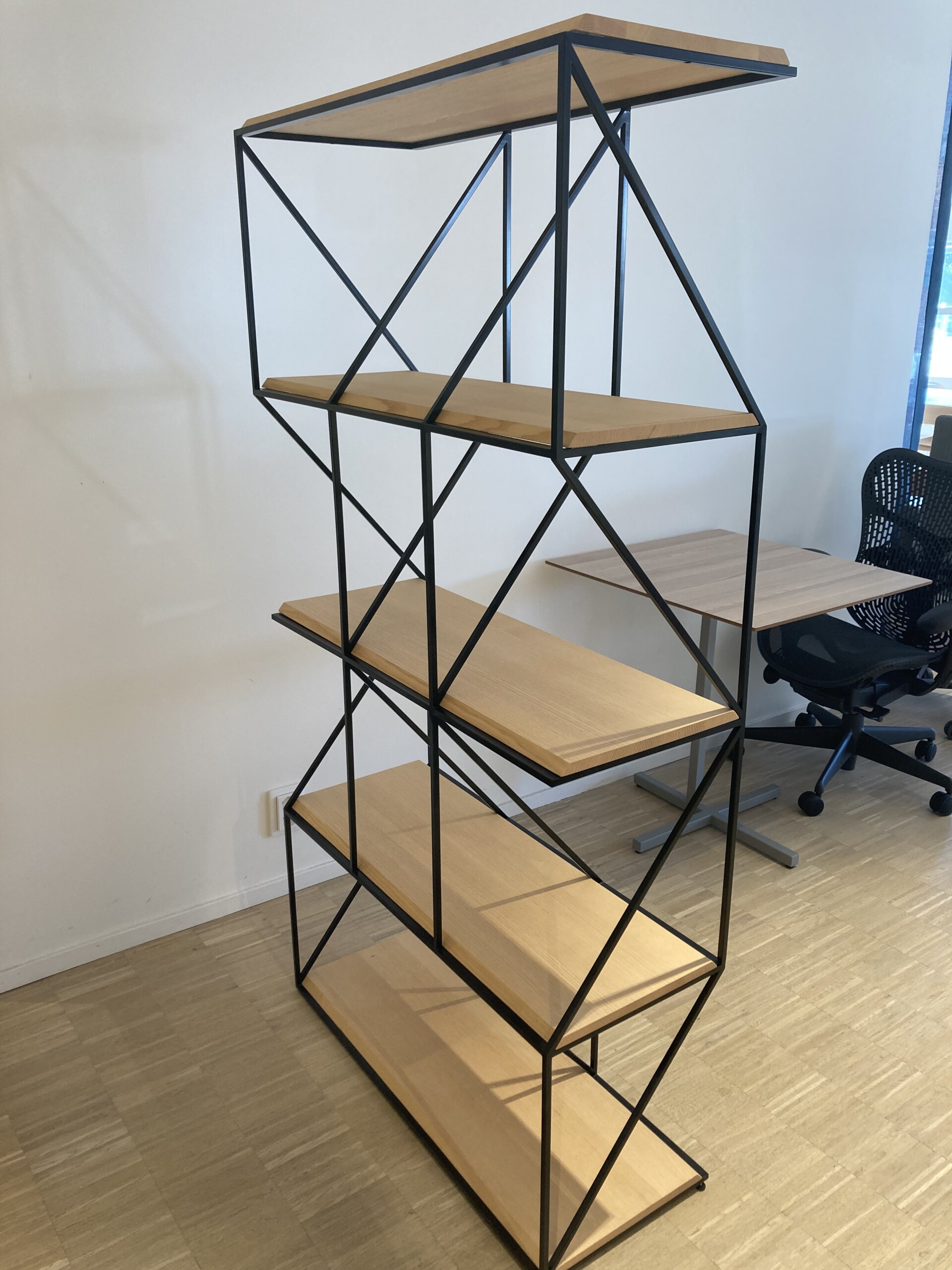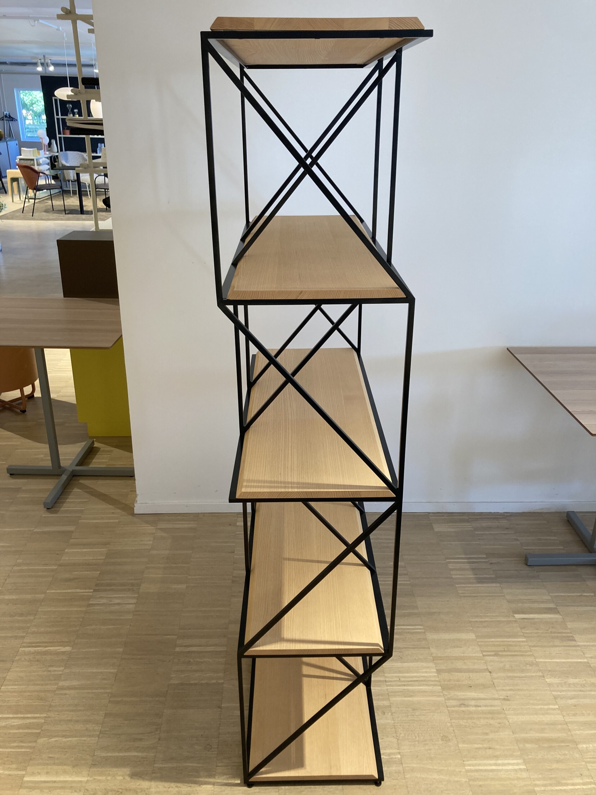 Frame in metall (black). Front in trä (ash).