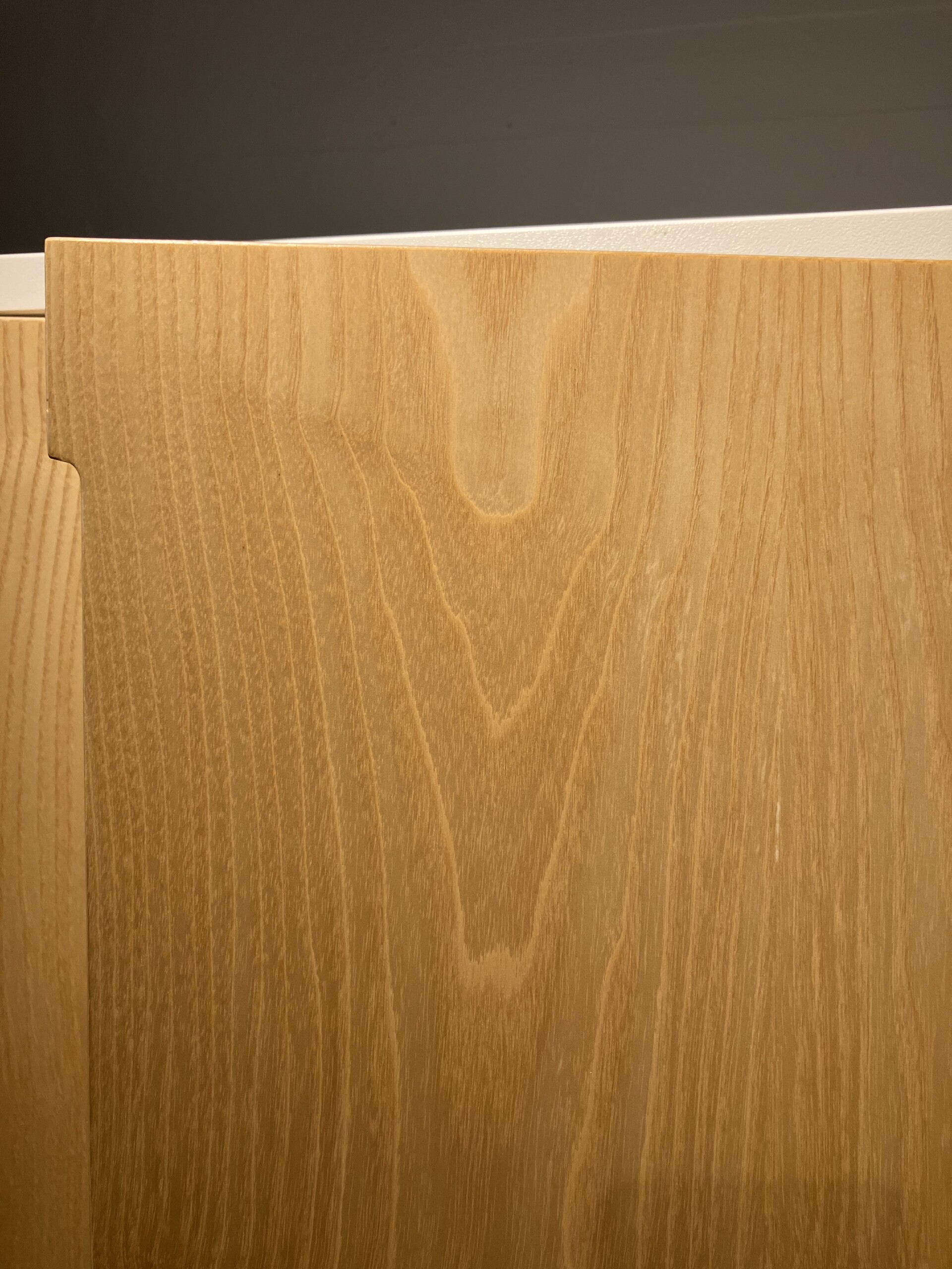 Frame in laminat (white). Front in trä (birch).