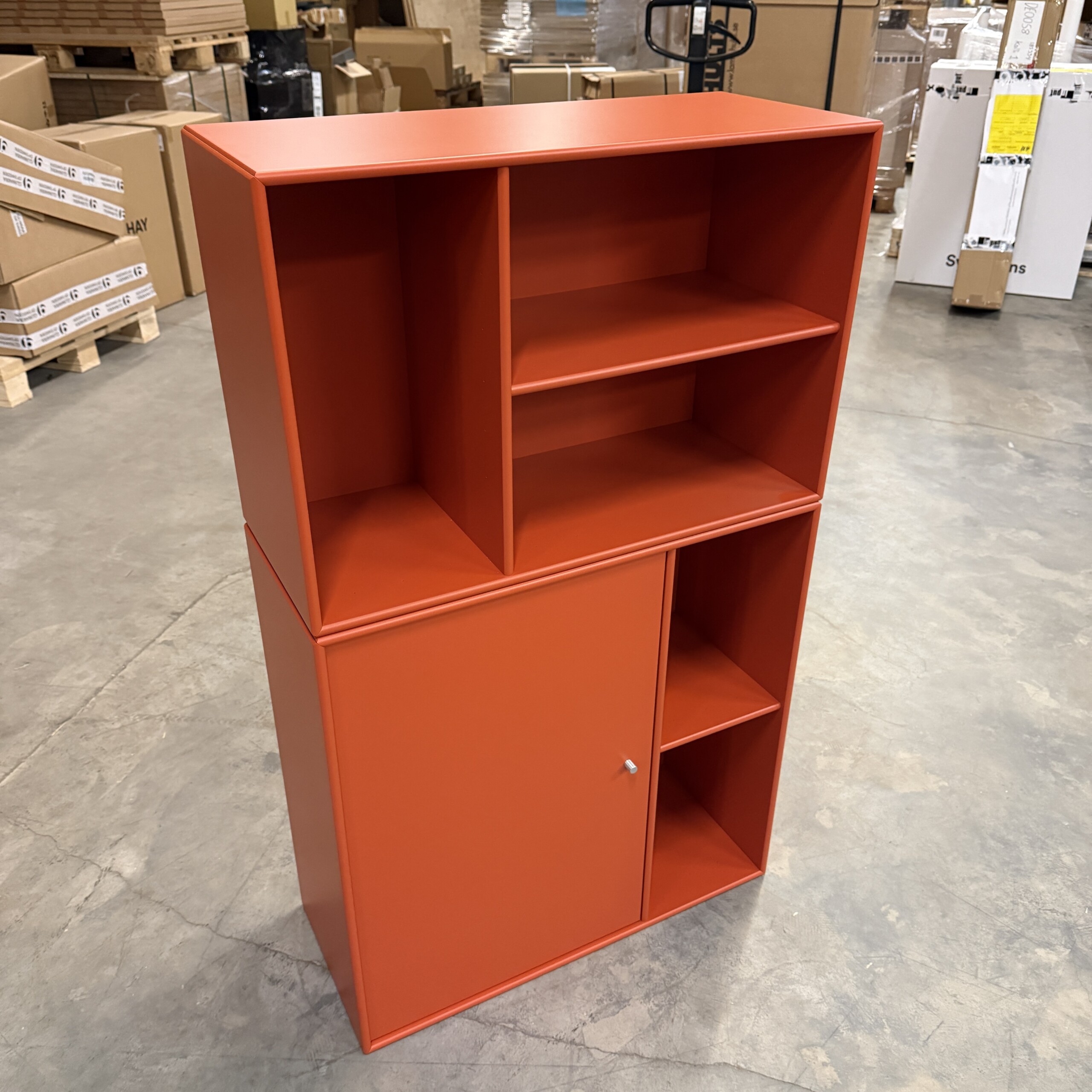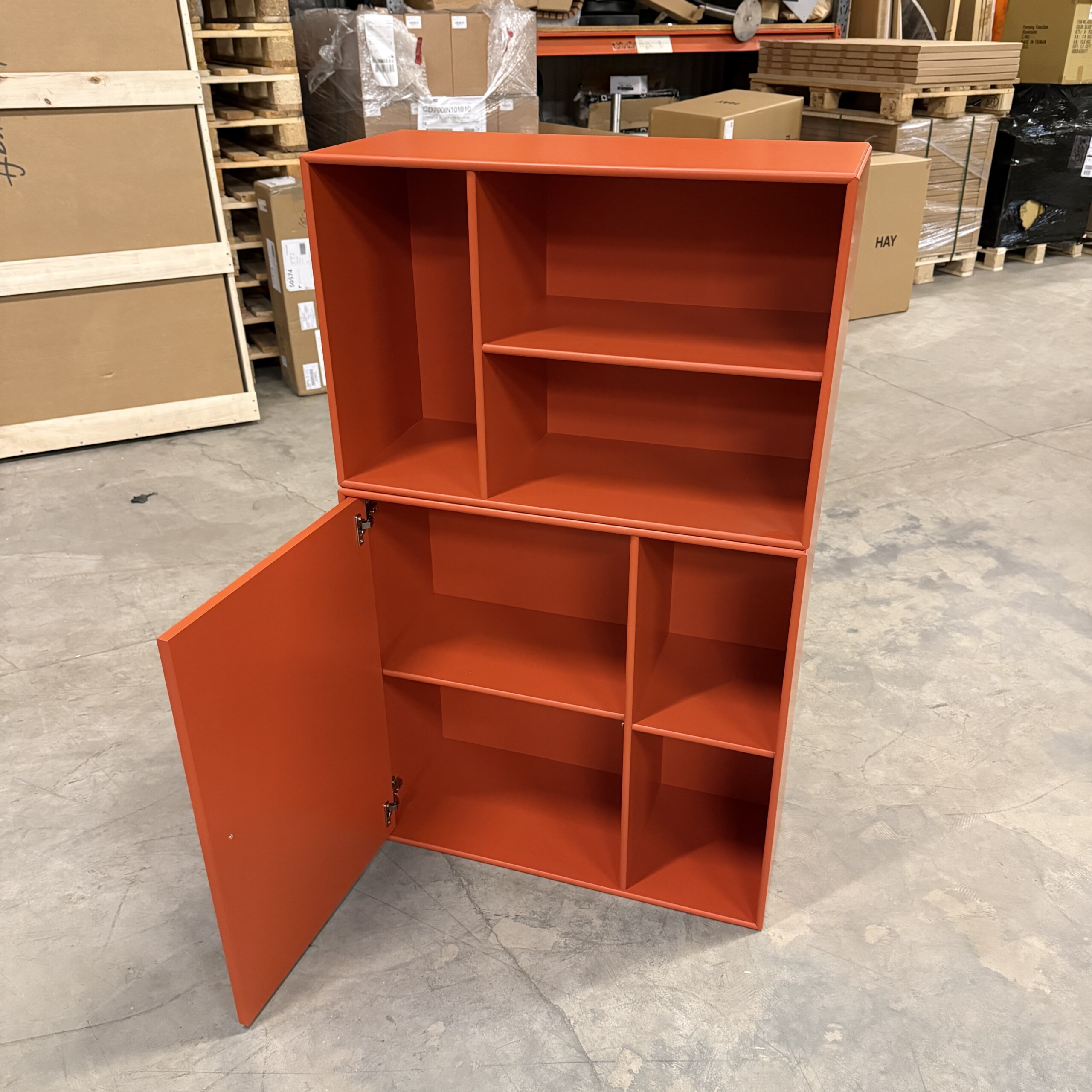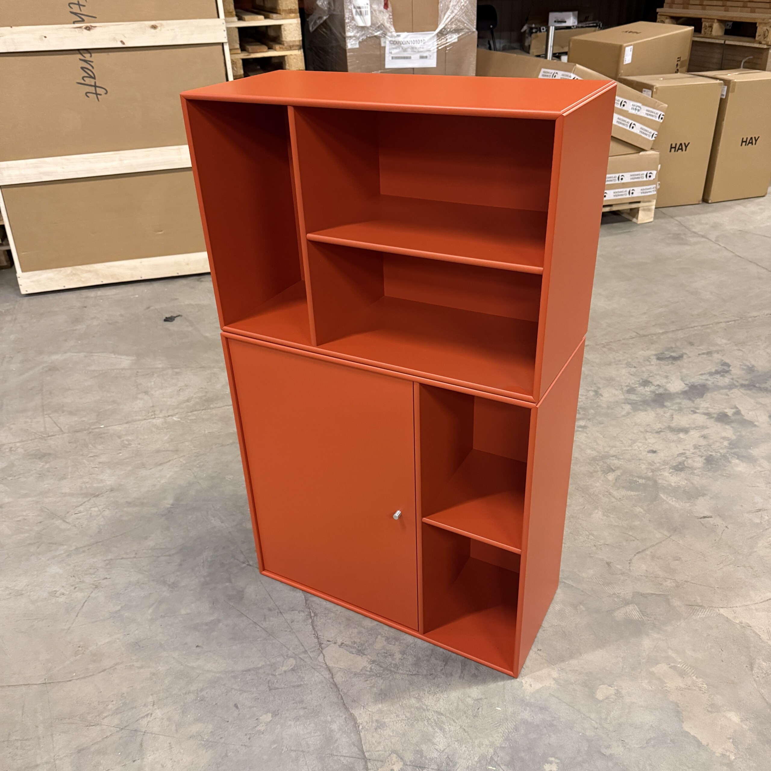 Frame and front in wood (orange).