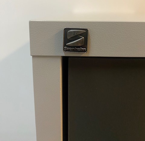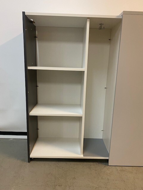 Frame in laminat (grey). Front in laminat (black).
