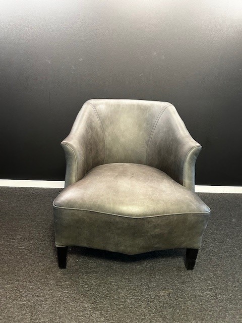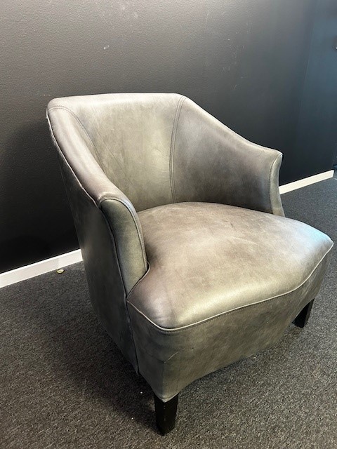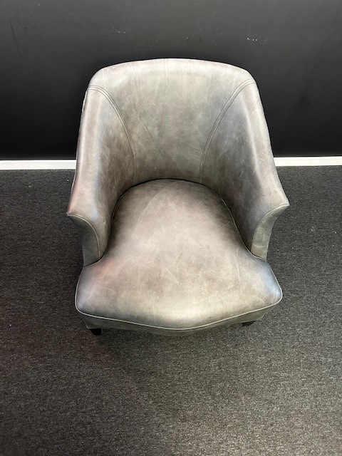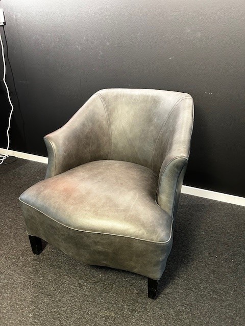 Seat and backrest in leather (grey). Legs in wood (black).