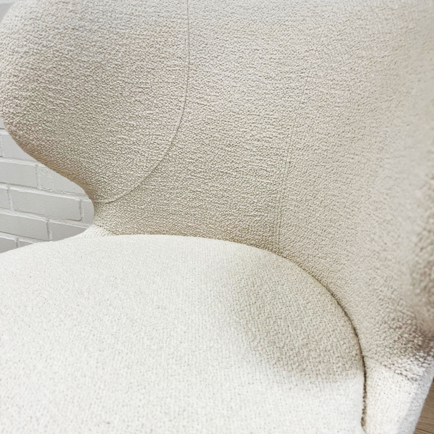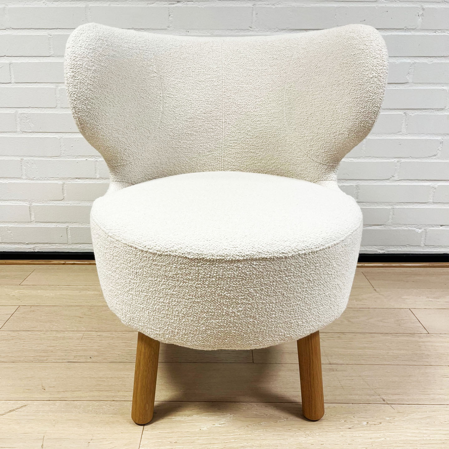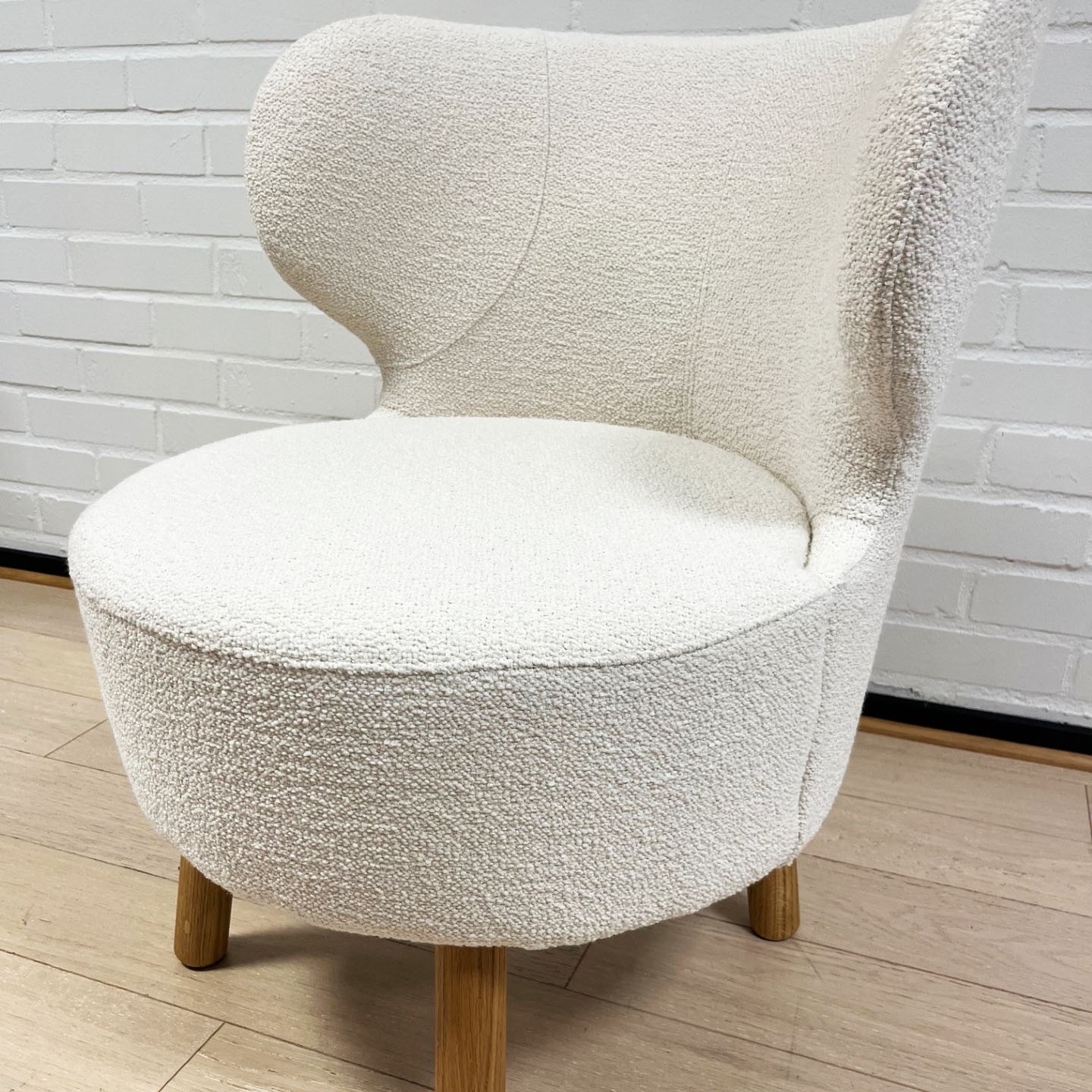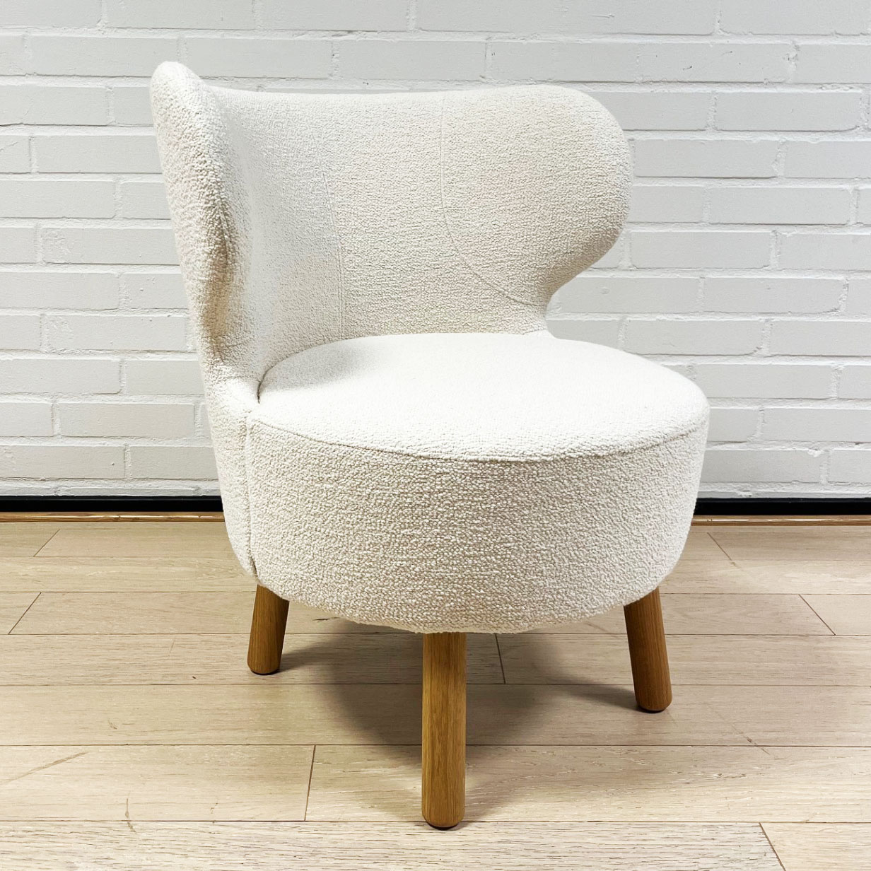Seat and backrest in fabric (white). Legs in wood (oak).