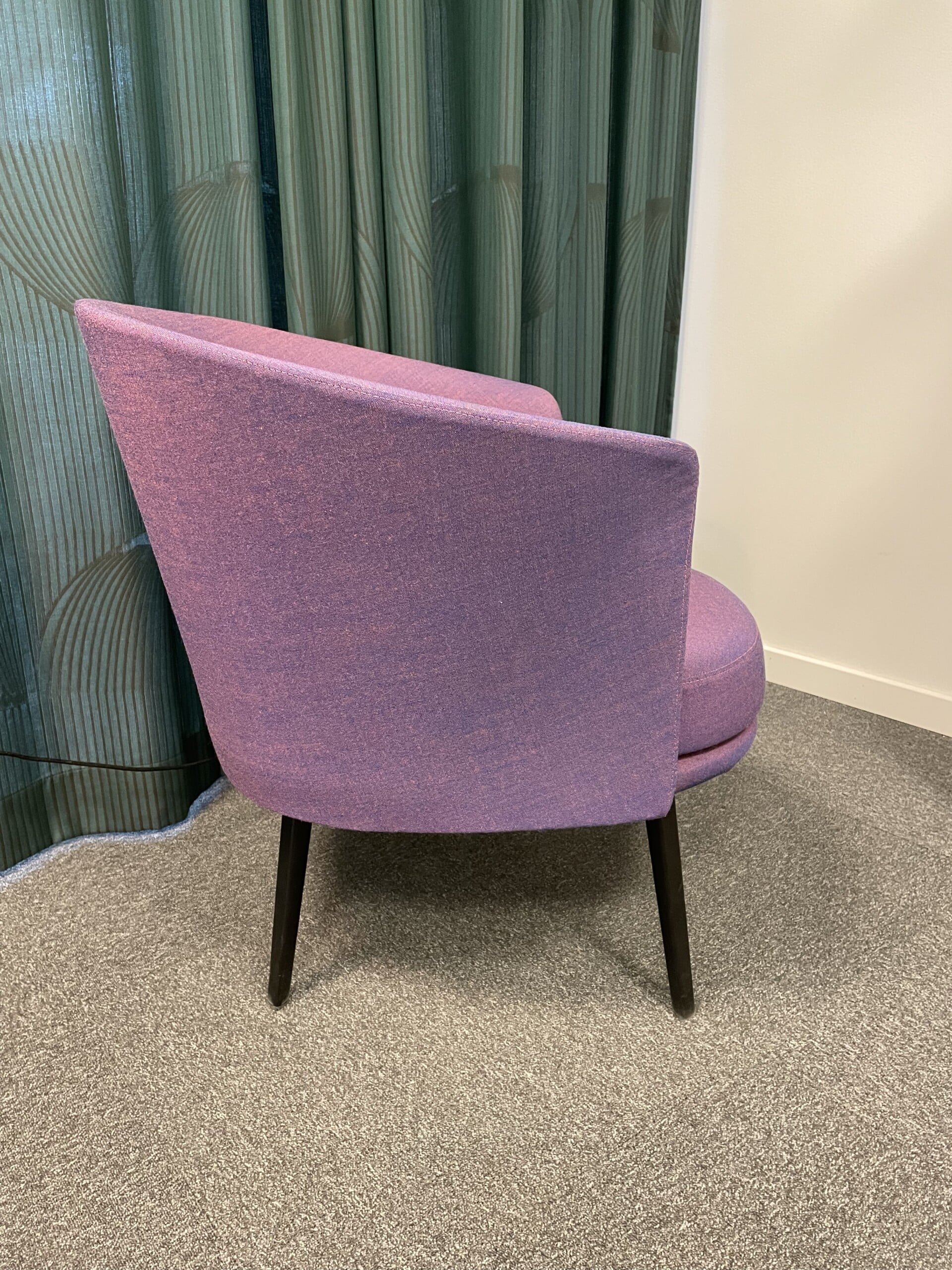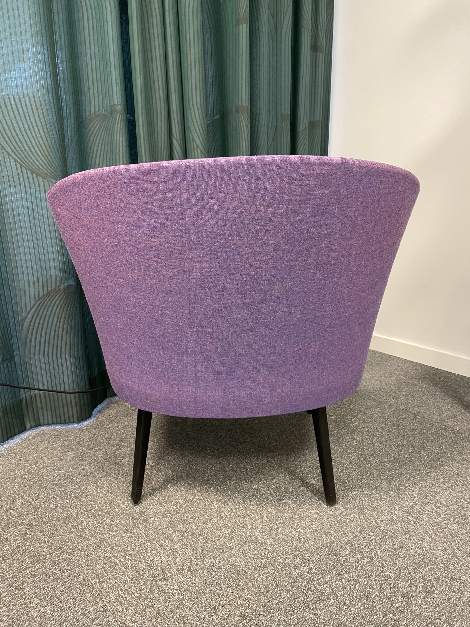 Seat and backrest in fabric (purple). Legs in metal (black).
