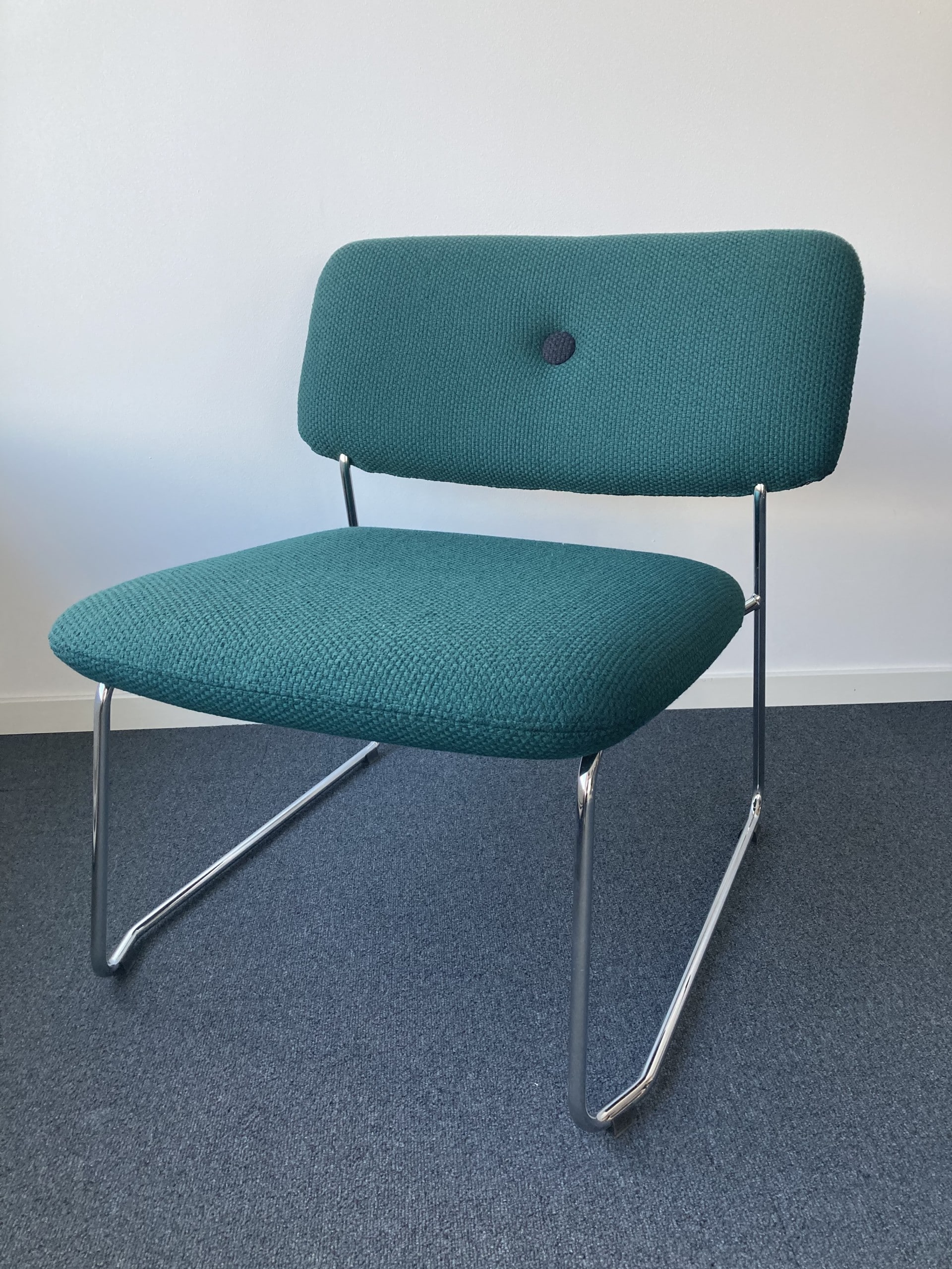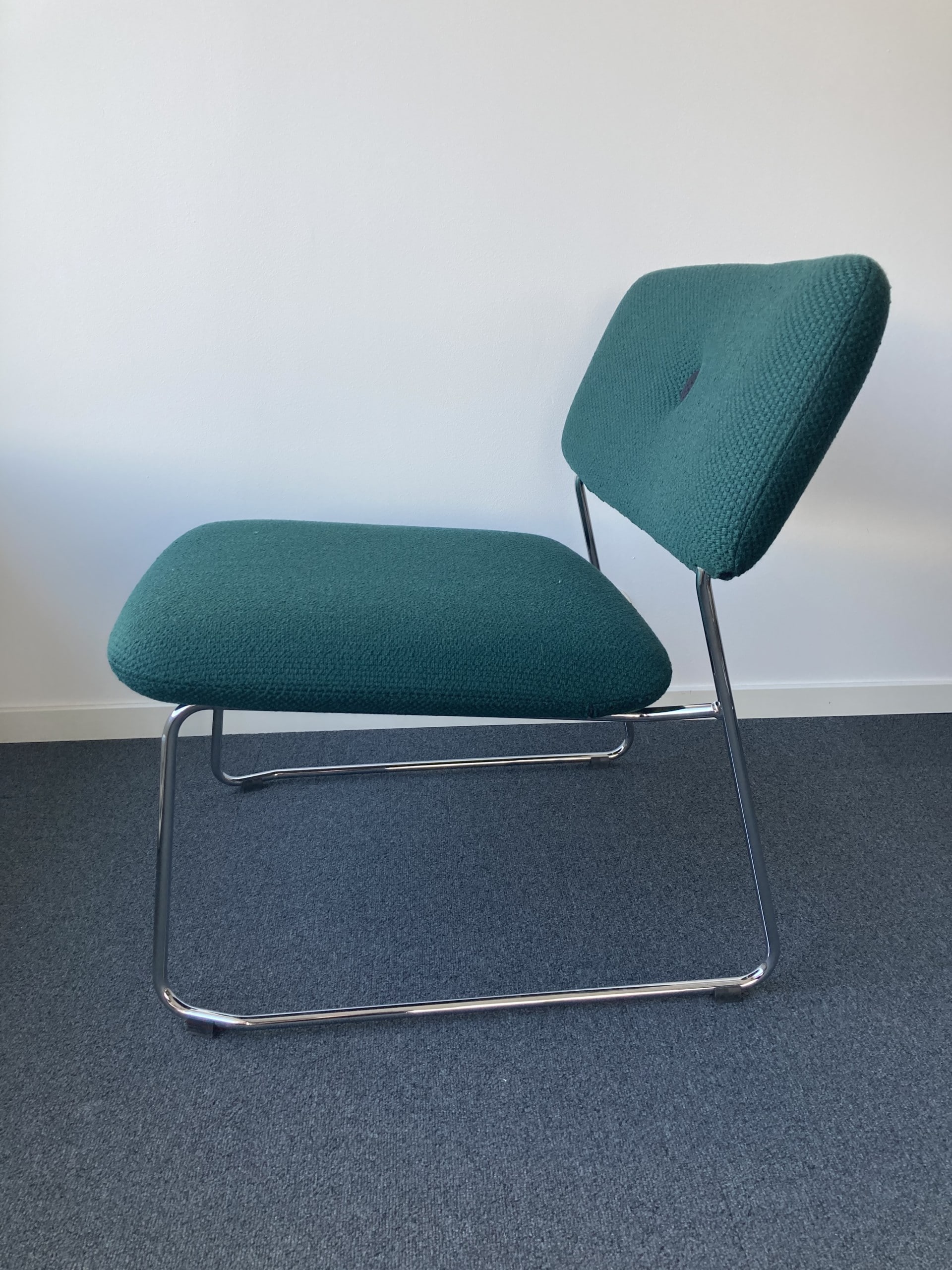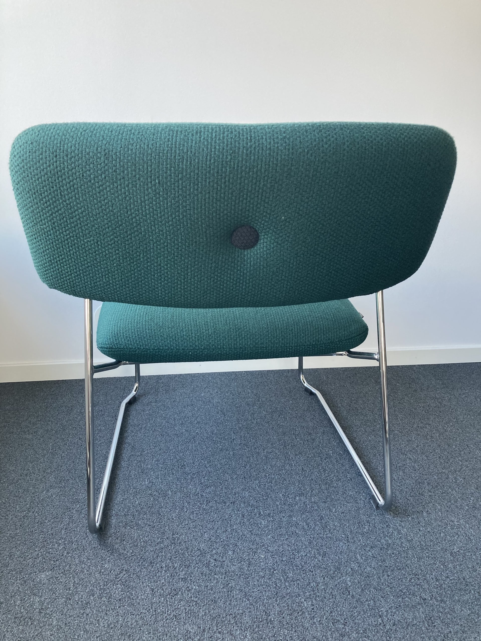 Seat and backrest in fabric (green). Sledgebase in metal (chrome).
