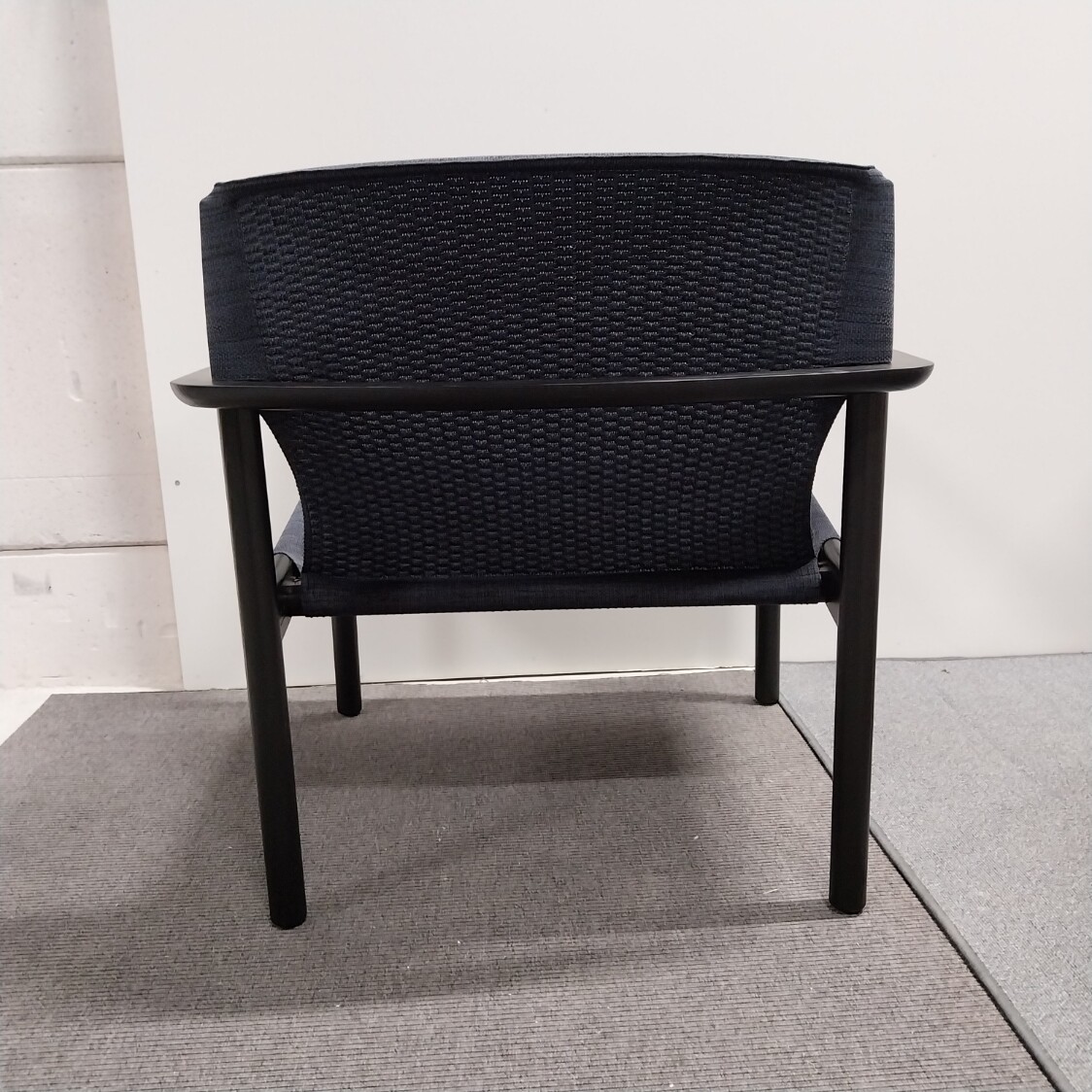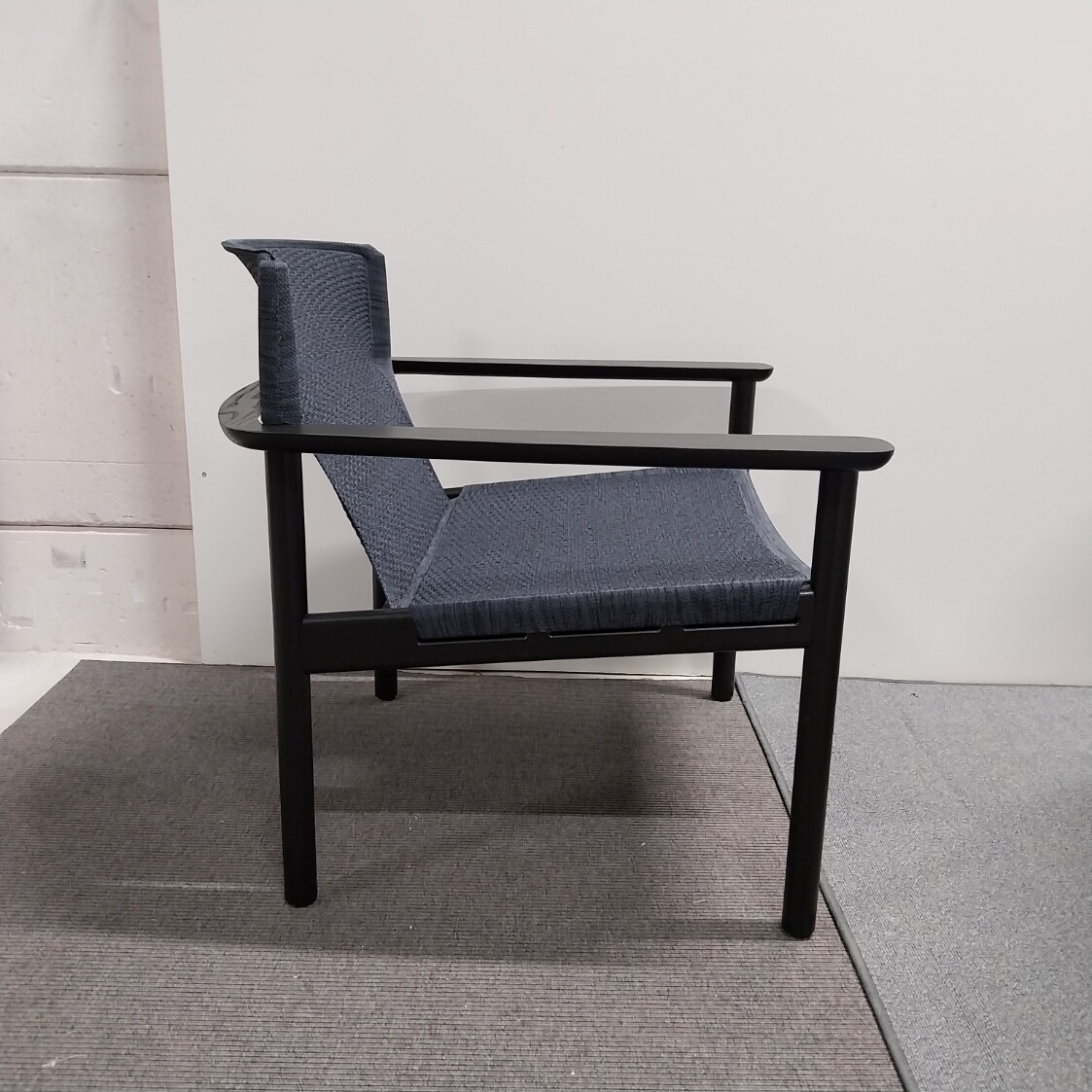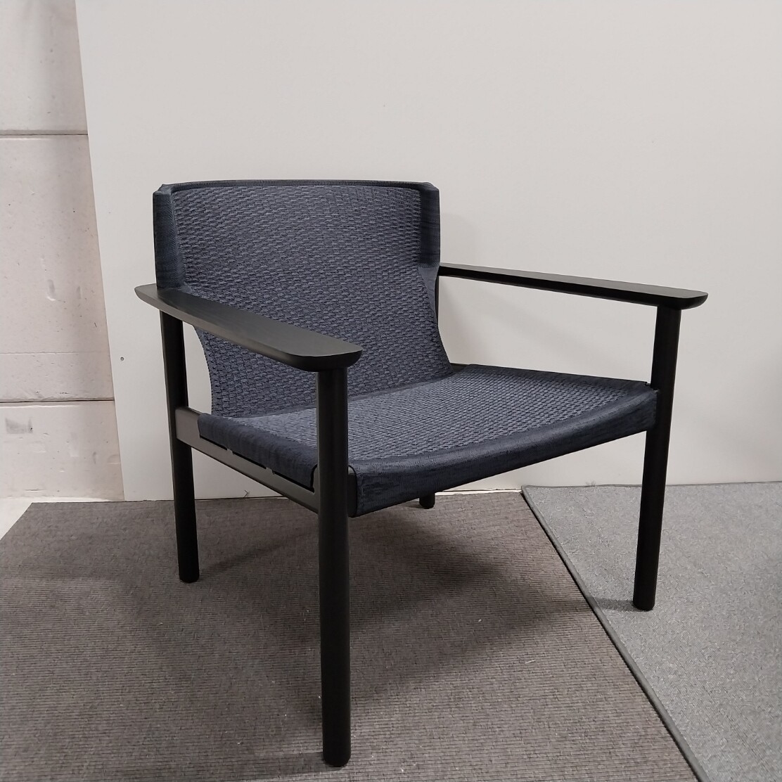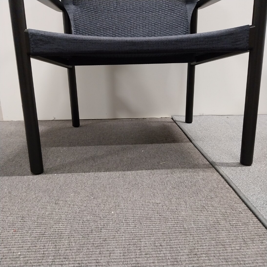 Seat and backrest in fabric (blue). Legs in wood (black).