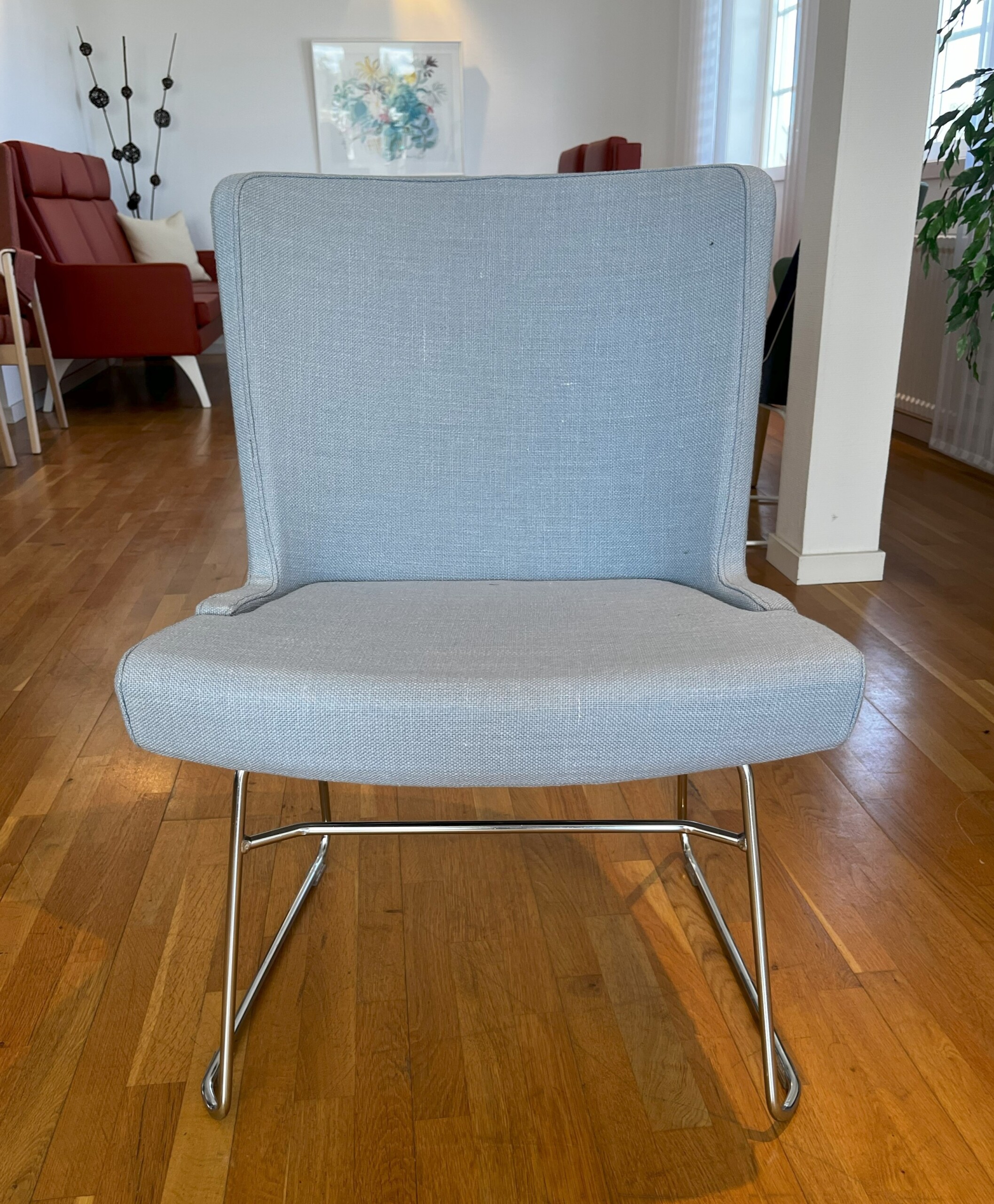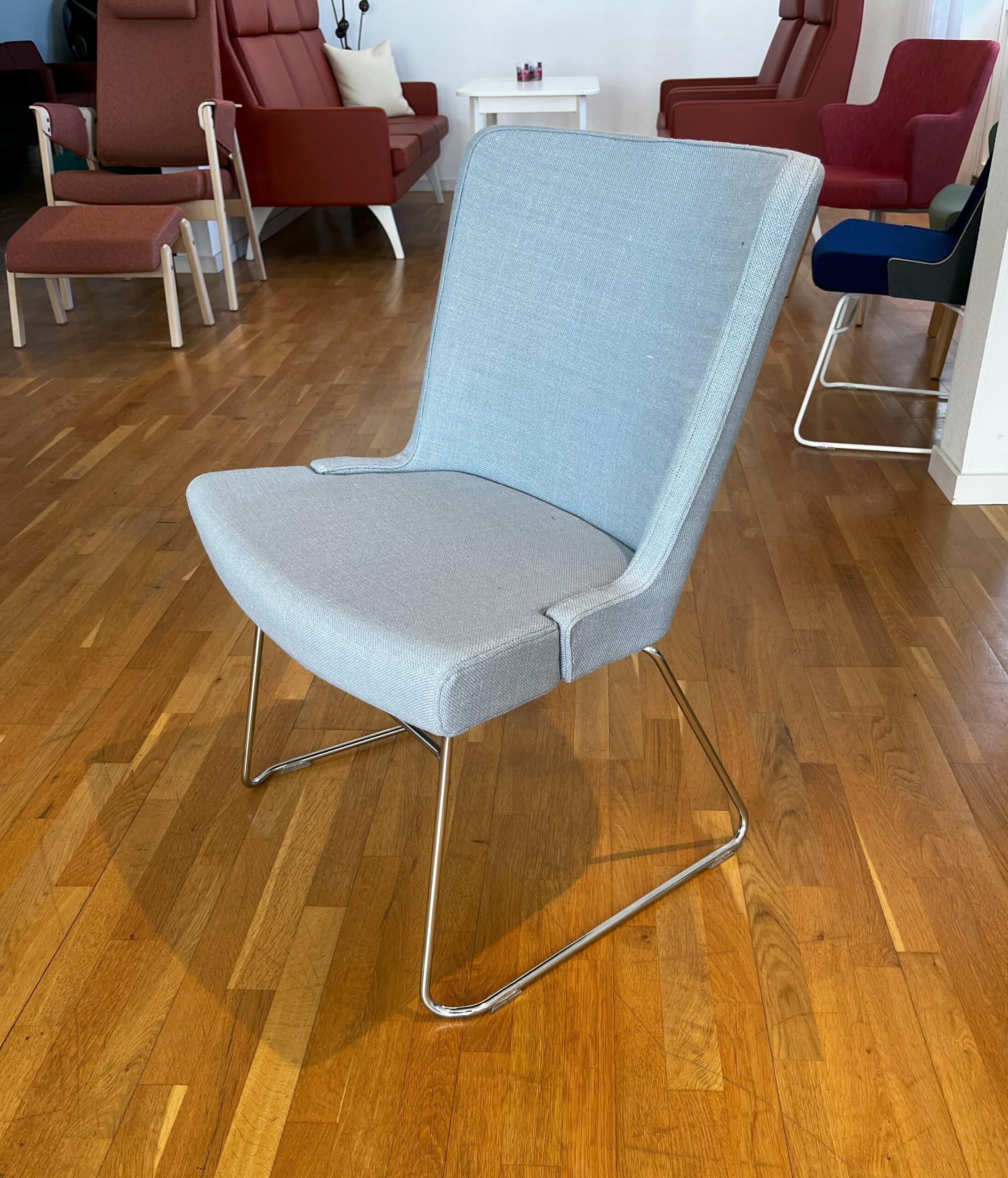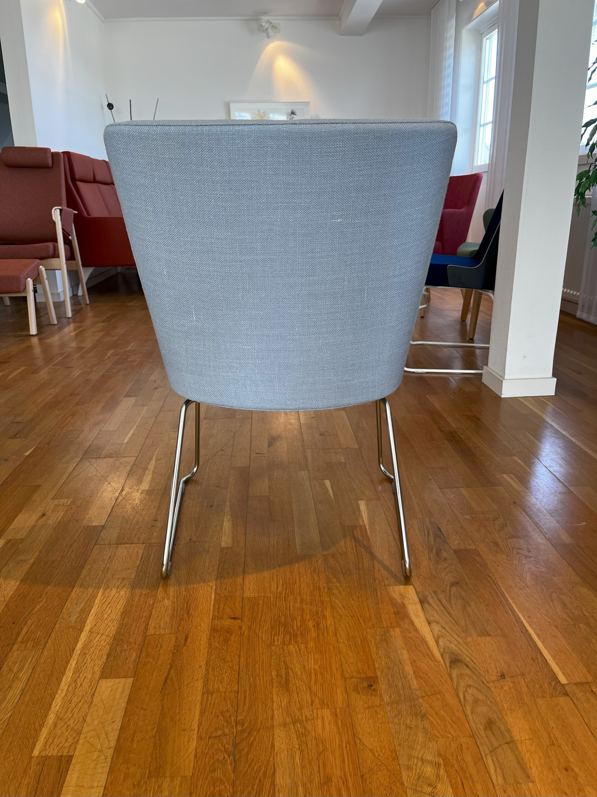 Seat and backrest in fabric (blue). Sledgebase in metal (chrome).