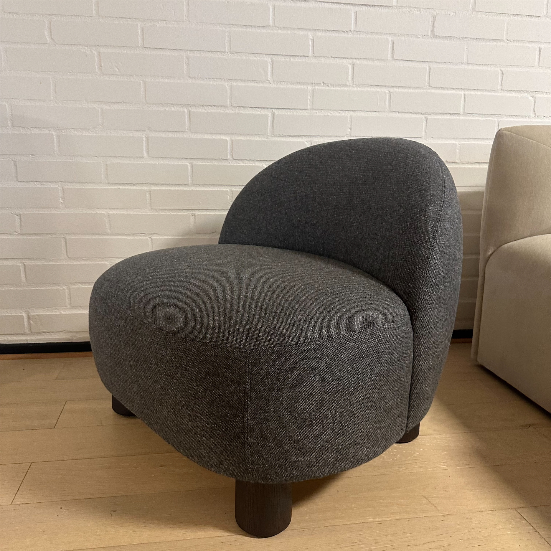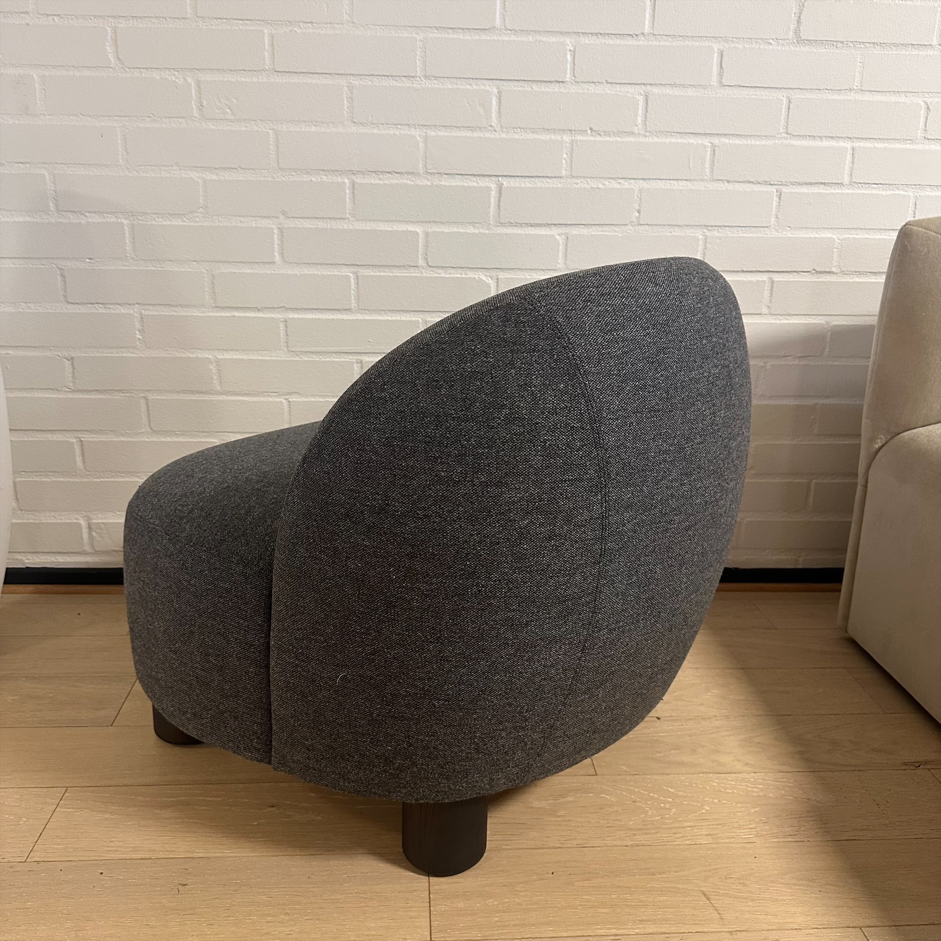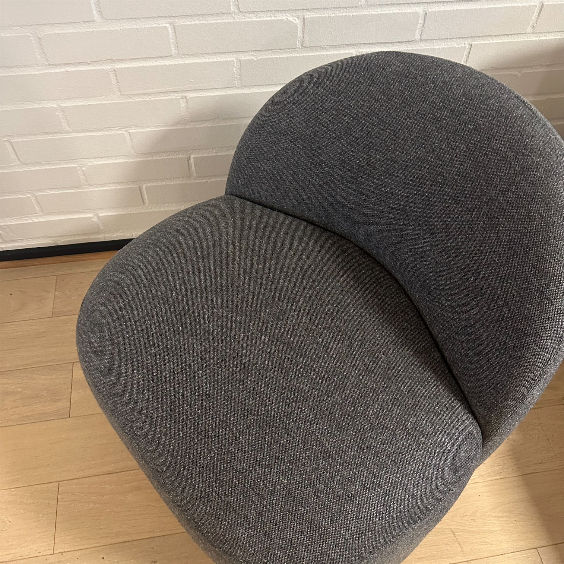 Seat and backrest in fabric (grey). Legs in wood (oak).
