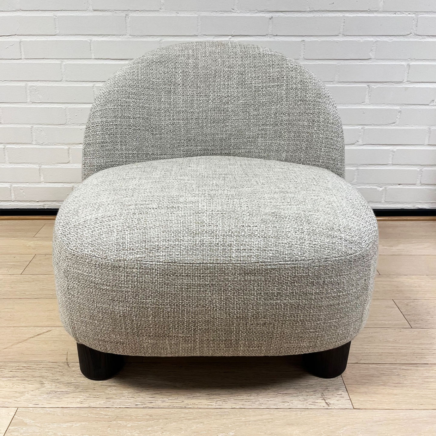Seat and backrest in fabric (grey). Legs in wood (black).