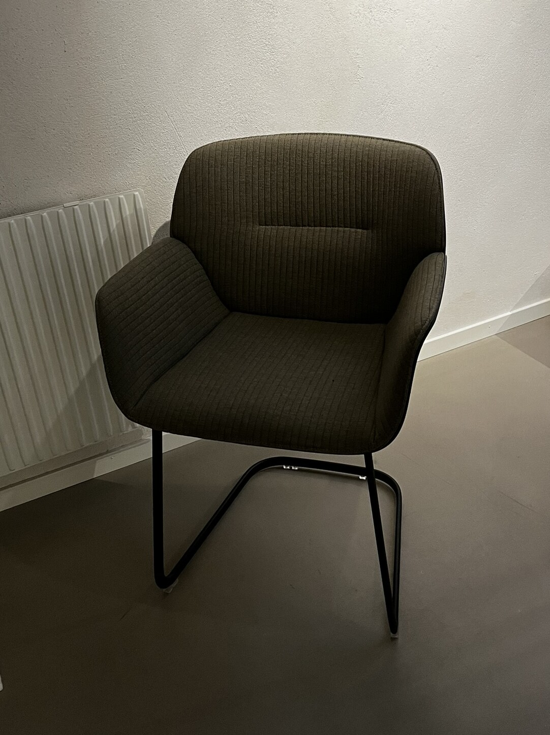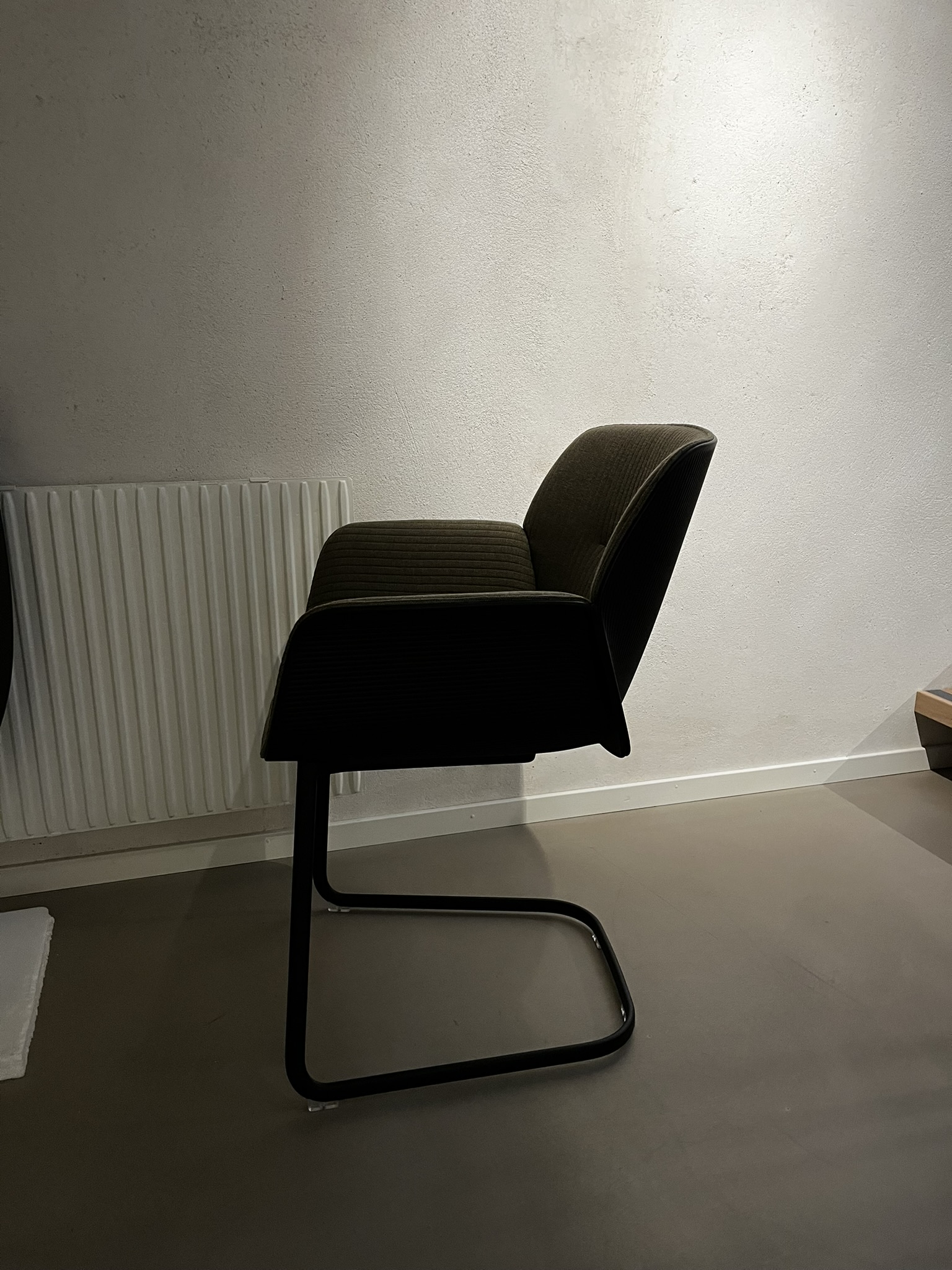 Seat and backrest in fabric (green). Sledgebase in metal (black).