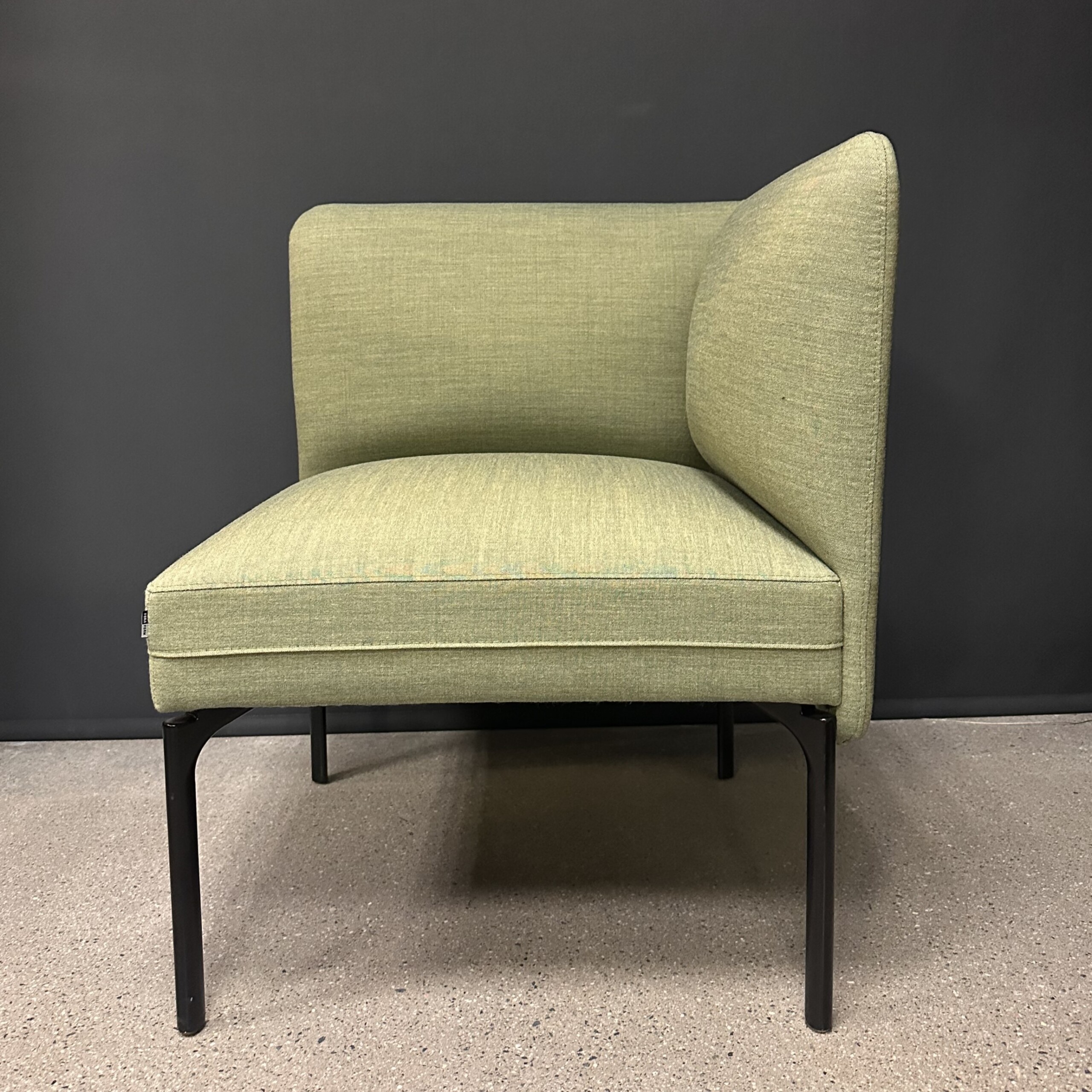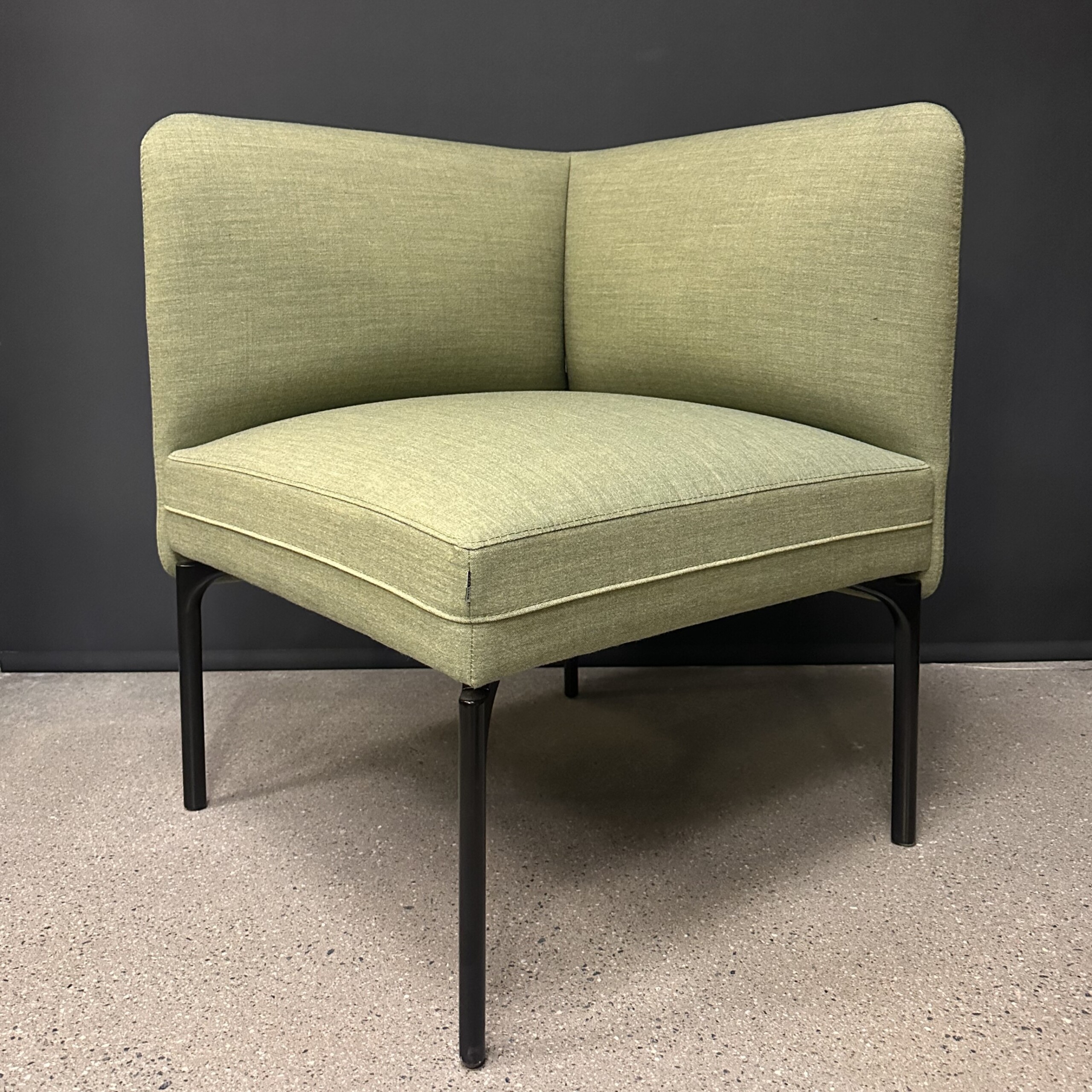 Seat and backrest in fabric (green). Legs in metal (black).