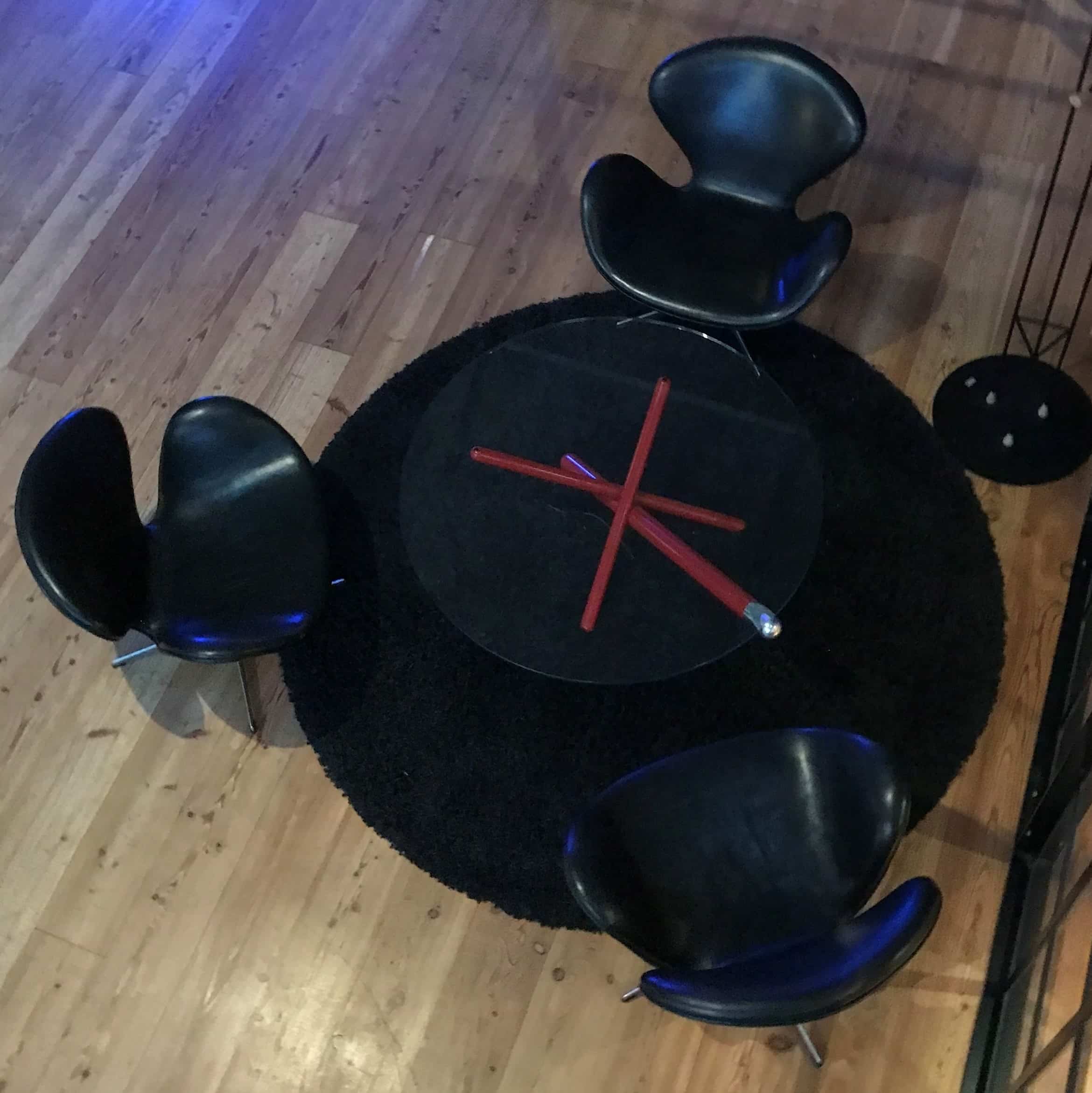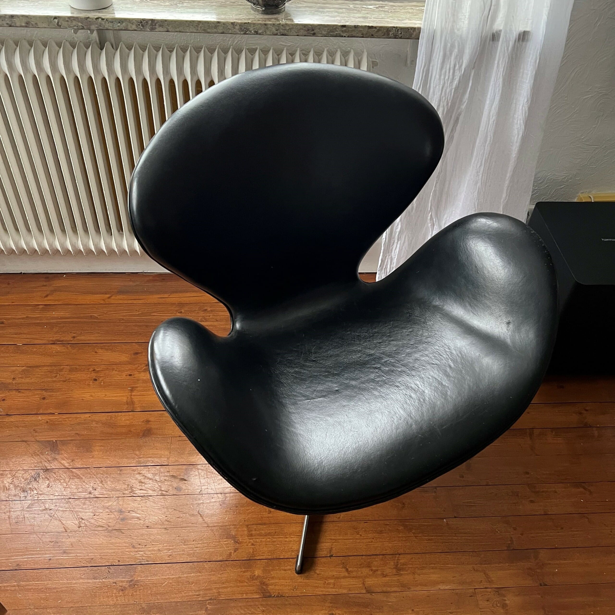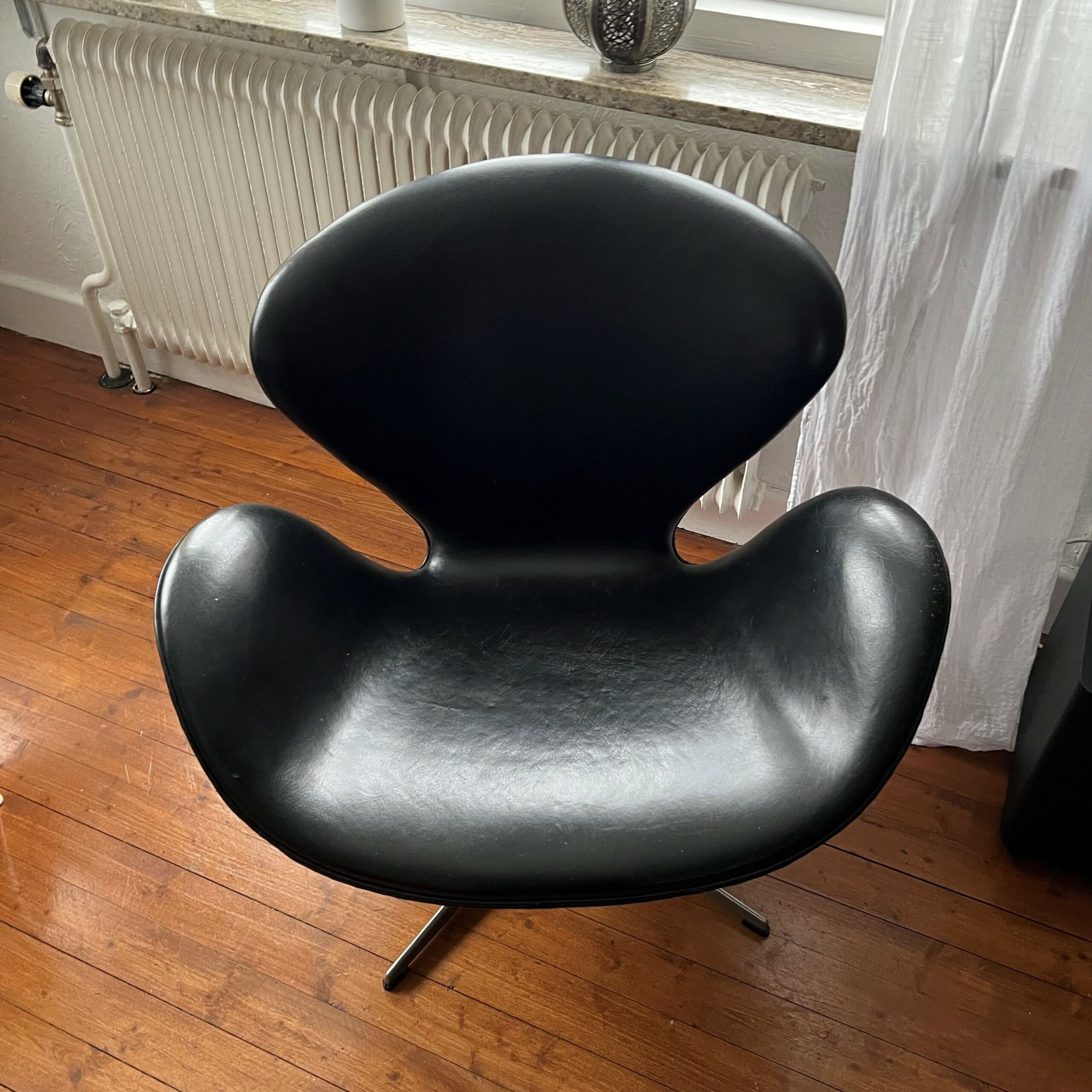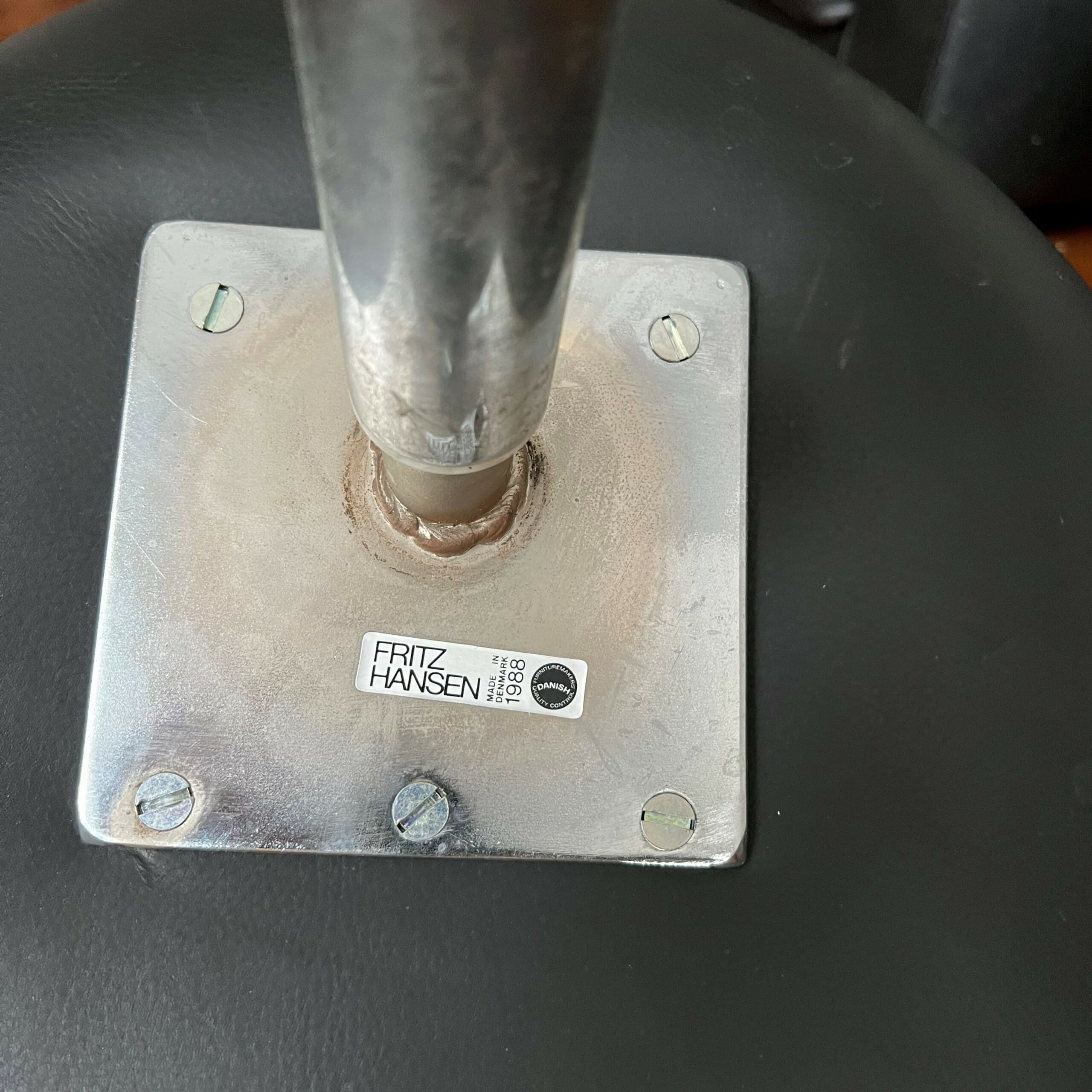 Seat and backrest in leather (black). Star base in metal (stainless).