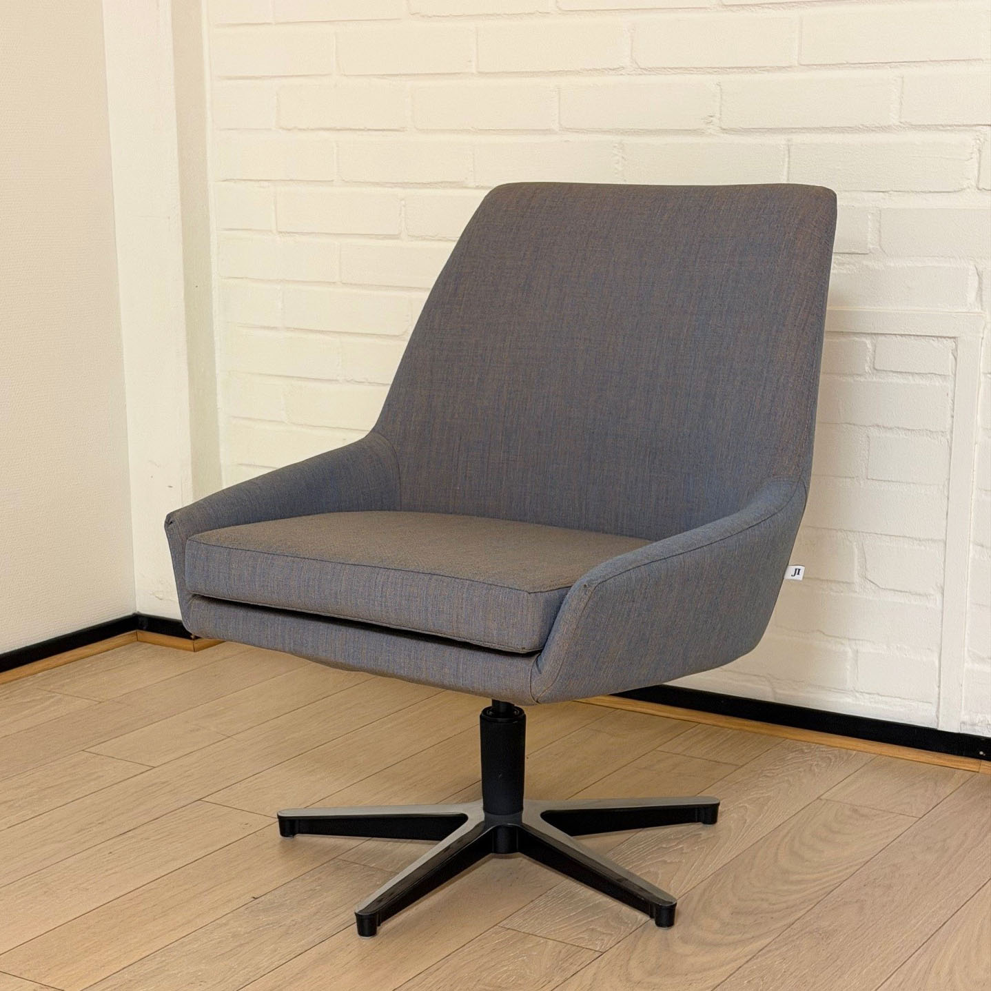 Seat and backrest in fabric (grey). Star base in metal (black).