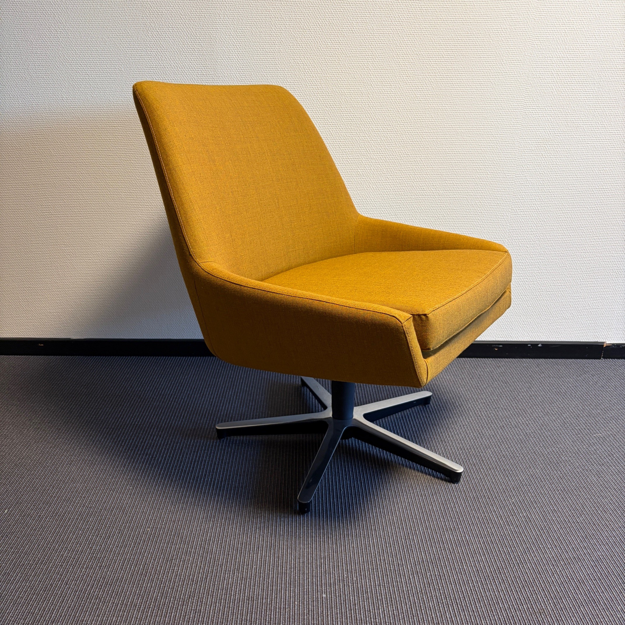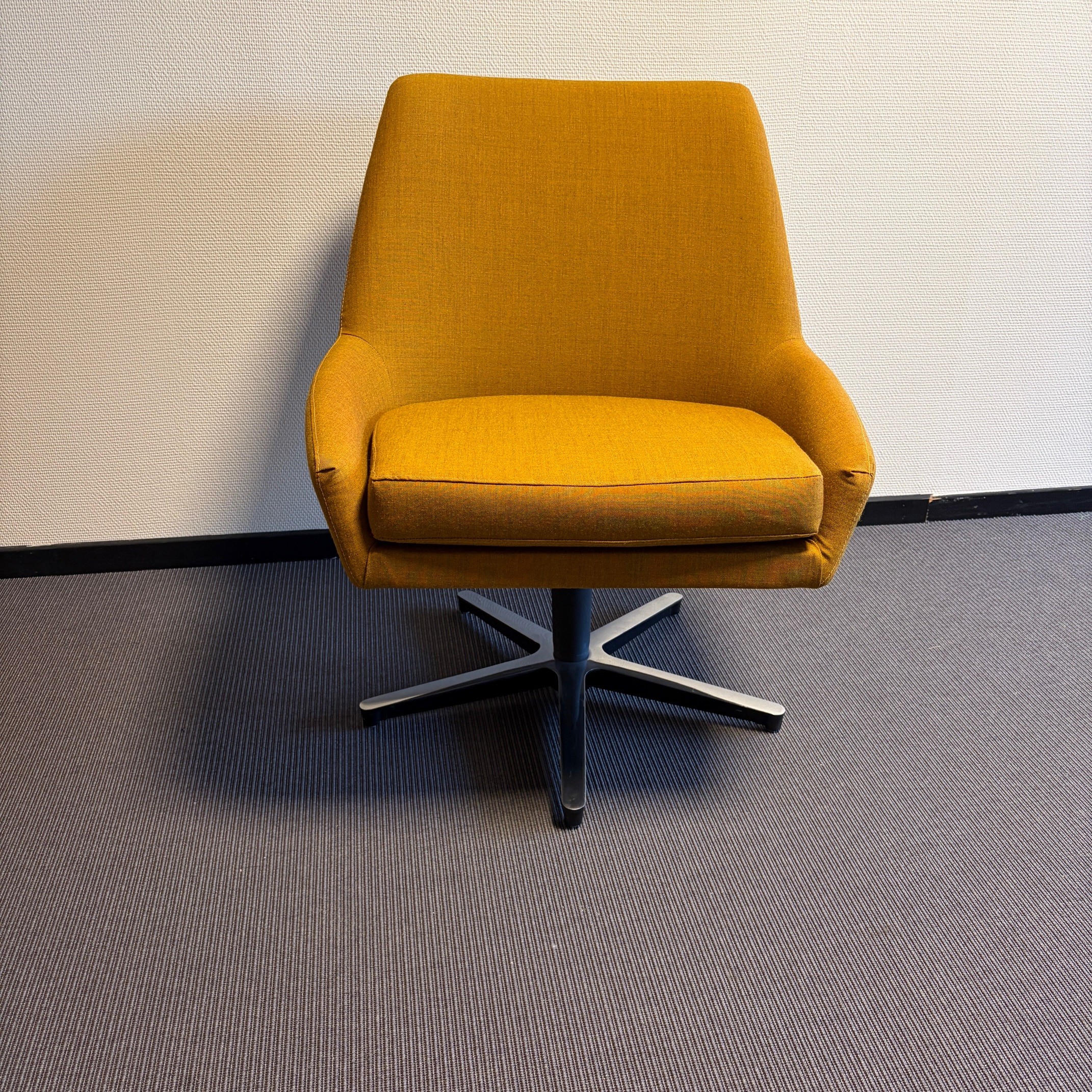 Seat and backrest in fabric (orange). Star base in metal (silver).