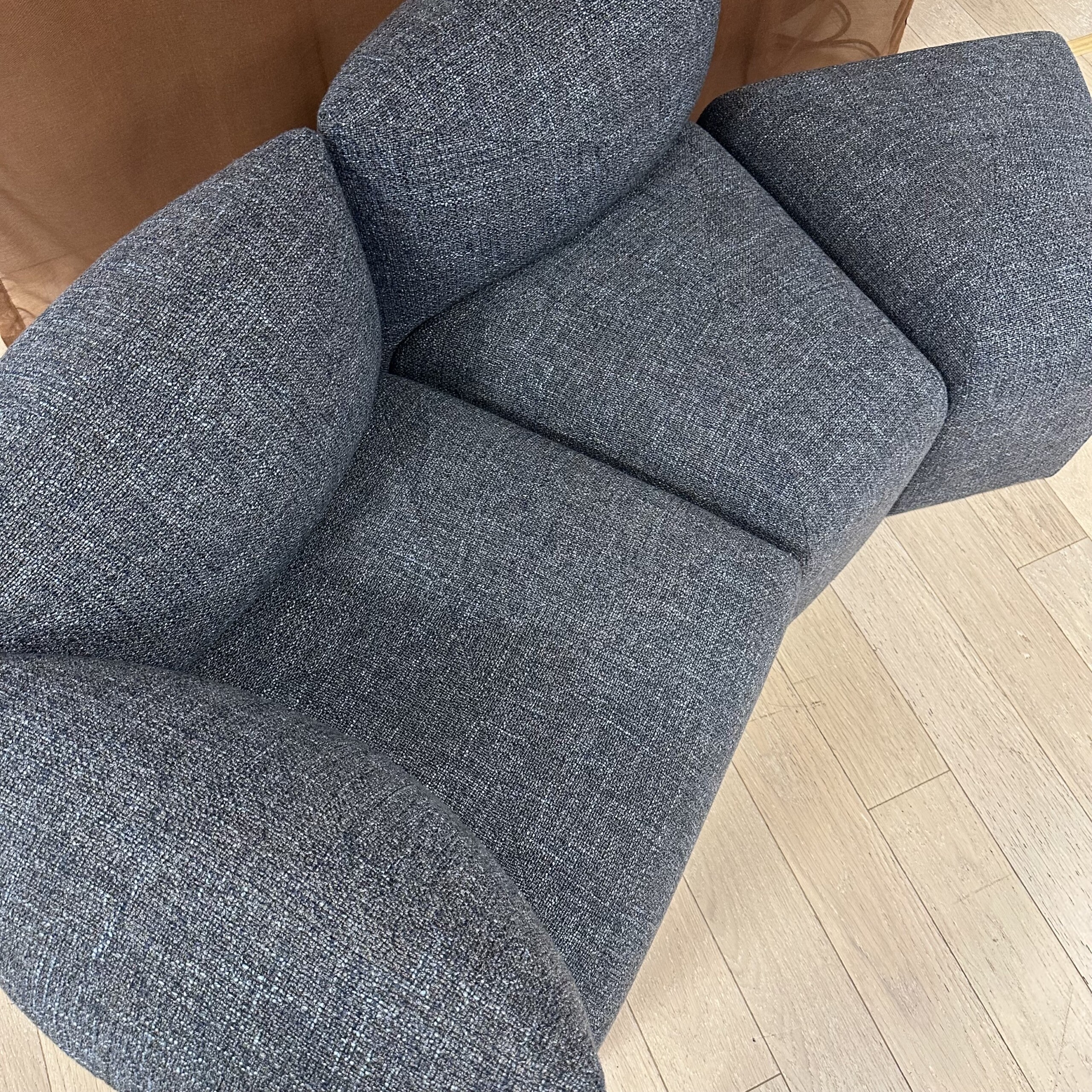 Seat and backrest in fabric (blue). Legs in plastic (black).