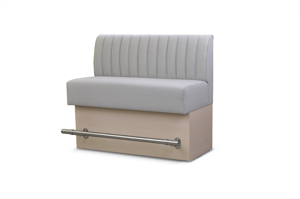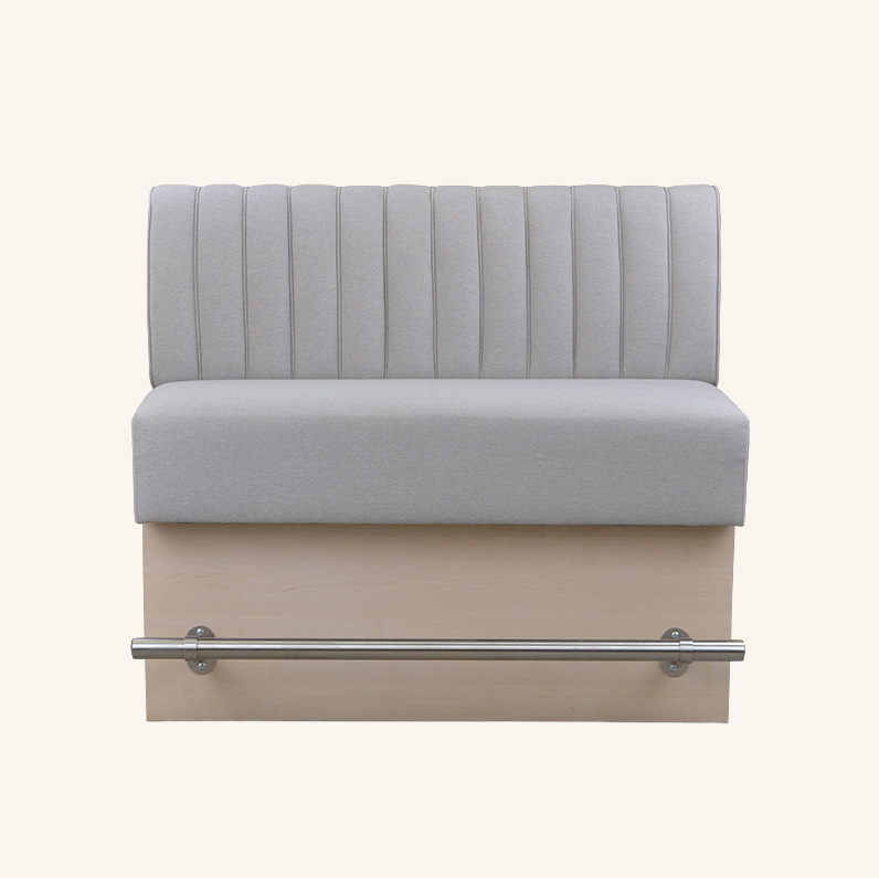 Seat and backrest in fabric (grey). Plinth in wood (birch).