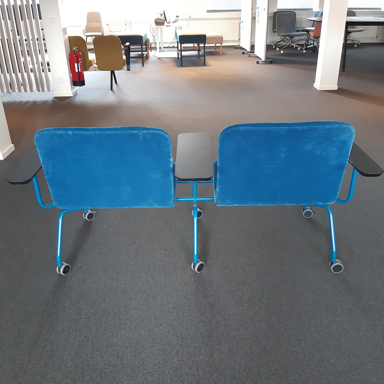 Seat and backrest in fabric (blue). Legs in metal (blue).