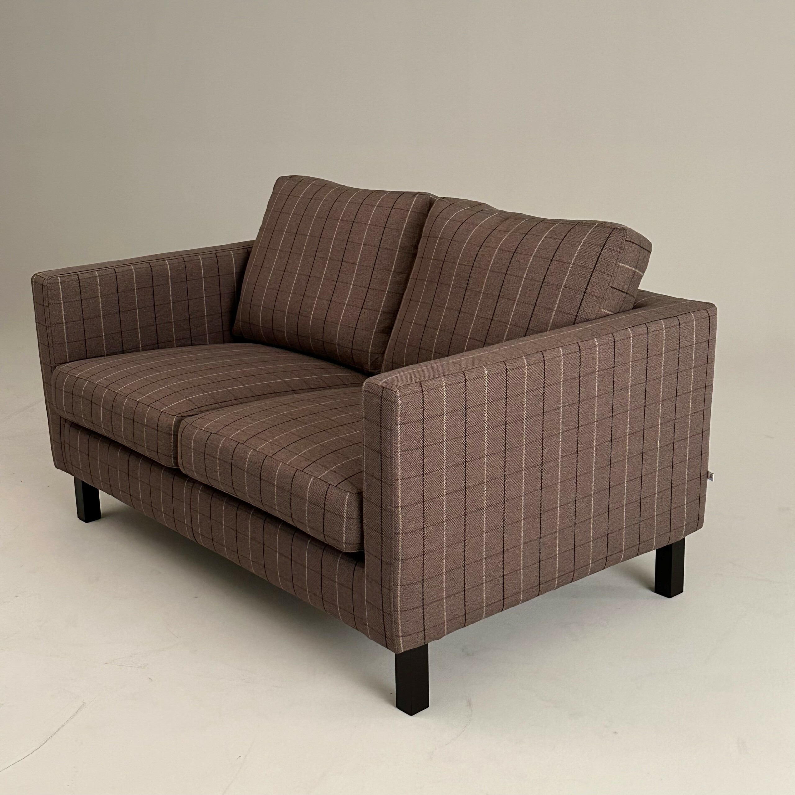 Seat and backrest in fabric (brown). Legs in wood (brown).