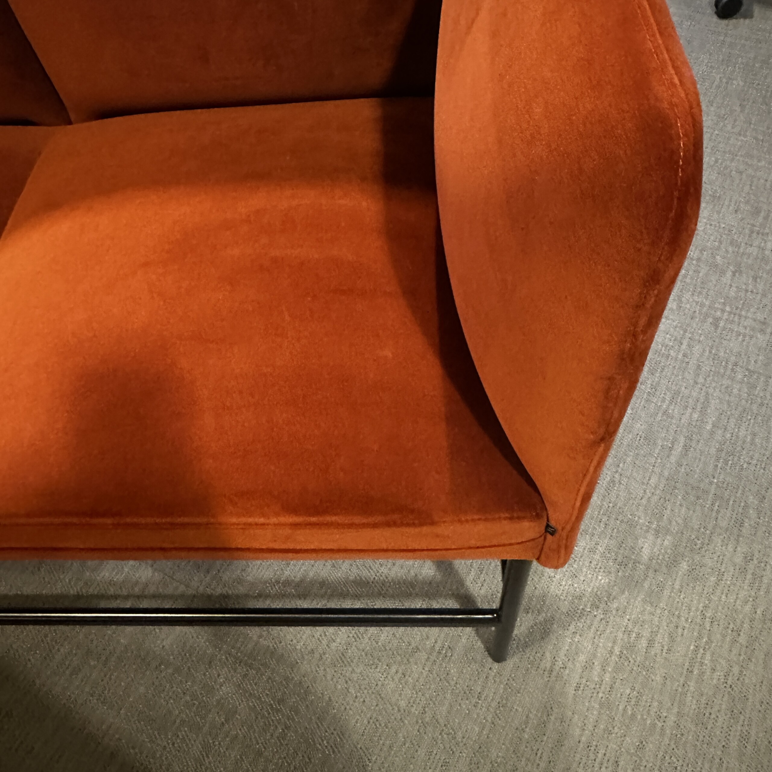 Seat and backrest in fabric (orange). Legs in metal (black).