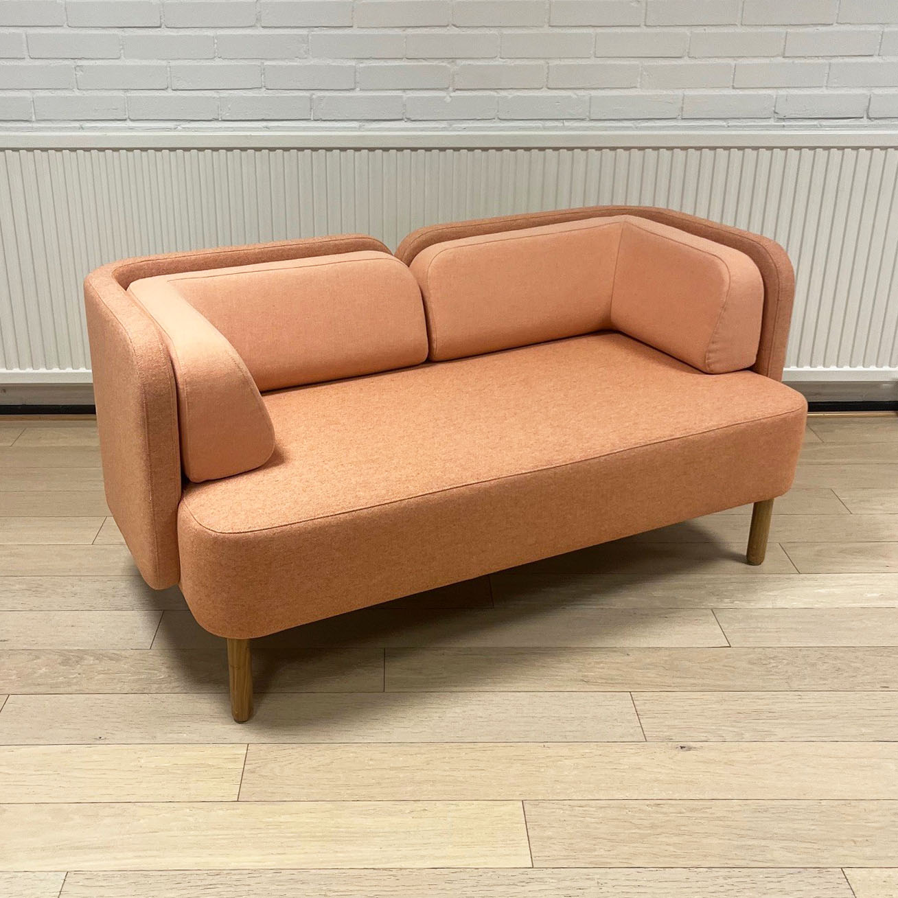 Seat and backrest in fabric (pink). Legs in wood (oak).