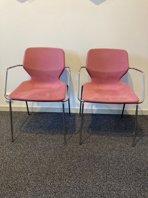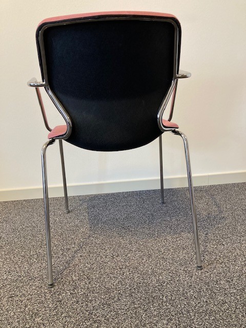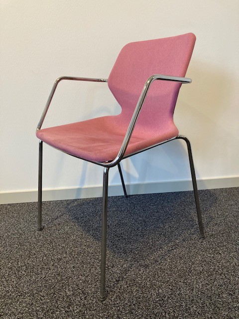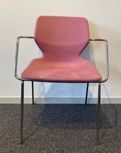 Seat and backrest in fabric (pink). Legs in metal (chrome).
