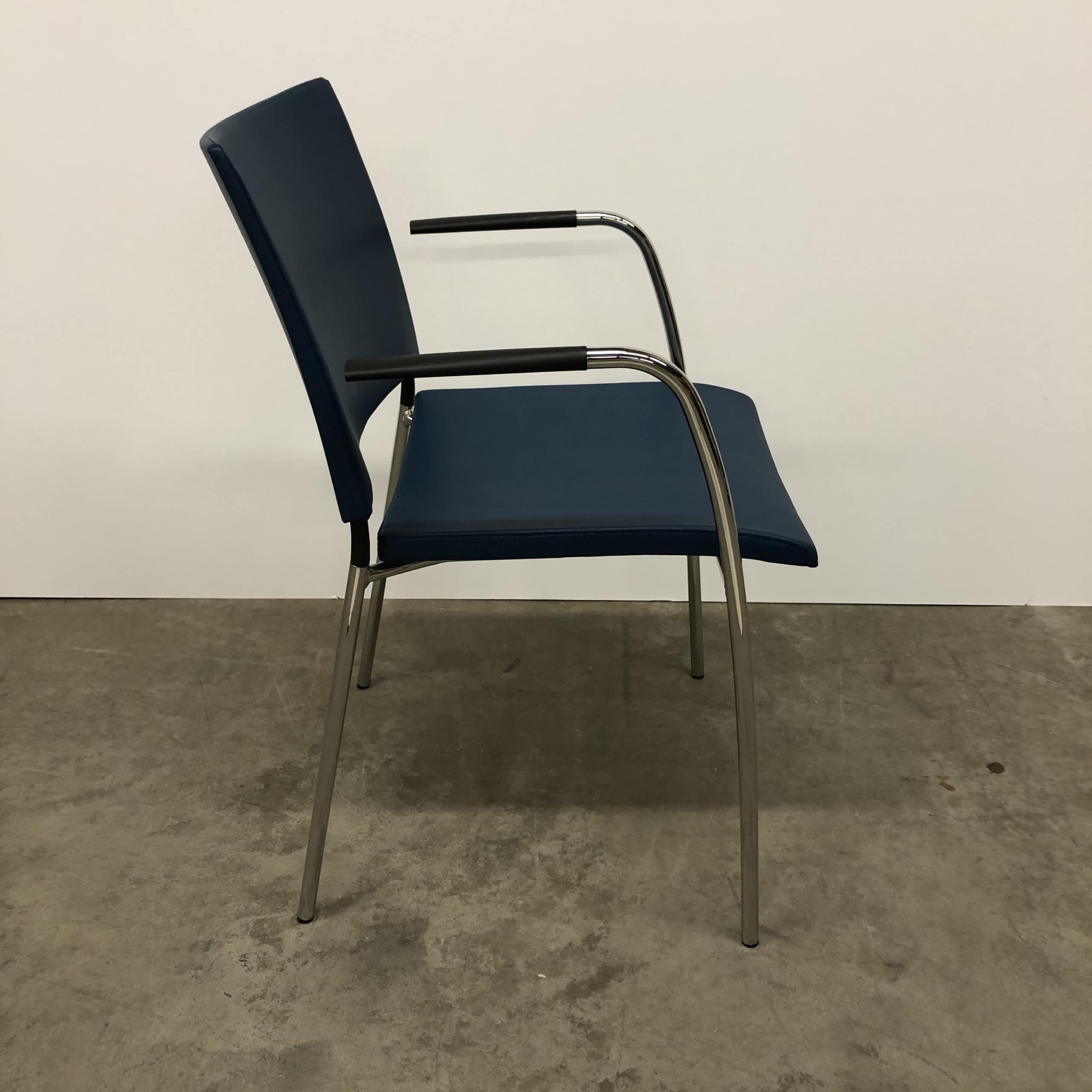 Seat and backrest in artificial leather (blue). Legs in metal (chrome).