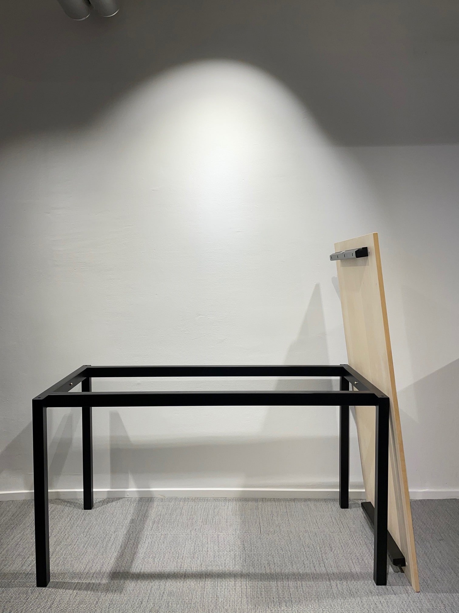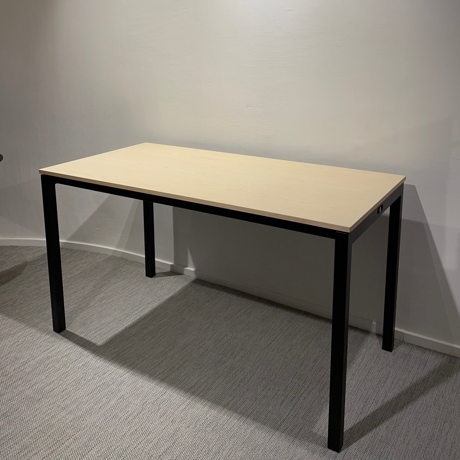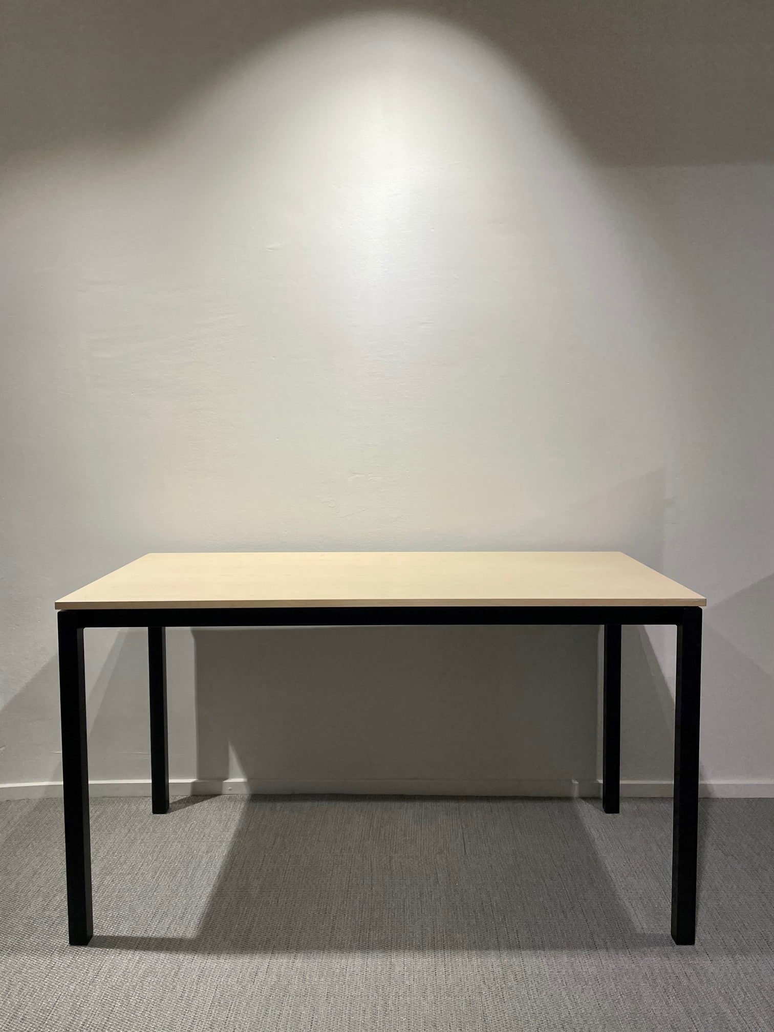 Table top in wood (birch). Base in wood (black).