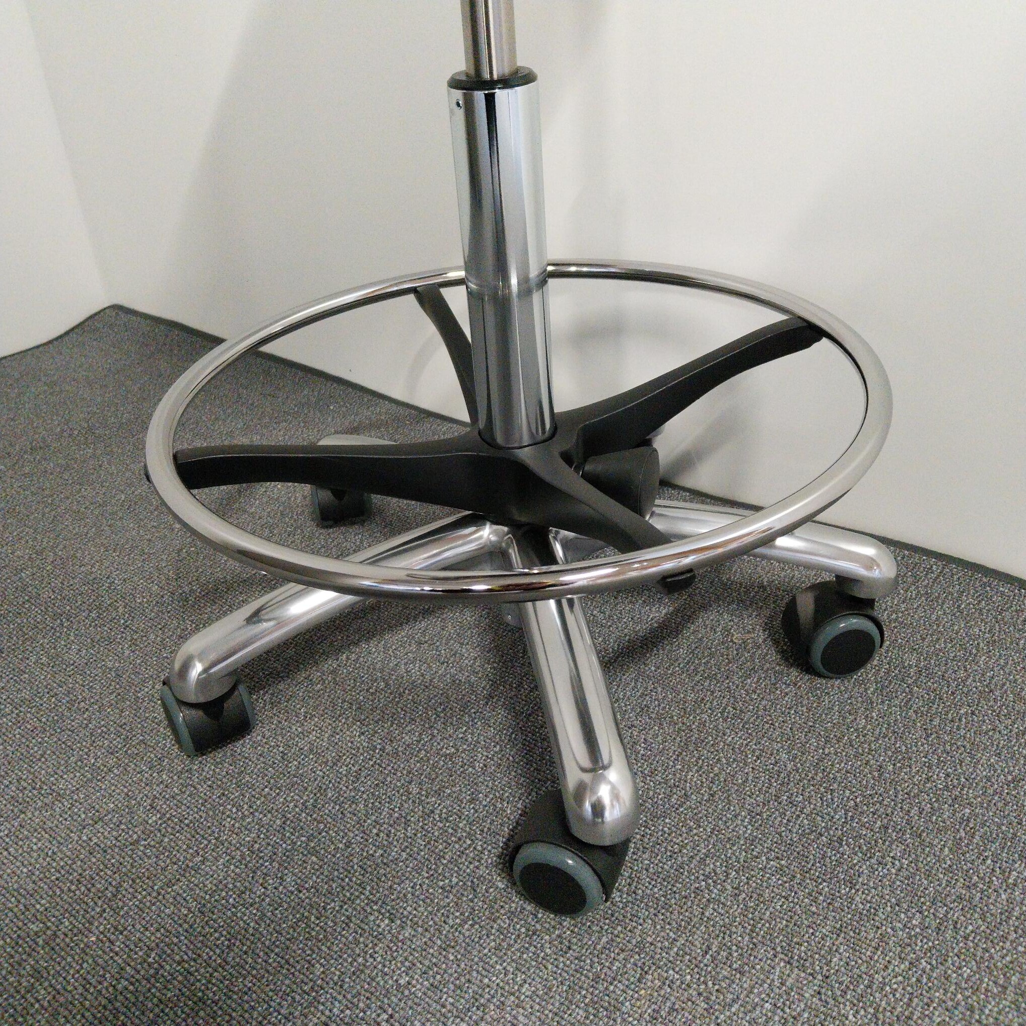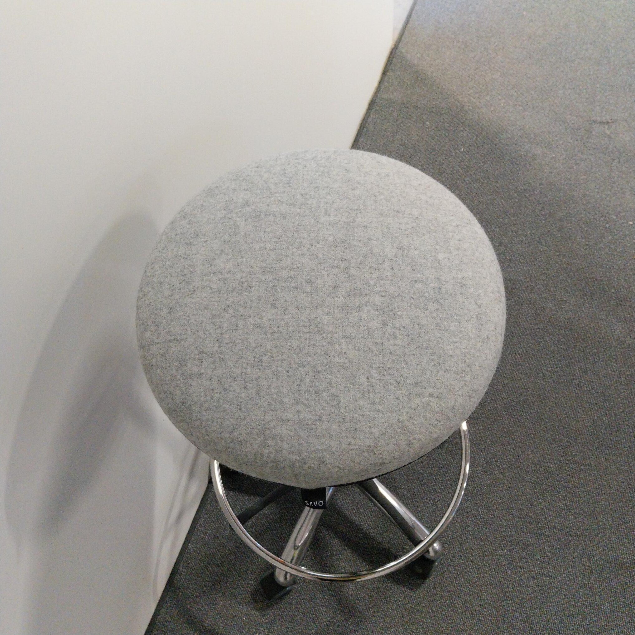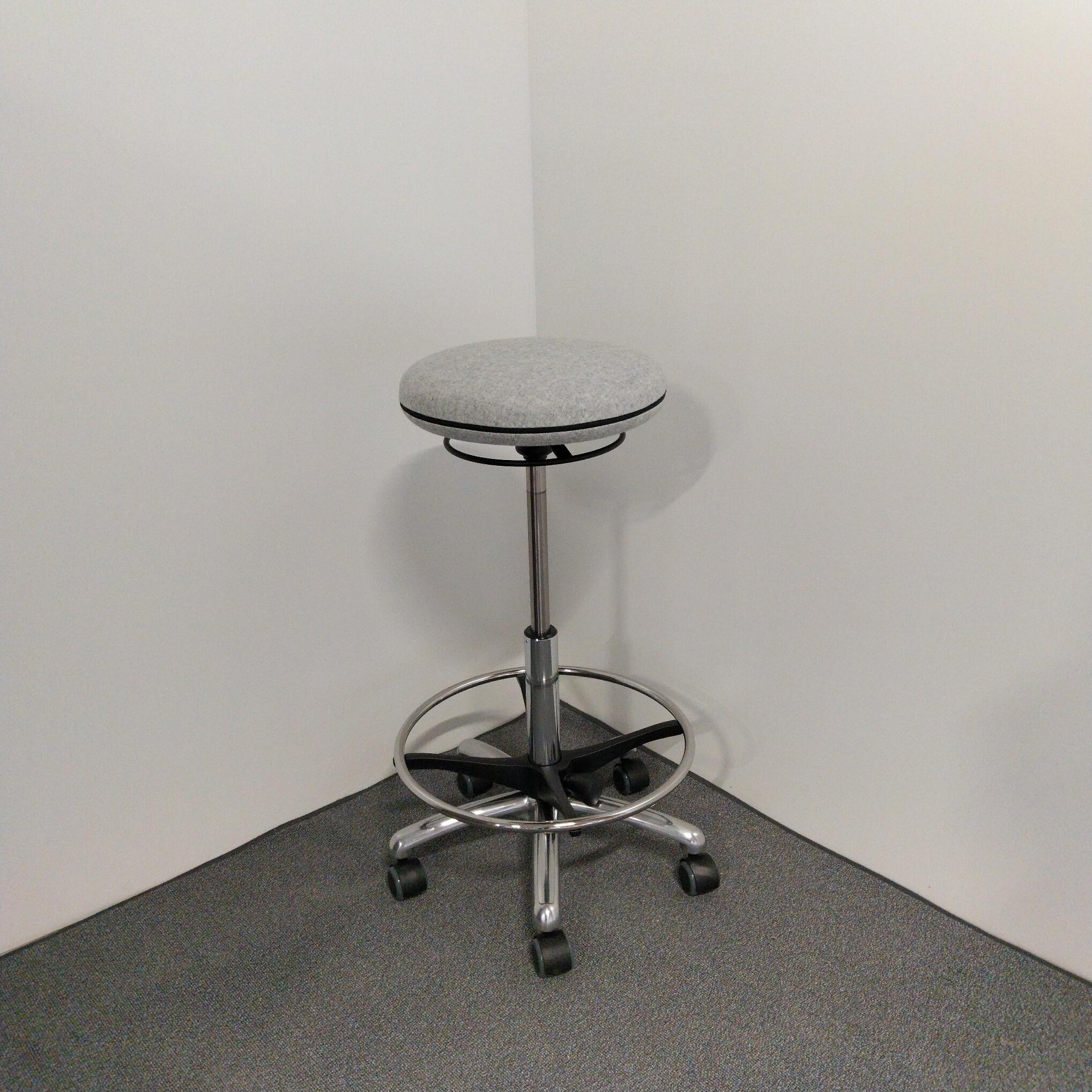 Seat in fabric (grey). Star base in metal (aluminium). Adjustable height.