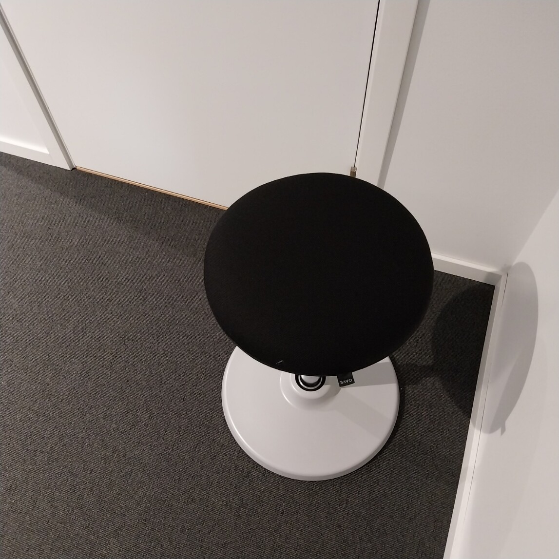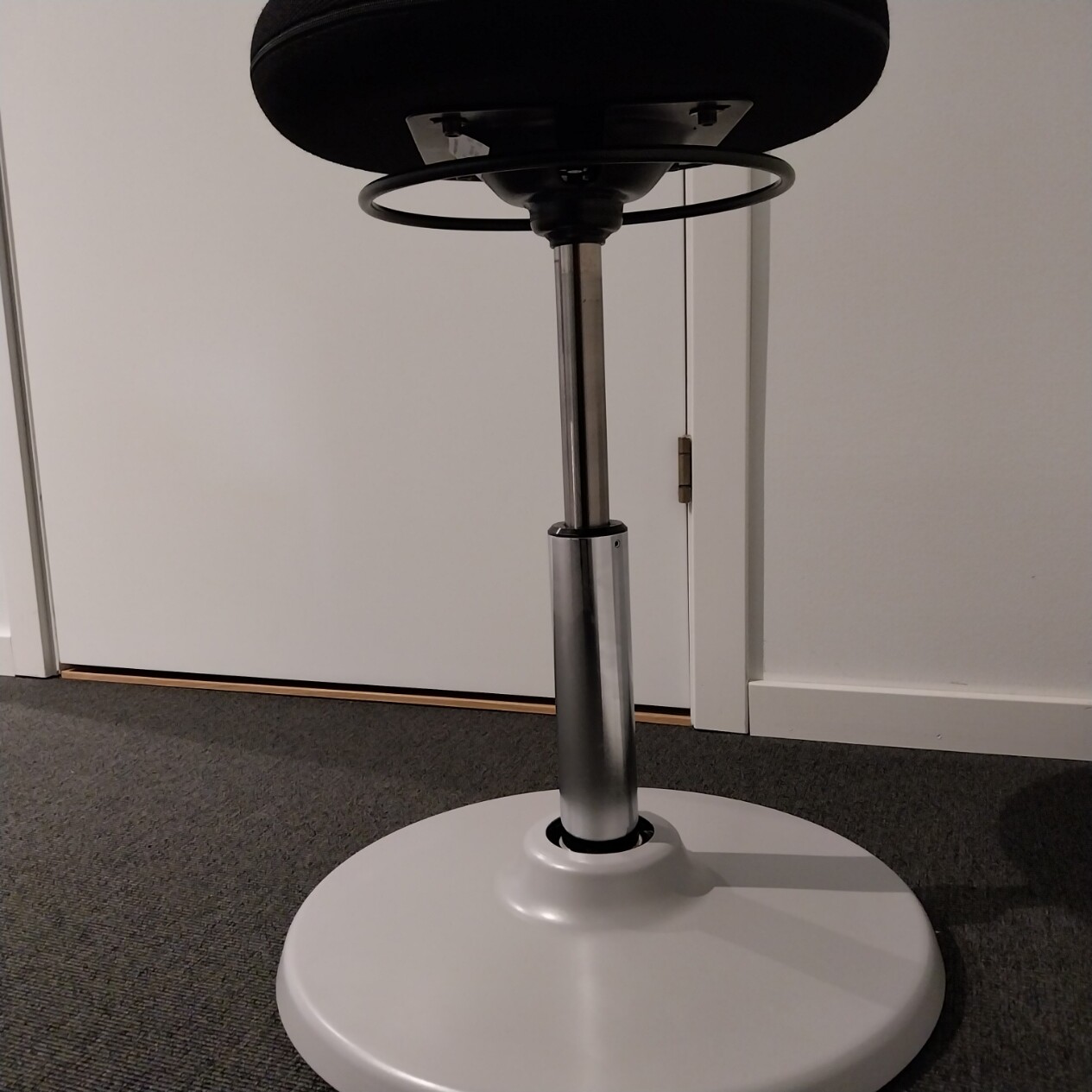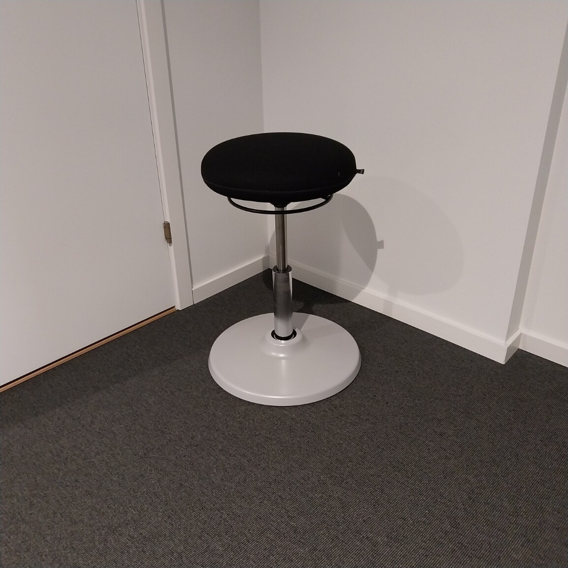Seat in fabric (black). Disc base in metal (grey). Adjustable height.