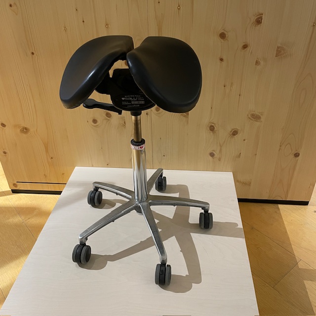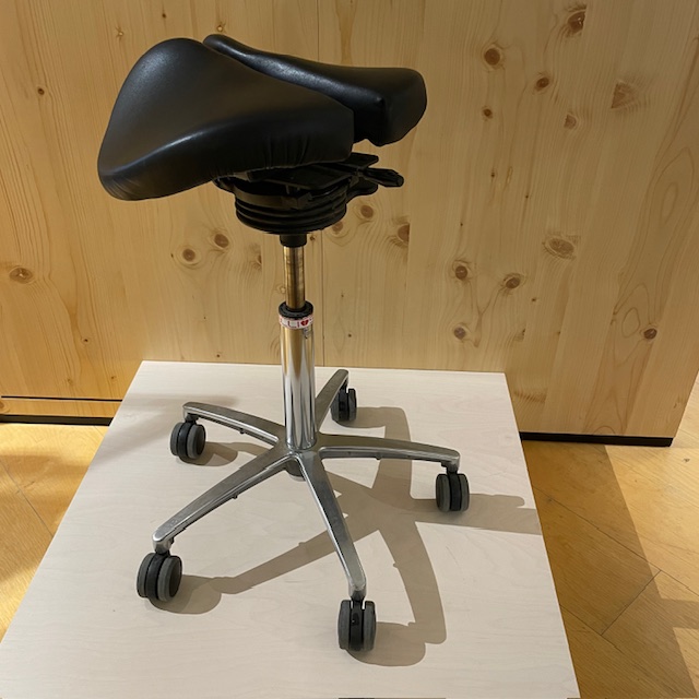 Seat in leather (black). Star base in metal (chrome). Adjustable height.