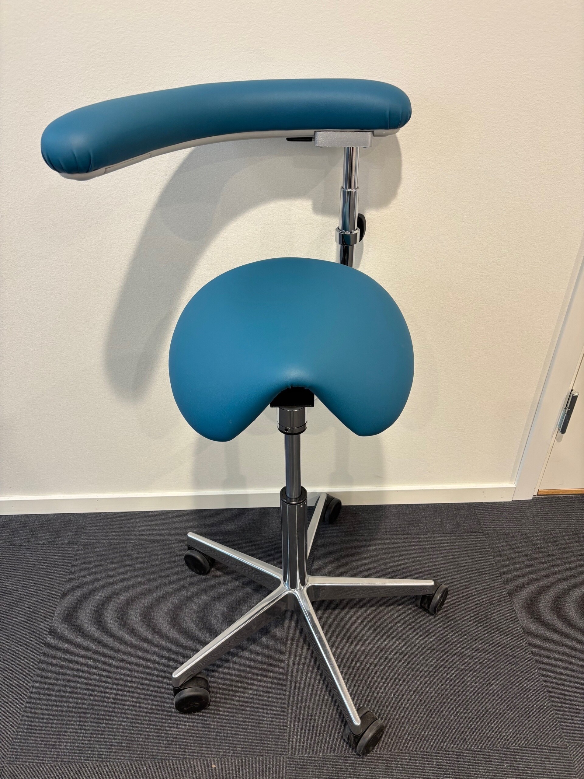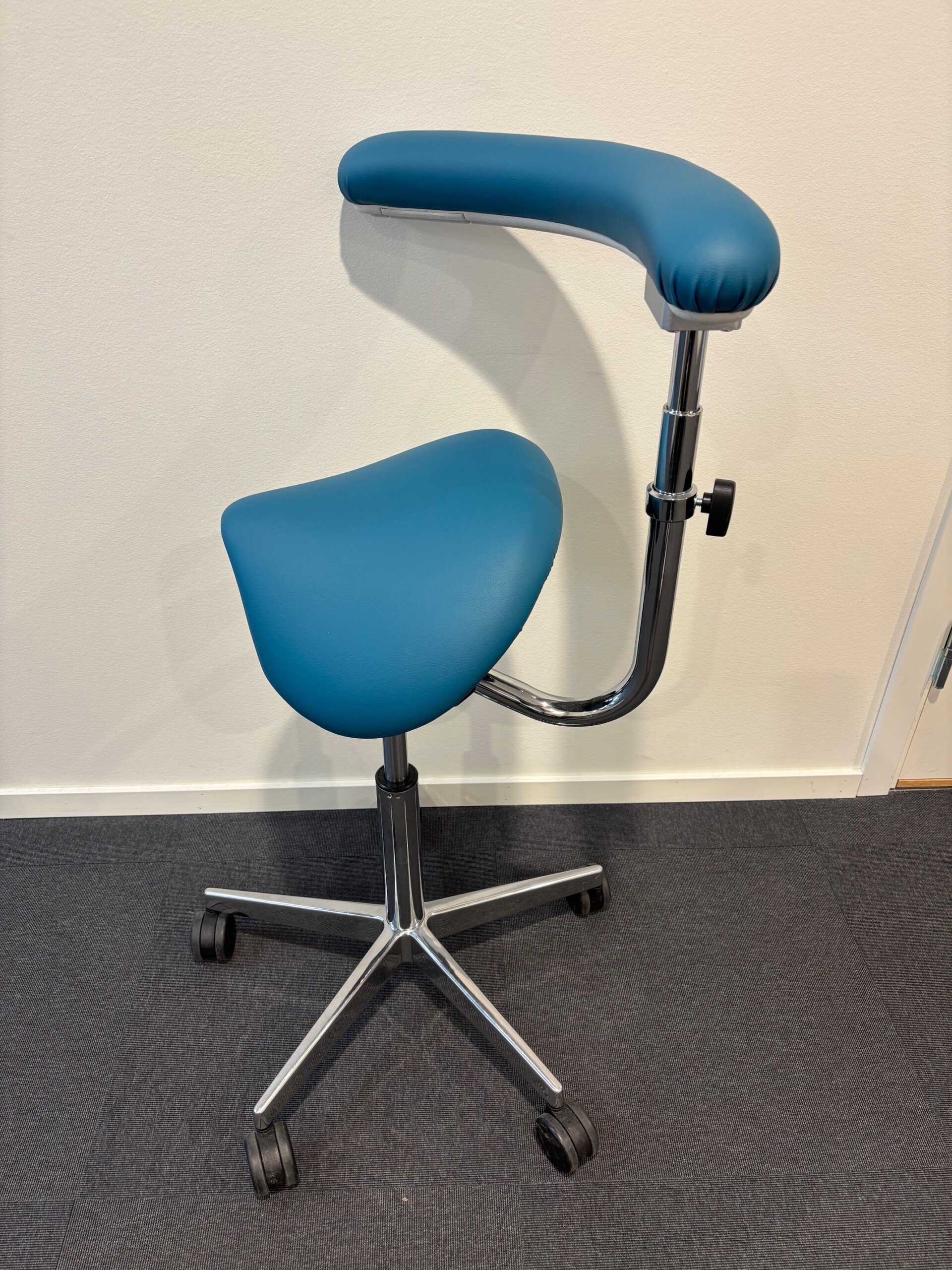 Seat in artificial leather. Star base in metal (chrome). Adjustable height.