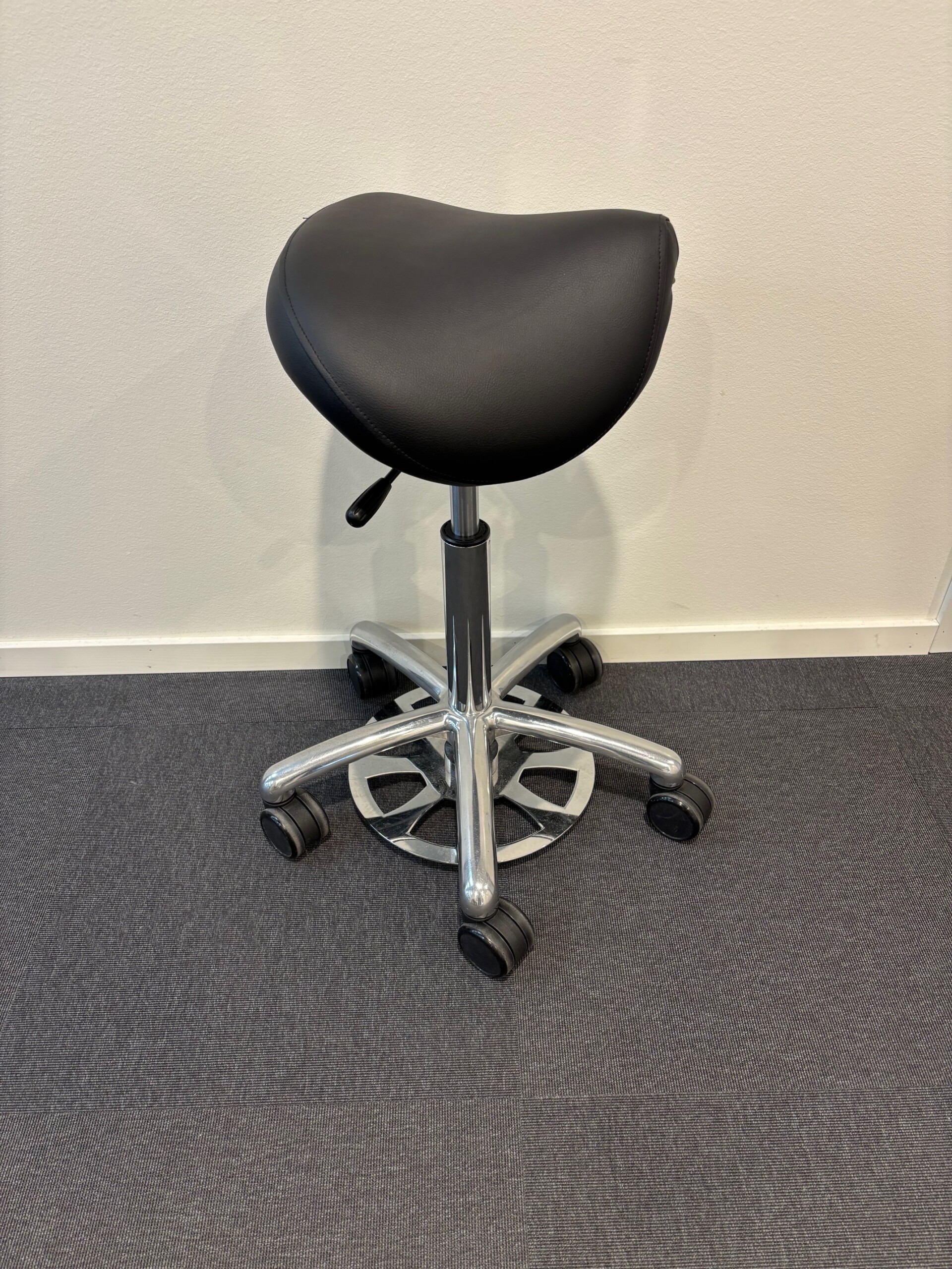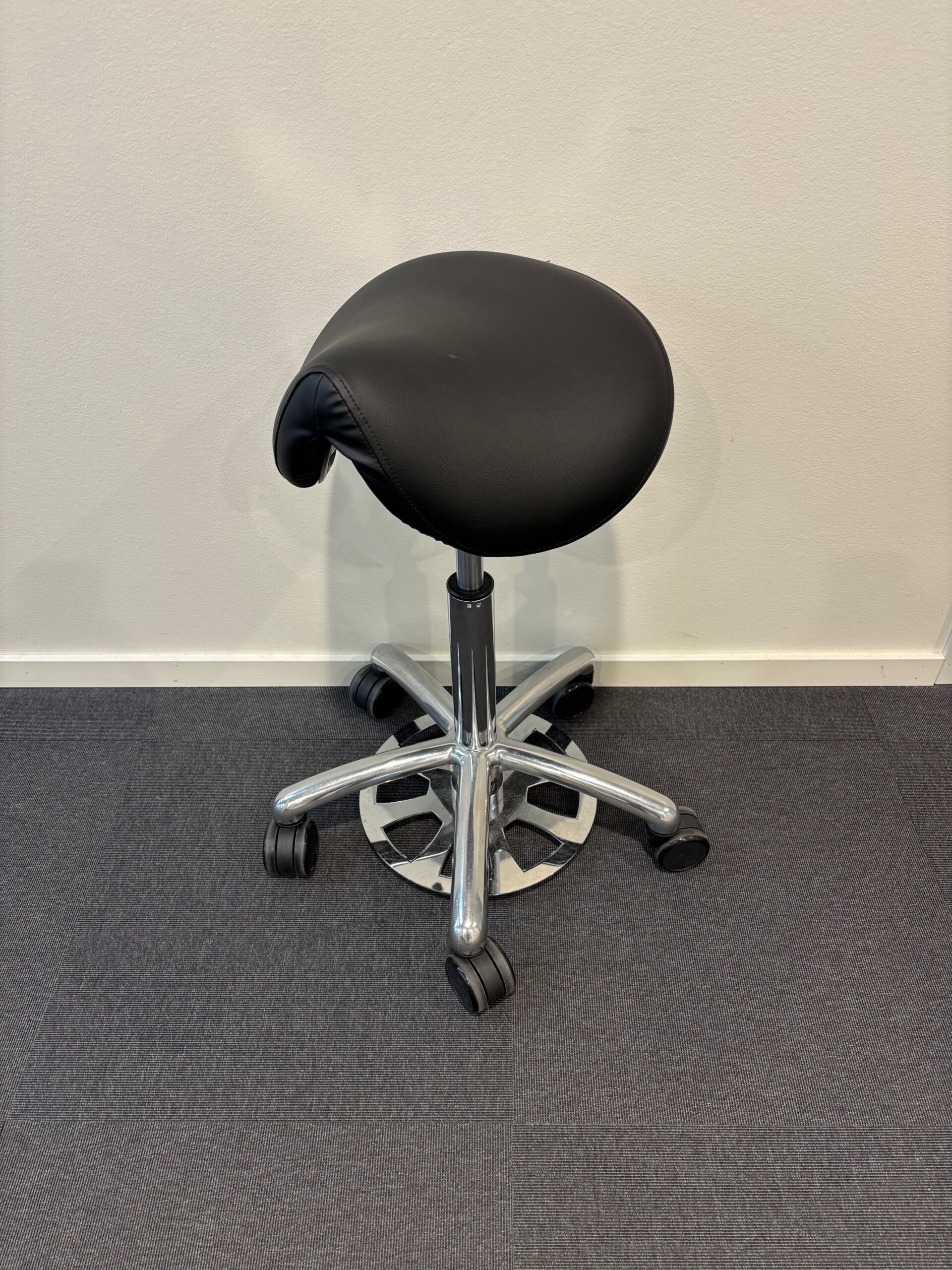Seat in artificial leather (black). Star base in metal (chrome). Adjustable height.